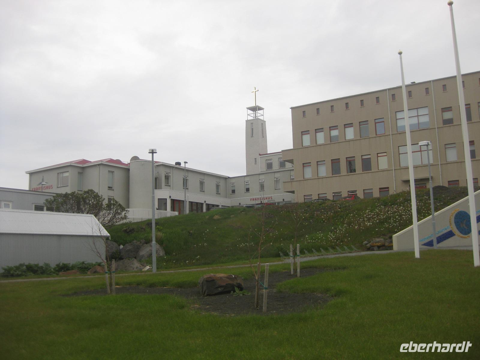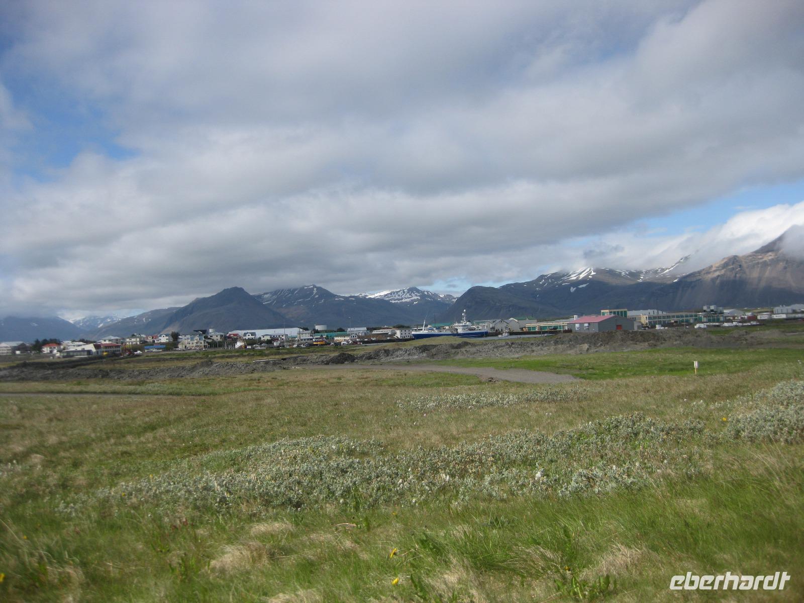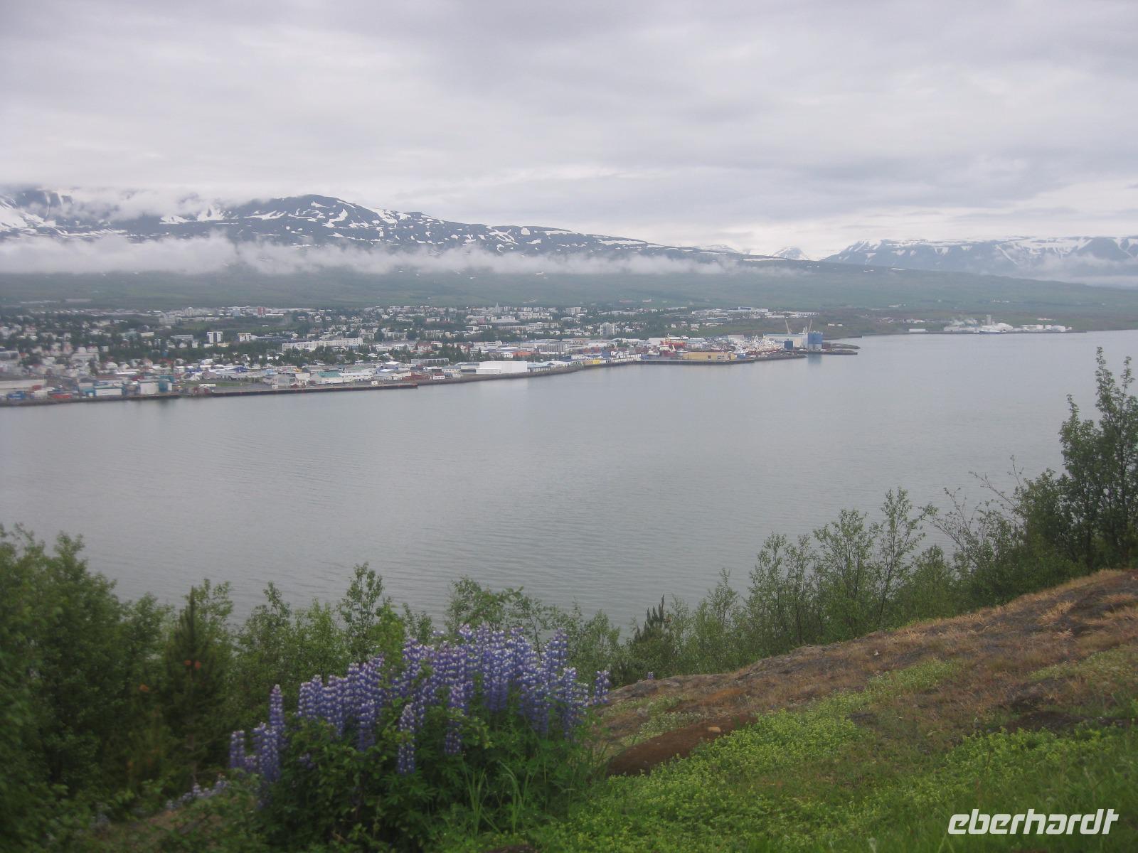 Dann setzen wir unsere Fahrt fort. Die Straße führt durch die Berge, wo die Trolle und Elfen wohnen. Berglind berichtet uns von ihnen. Dann geht es hinunter an den Eyjafjördur (Inselfjord) nach Akureyri. Unser Hotel befindet sich etwas außerhalb der Stadt. Hier bleiben wir zwei Nächte. Zum Abendessen gibt es heute den lang ersehnten Fisch und für die Nichtfischesser Hähnchenbrust.