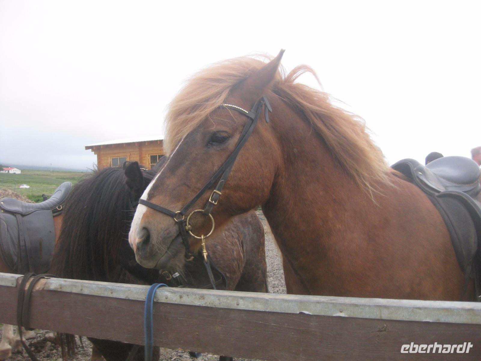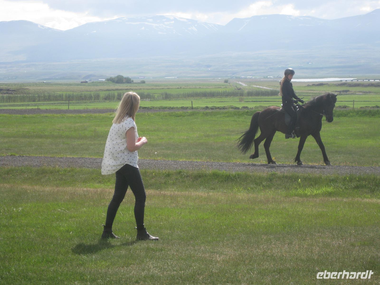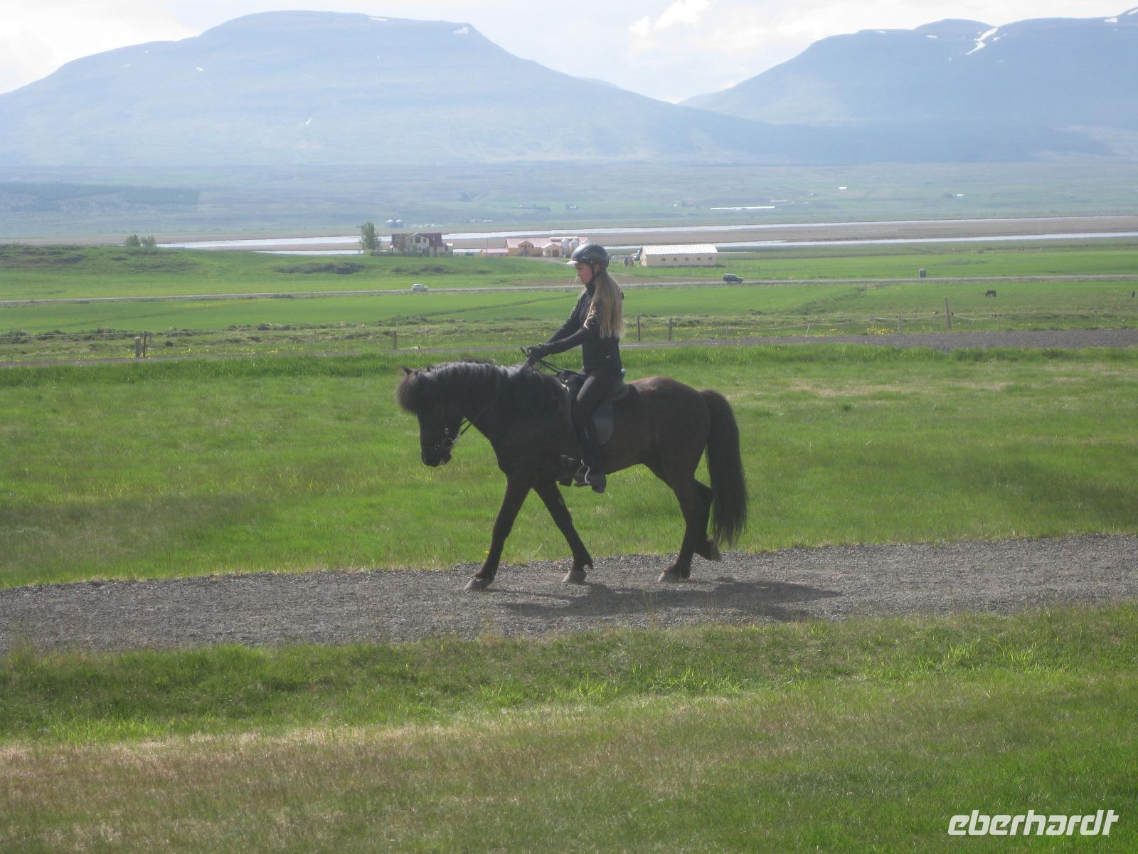 Heute steht noch ein besonderer fakultaiver Abendausflug auf dem Programm. Acht Gäste kommen mit zum Reitausflug. Wir werden nach dem Essen abgeholt und zum Reiterhof gefahren. Dort warten die Islandpferde schon auf uns. Wir sitzen auf und schon beginnt der Ausritt. Wir "tölden" dabei sogar. Ein toller Ausflug, alle sind begeistert. Gegen 22.30 Uhr sind wir wieder zurück. Ein super Tag geht zu Ende.
