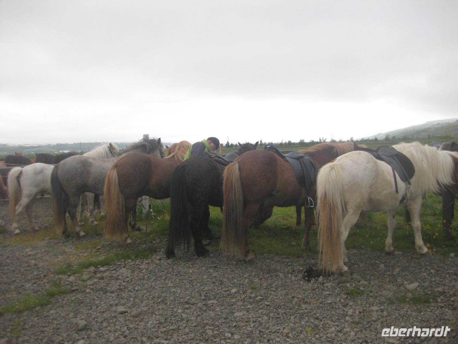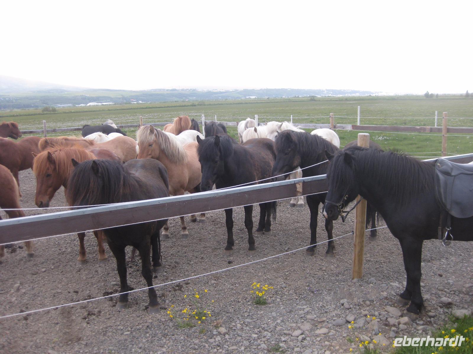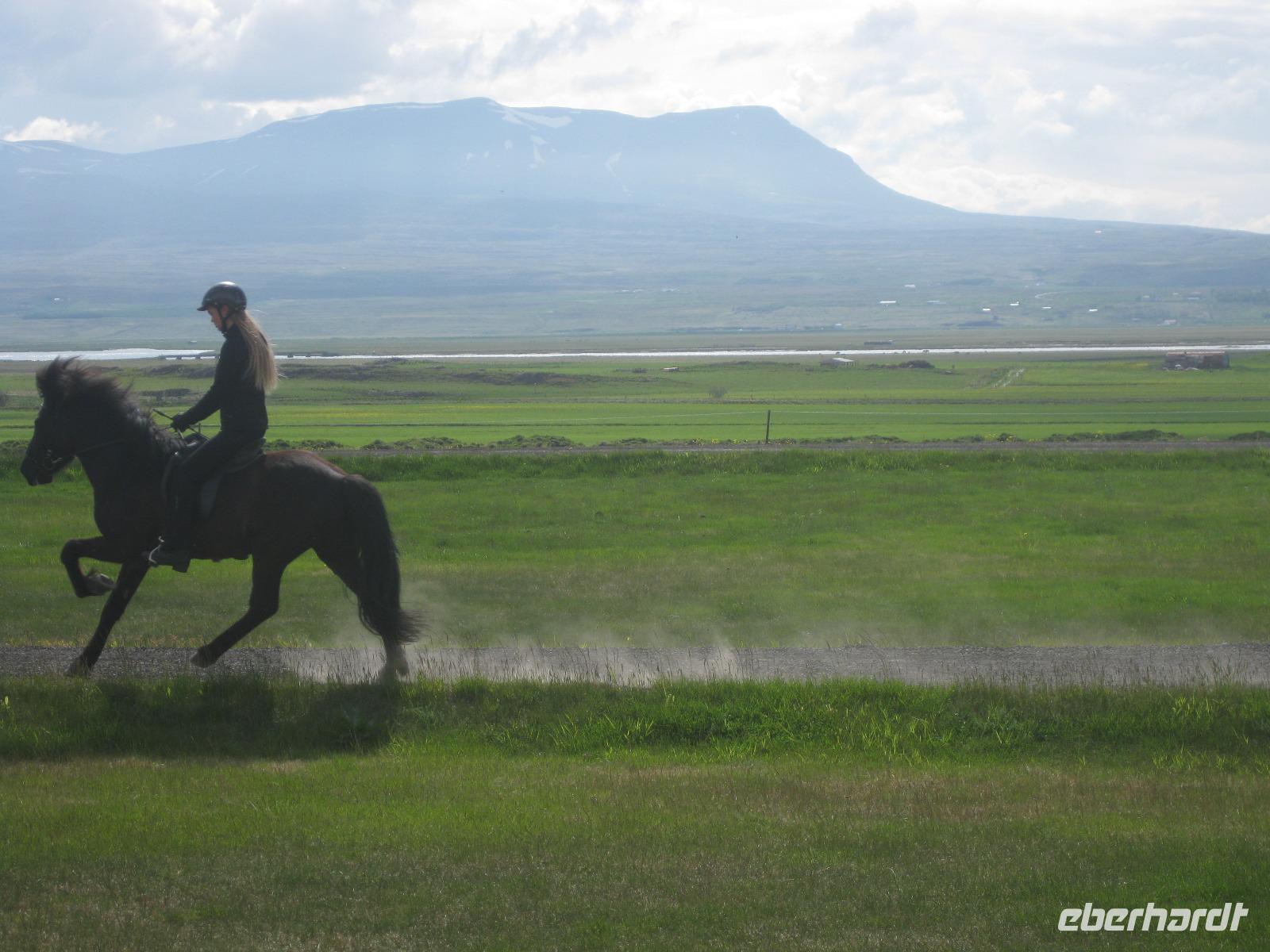 Heute steht noch ein besonderer fakultaiver Abendausflug auf dem Programm. Acht Gäste kommen mit zum Reitausflug. Wir werden nach dem Essen abgeholt und zum Reiterhof gefahren. Dort warten die Islandpferde schon auf uns. Wir sitzen auf und schon beginnt der Ausritt. Wir "tölden" dabei sogar. Ein toller Ausflug, alle sind begeistert. Gegen 22.30 Uhr sind wir wieder zurück. Ein super Tag geht zu Ende.