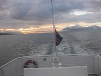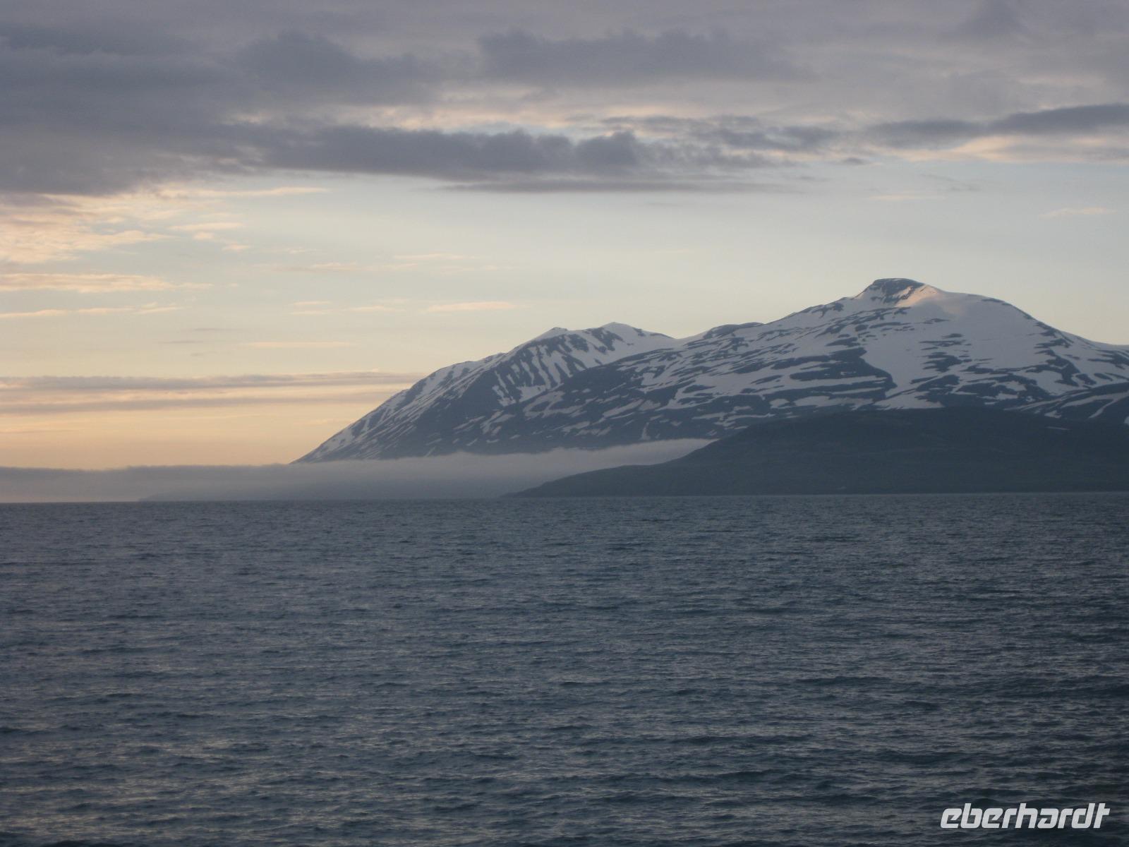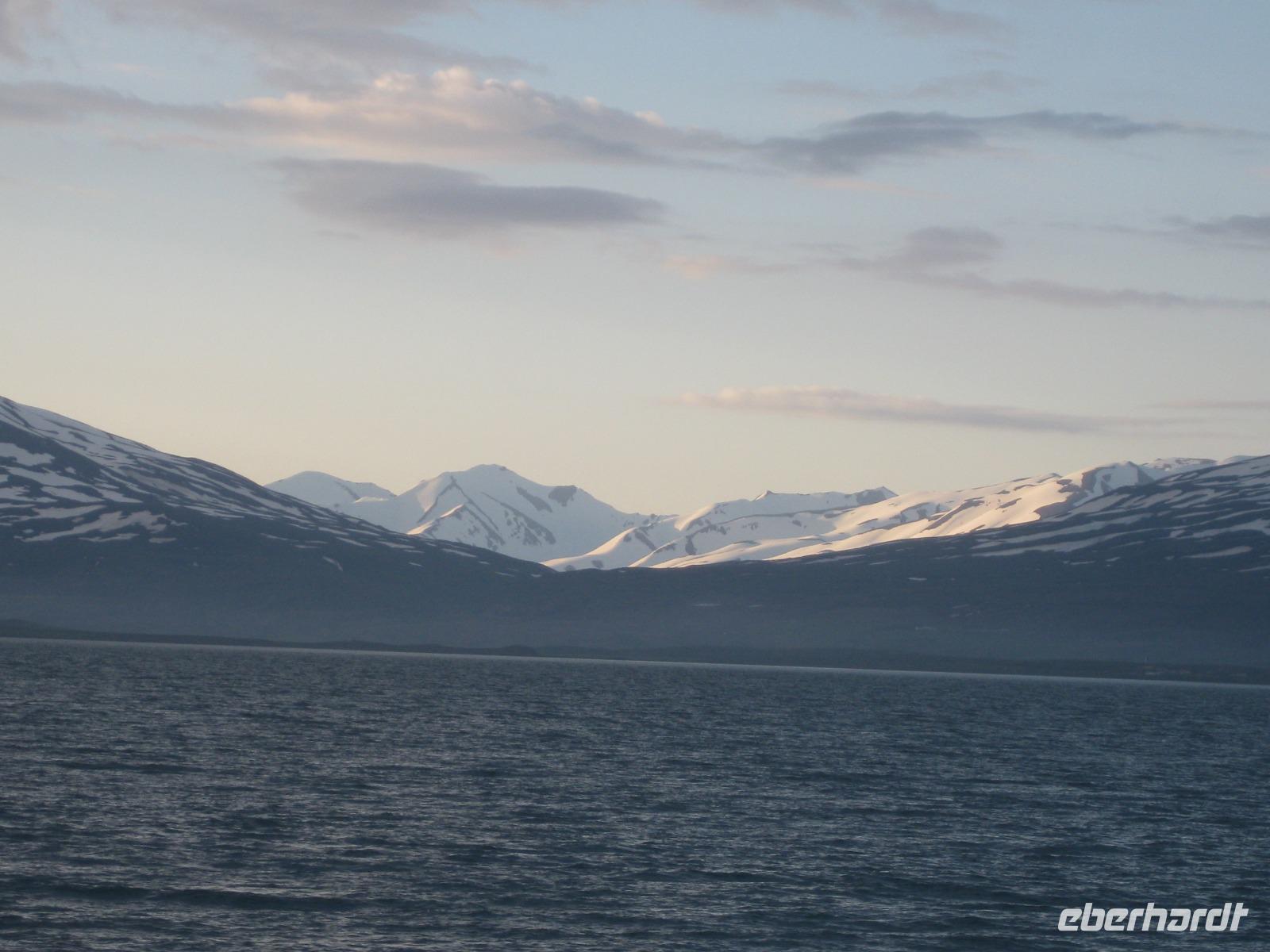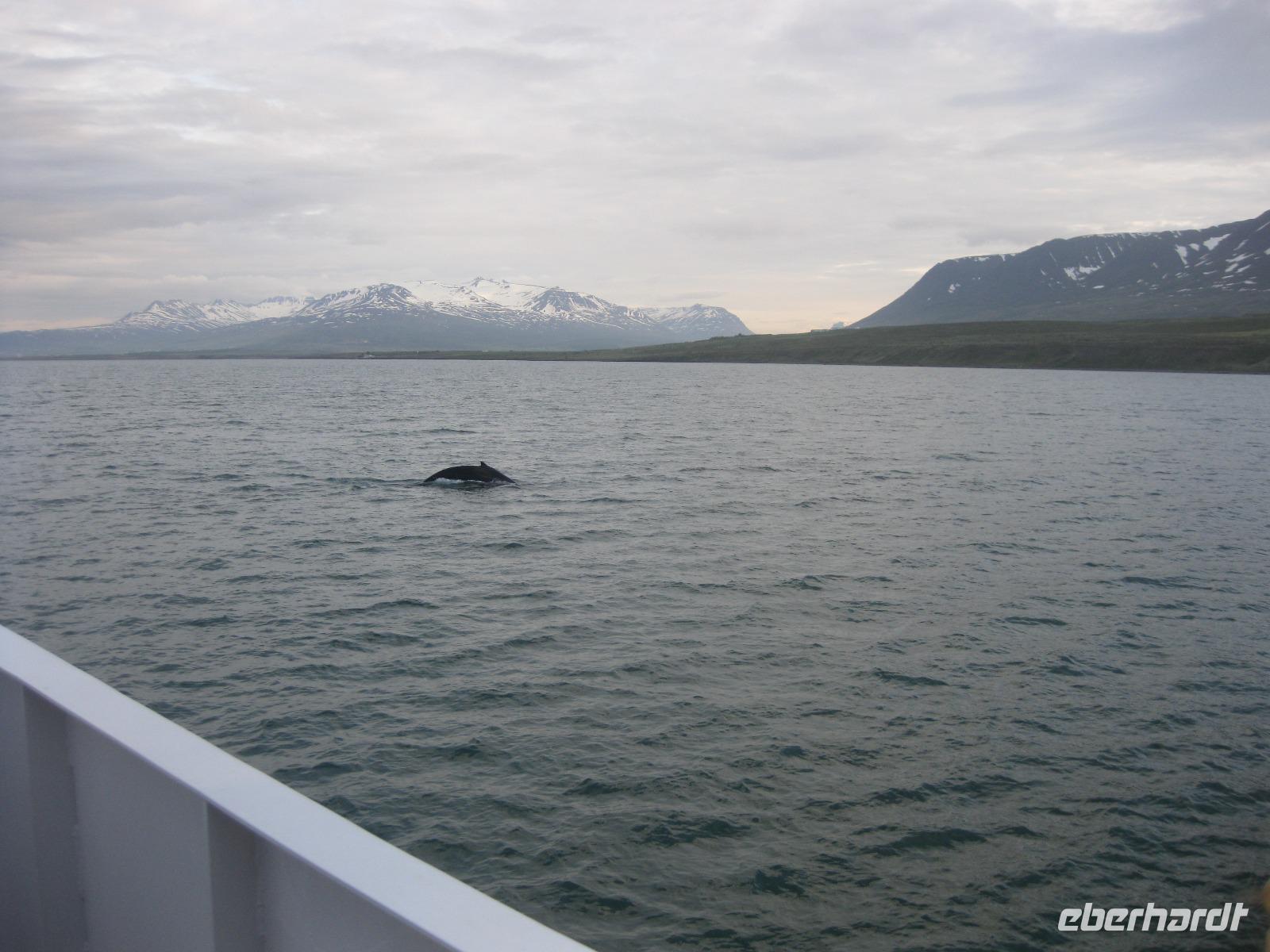 Nach dem Abendessen begeben sich 12 Gäste mit mir zur Walbeobachtung. Wir werden vom Hotel abgeholt und zum Hafen gebracht. Dann geht es per Schiff im Fjord entlang. Und noch im Fjord zeigt sich der erste Wal. Wir halten ein und beobachten ihn. 22.30 Uhr fahren wir wieder zurück und sind gegen 23.00 Uhr wieder im Hotel. Ein schöner erlebnisreicher Tag geht zu Ende.
