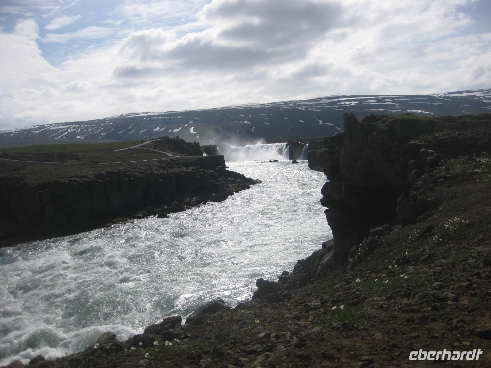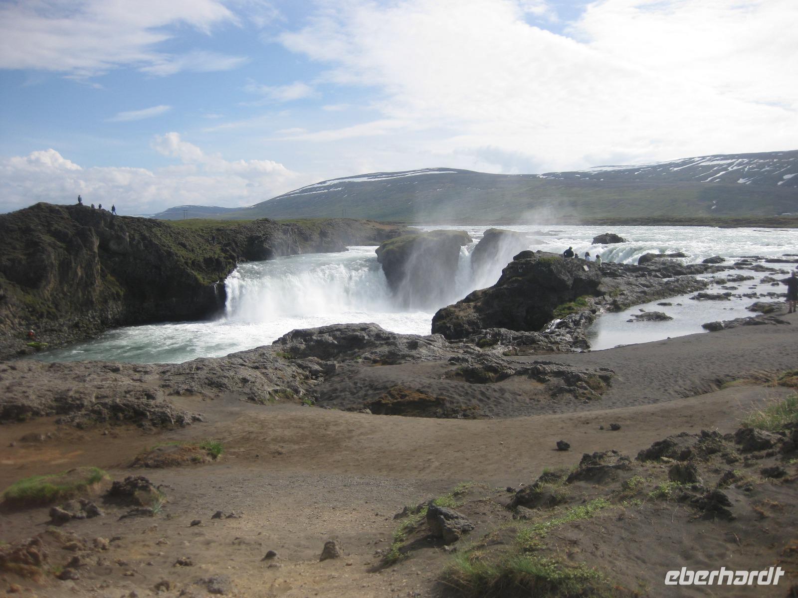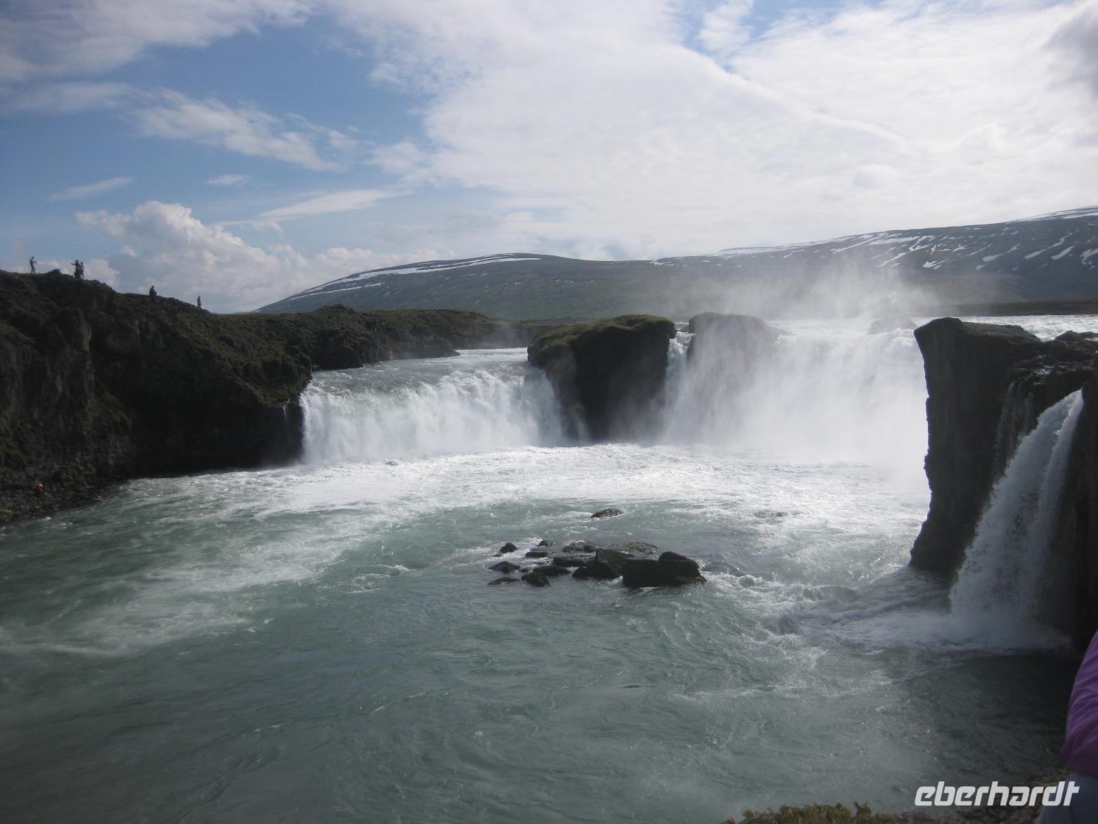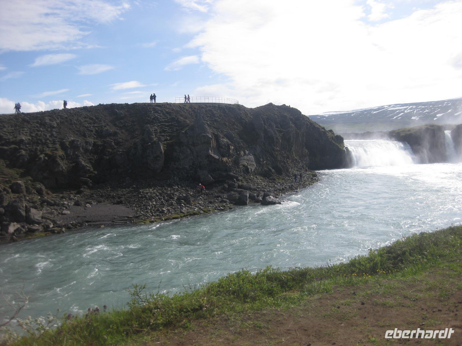 Am Nachmittag fahren wir wieder über Husavik zurück. Wir besuchen noch den "Godafoss" - Götterfall - einen der schönsten Wasserfälle in Island. Auf der weiteren Fahrt zurück nach Akureyri fahren wir noch am "Lichtsee" vorbei und durch eine Gebirgslandschaft bis wir schließlich zum Eyjafjördur kommen und Akureyri erreichen. Hier machen wir eine kleine Pause im Centrum der Stadt. Wir haben Zeit für einen kleinen Stadtbummel. Und dann fahren wir zu unserem Hotel. Wir treffen uns zum gemeinsamen Abendessen und lassen den Tag ausklingen.