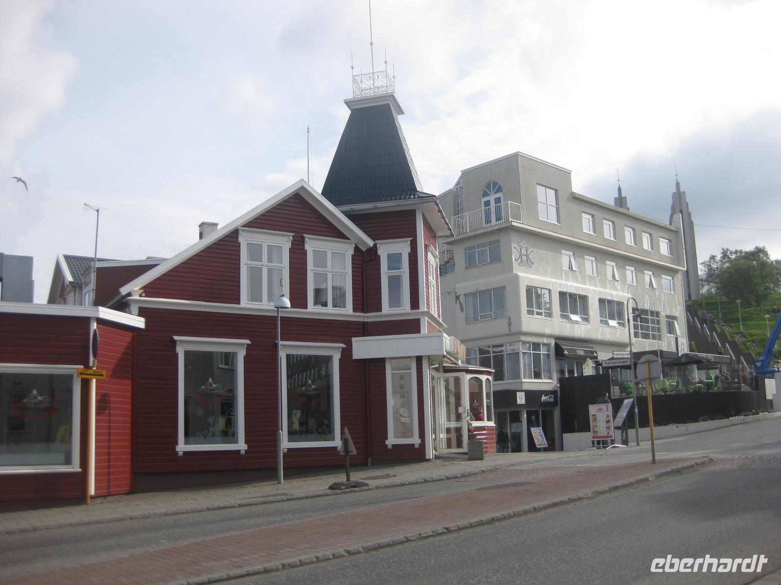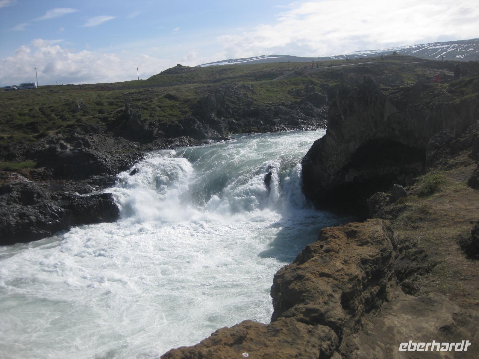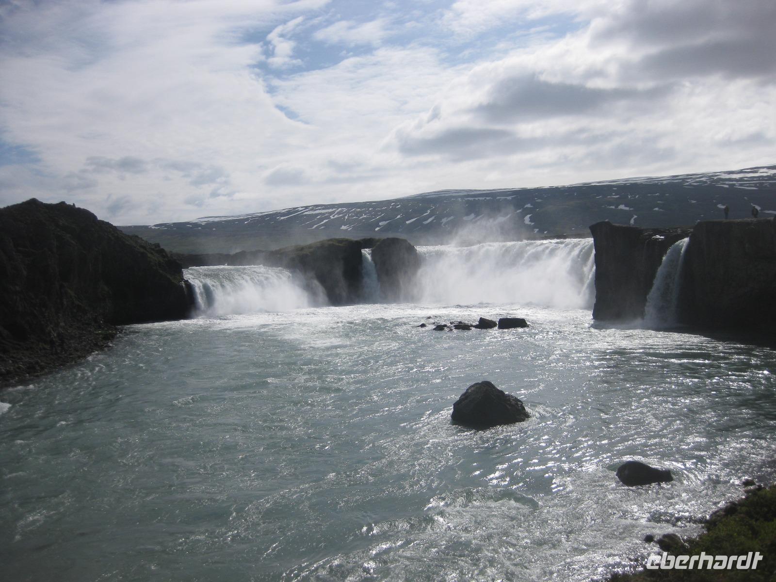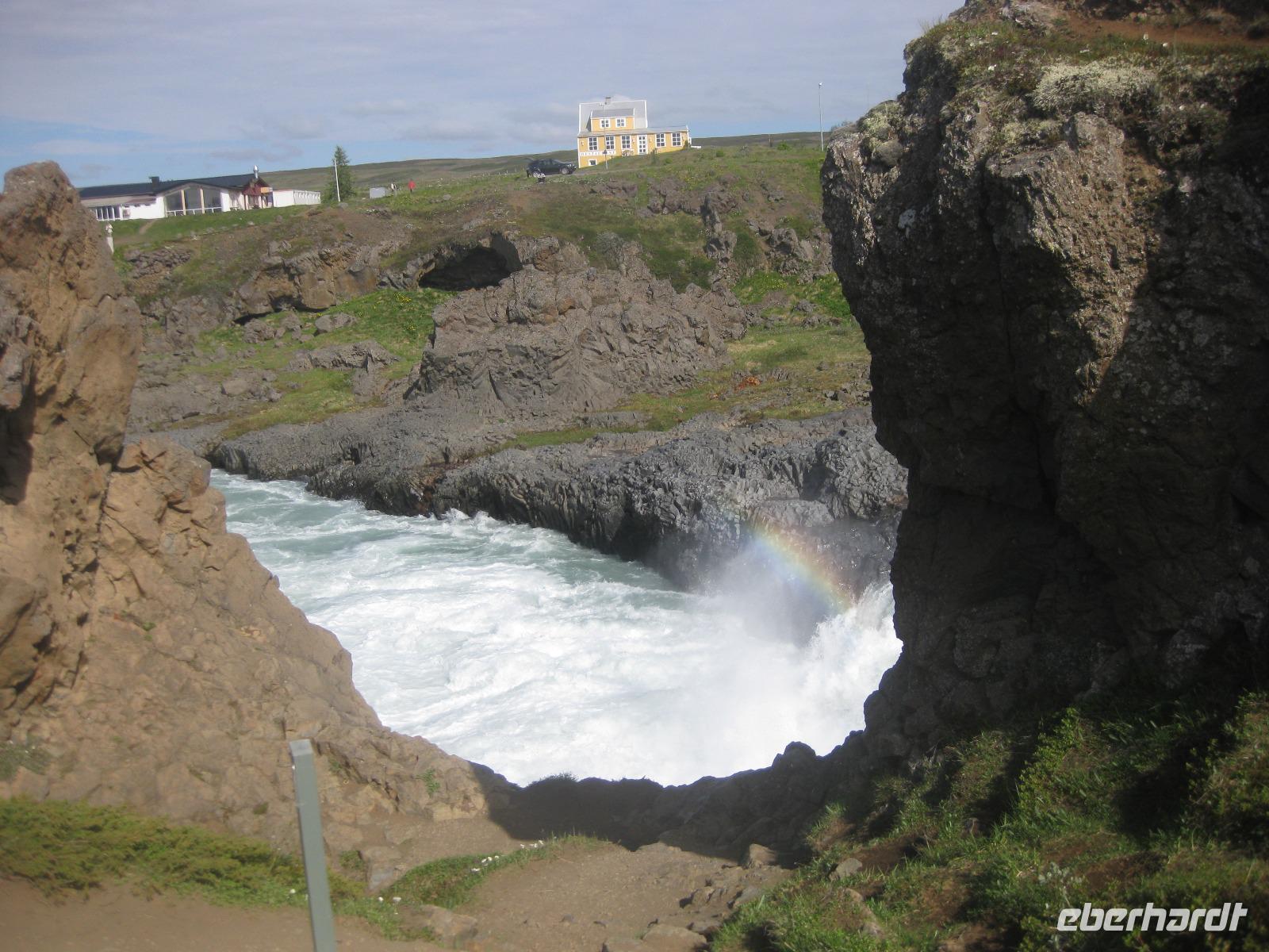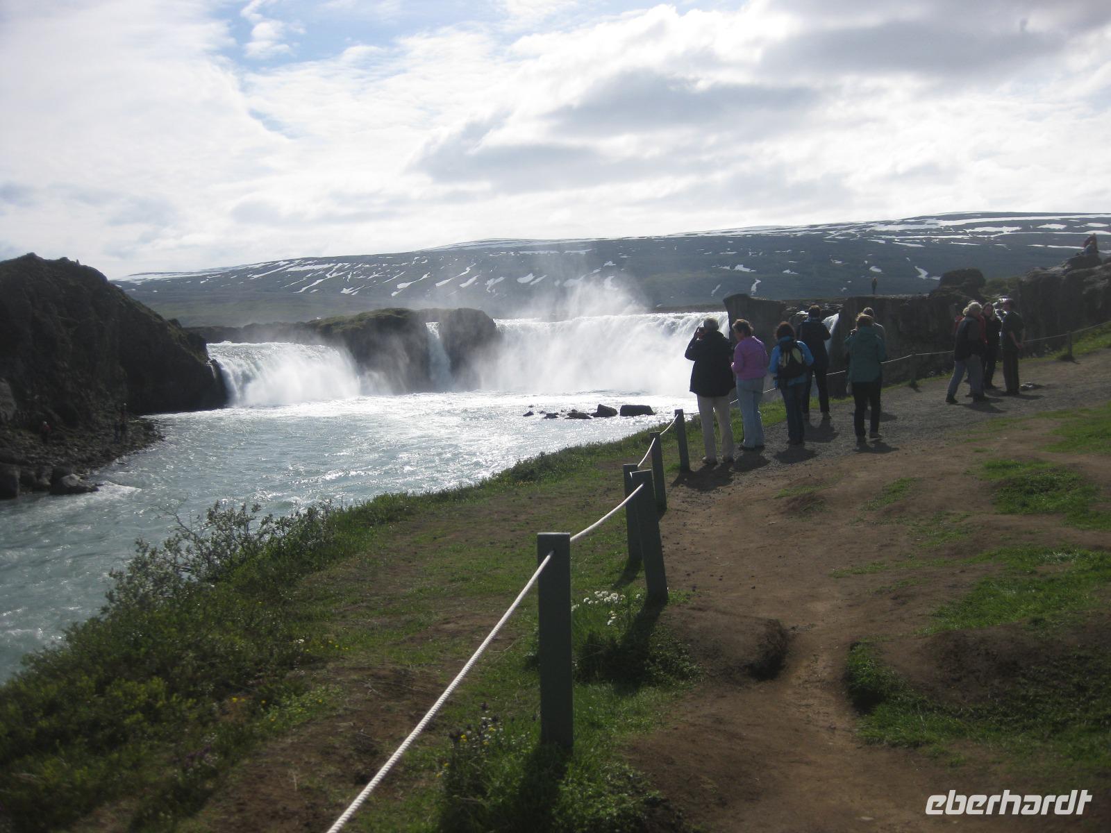 Am Nachmittag fahren wir wieder über Husavik zurück. Wir besuchen noch den "Godafoss" - Götterfall - einen der schönsten Wasserfälle in Island. Auf der weiteren Fahrt zurück nach Akureyri fahren wir noch am "Lichtsee" vorbei und durch eine Gebirgslandschaft bis wir schließlich zum Eyjafjördur kommen und Akureyri erreichen. Hier machen wir eine kleine Pause im Centrum der Stadt. Wir haben Zeit für einen kleinen Stadtbummel. Und dann fahren wir zu unserem Hotel. Wir treffen uns zum gemeinsamen Abendessen und lassen den Tag ausklingen.