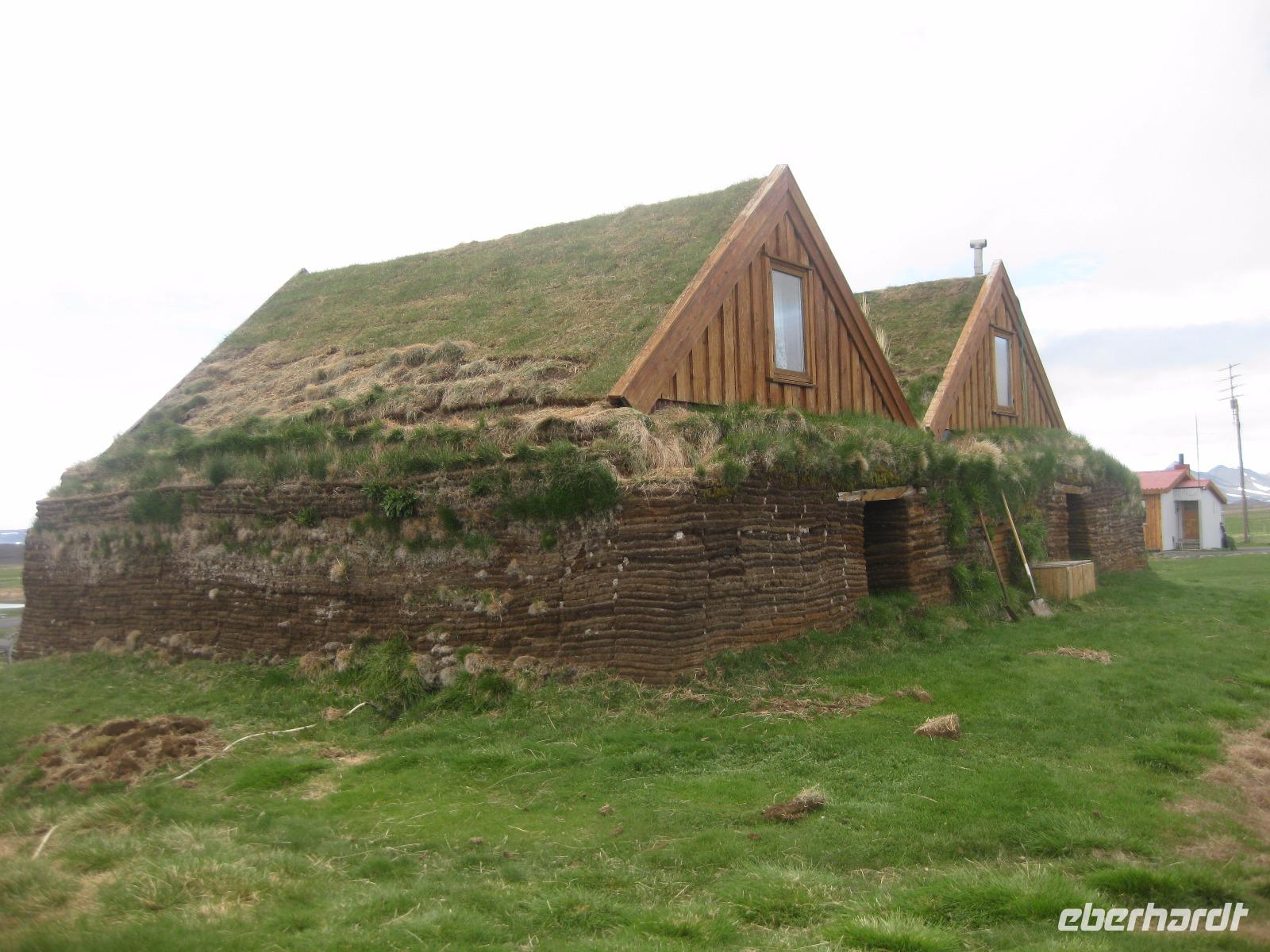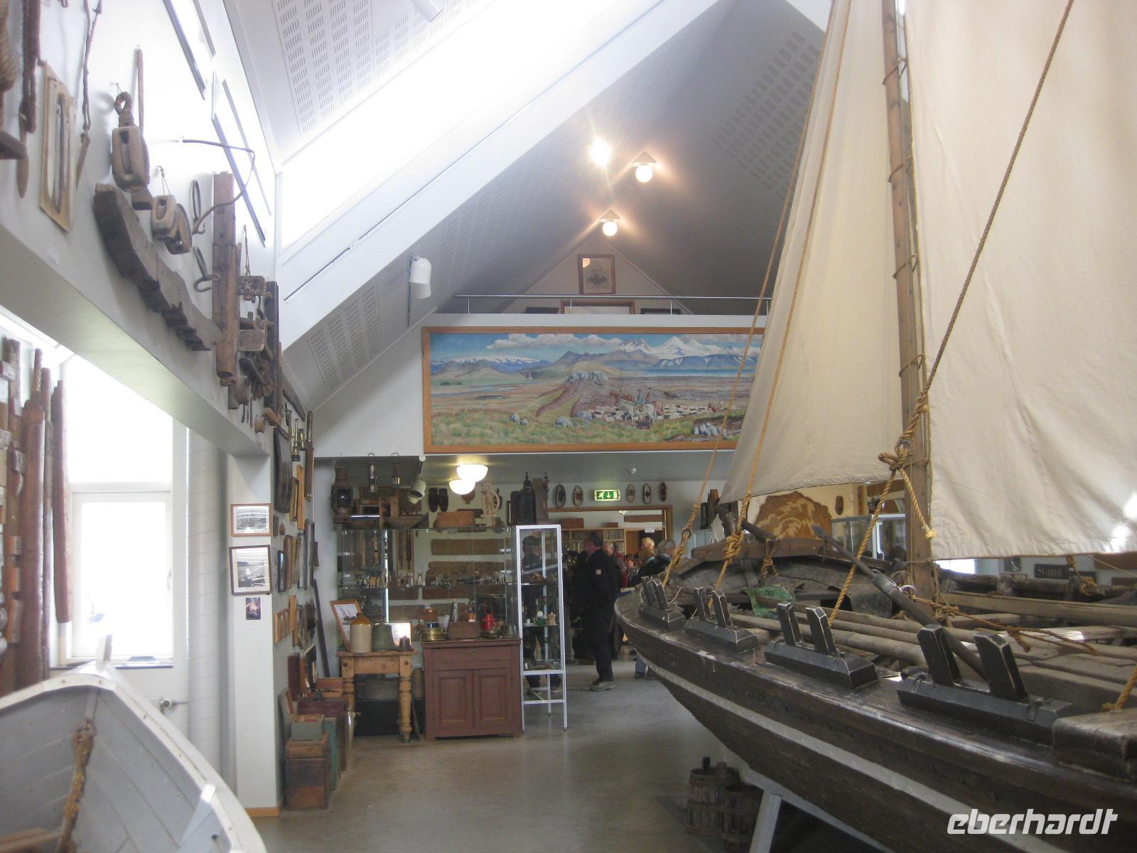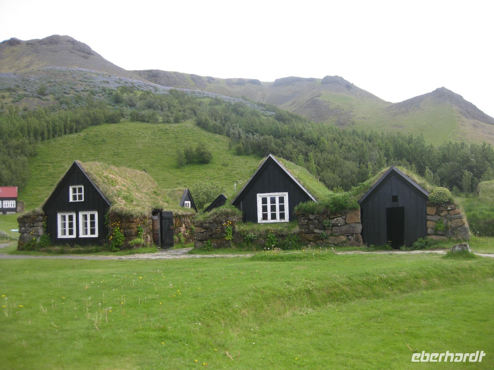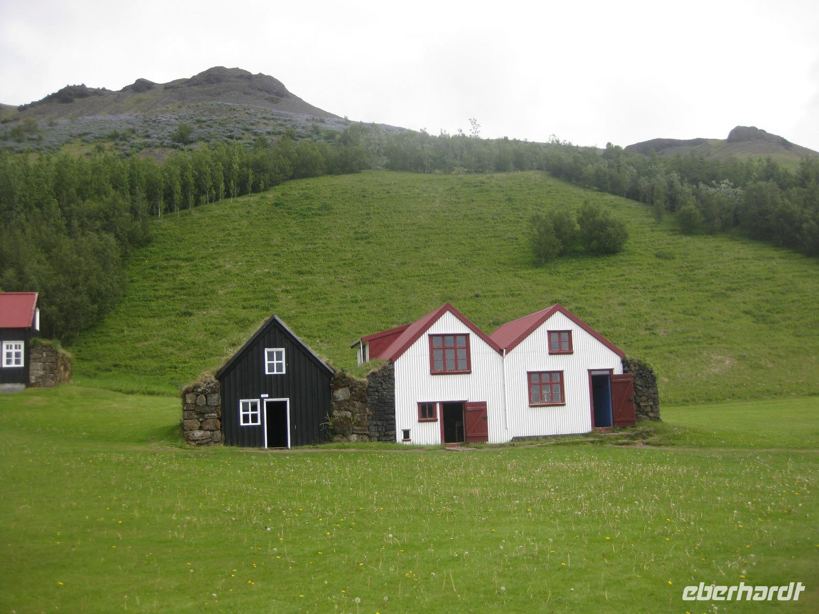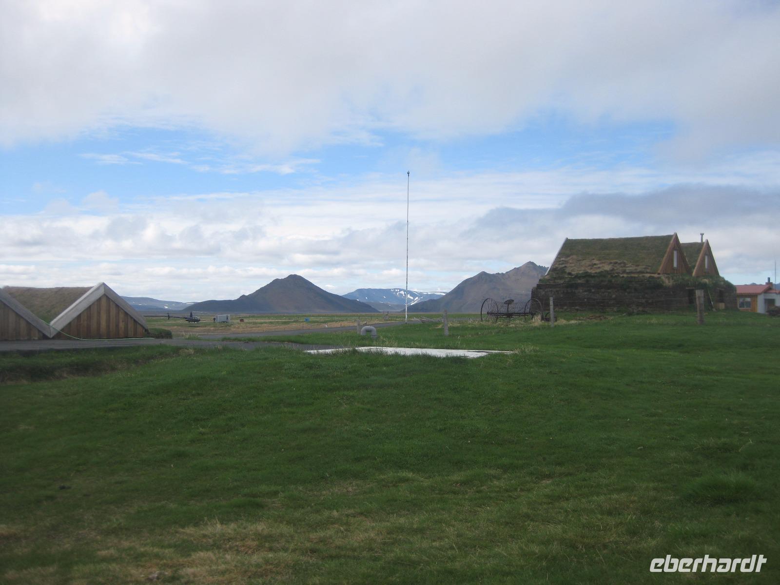 Unser nächstes Ziel ist der kleine Ort Skogar, der dem Gletscher "Eyjafjallajökull" direkt zu Füßen liegt. Hier befindet sich das unbedingt sehenswerte Heimatmuseum. Bei einer kleinen Führung durch das Museum lernen wir die isländische Geschichte und Kultur näher kennen. Im Freiluftteil des Museums können wir in die typischen mit Gras gedeckten Häuschen hineinschauen, eine Schule und eine Kirche sind auch da. Und dann gibt es nebenan noch ein Technikmuseum .... Leider reicht die Zeit nicht aus, um alles zu besichtigen.
