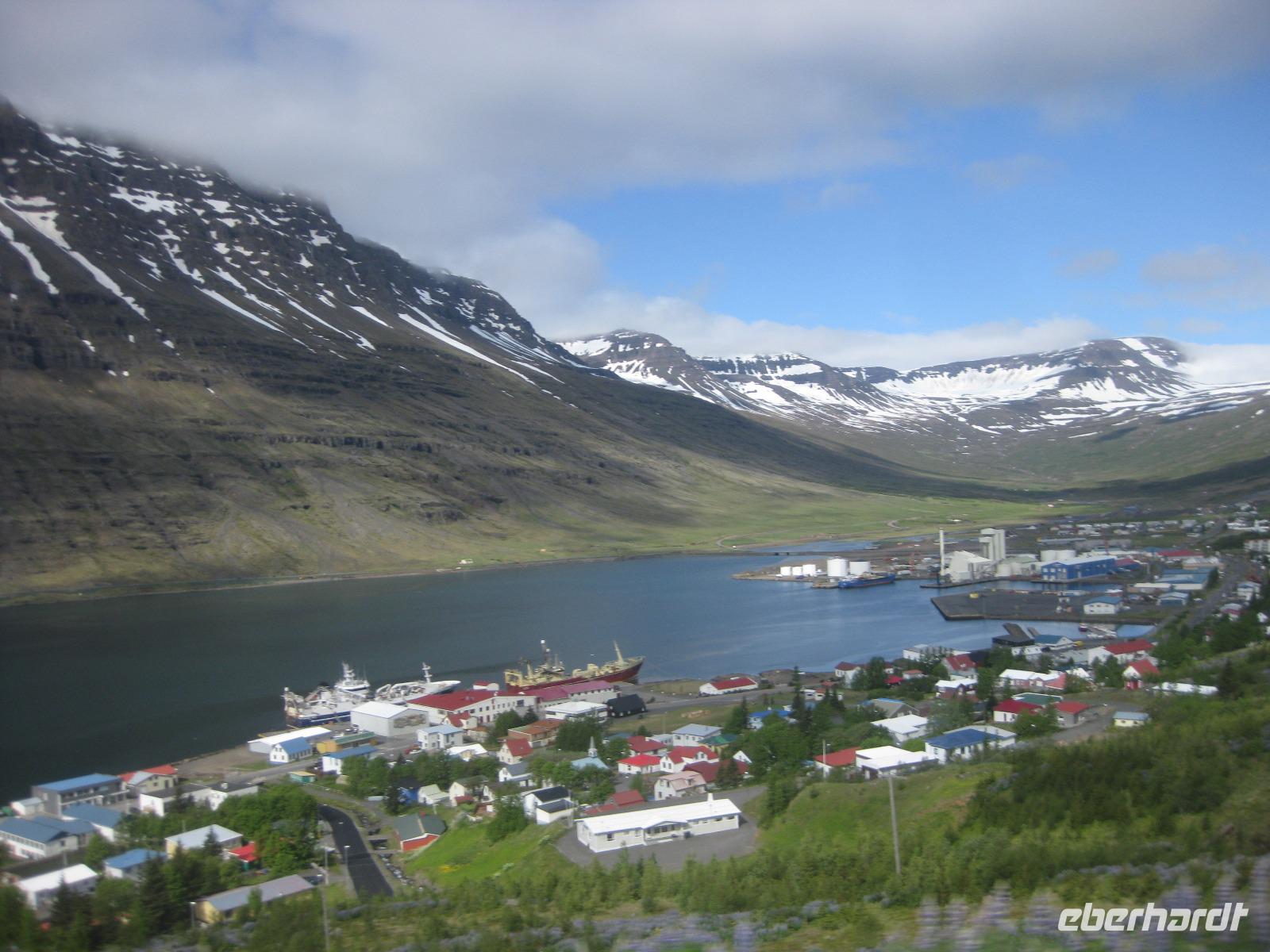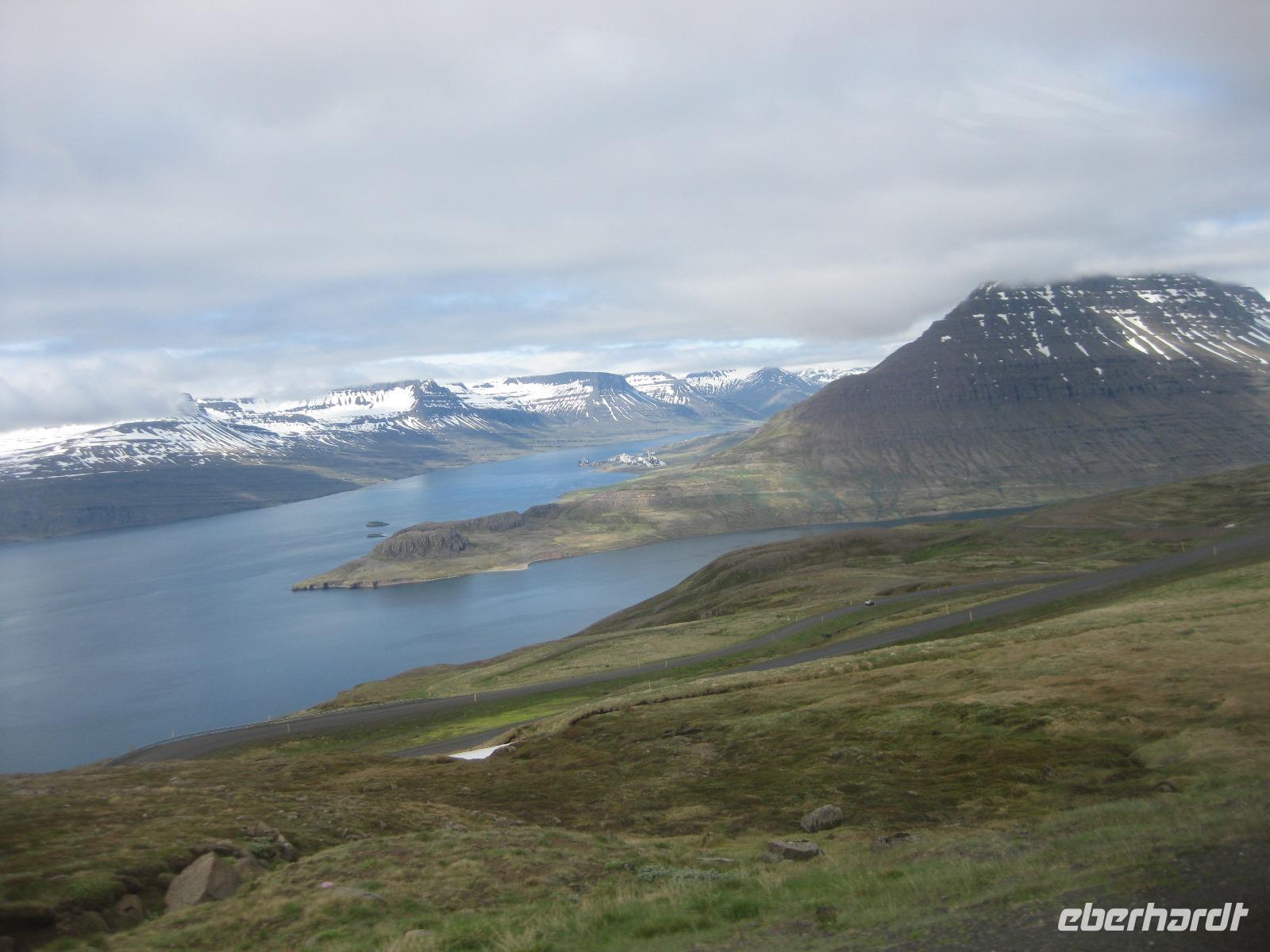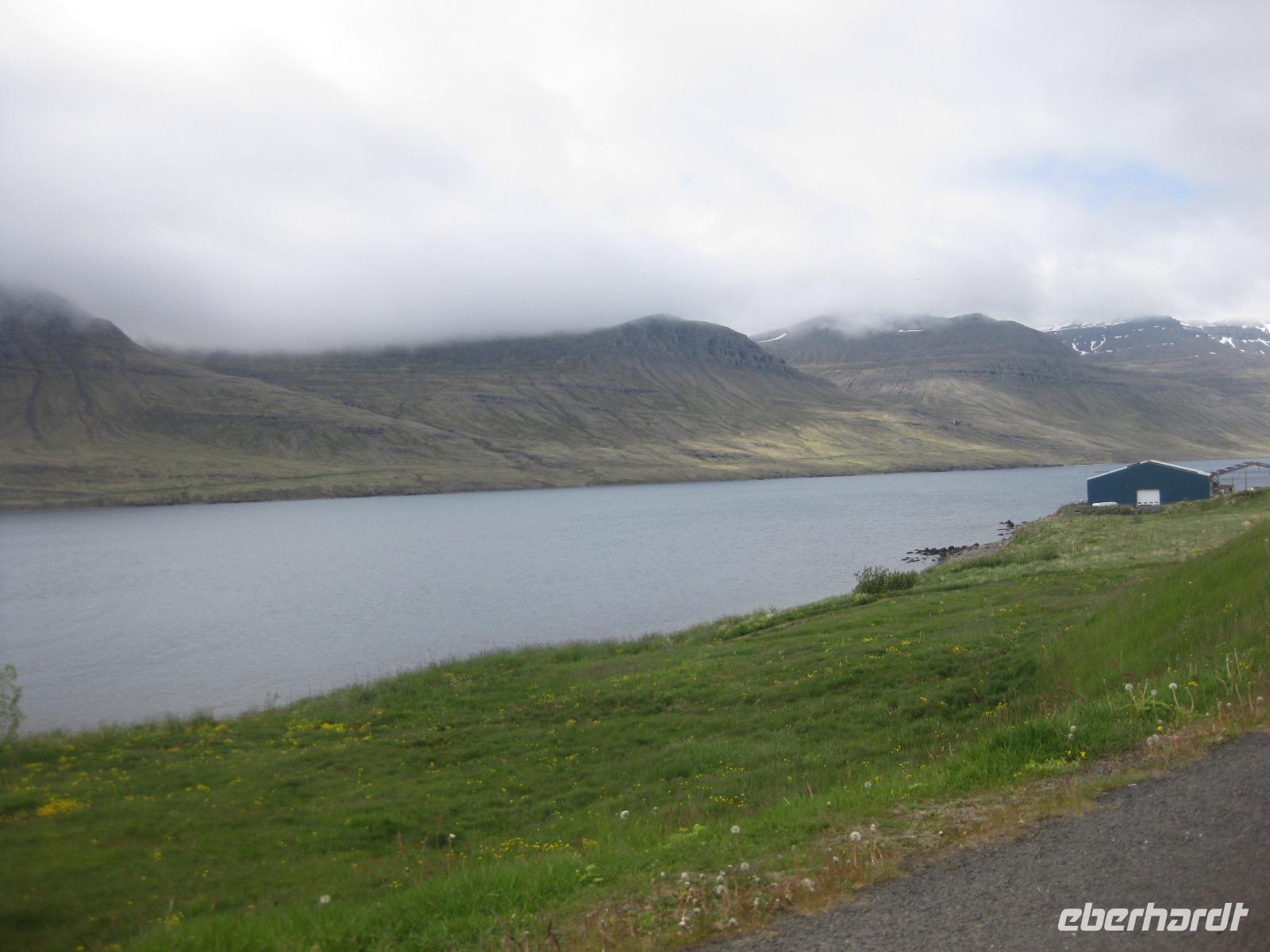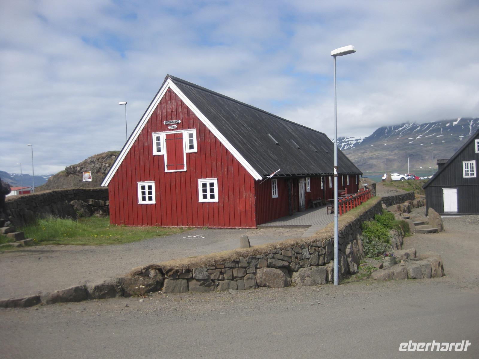 Am Nachmittag kommen wir auf unserer Fahrt nach Osten noch an Islands höchst- und abgelegenstem Bauernhof "Mödrudalur" vorbei. Dort befindet sich auch das "Fjallakaffi", wo es ganz leckeren selbstgeackenen Kuchen gibt. Den müssen wir natürlich probieren. Und dann geht unsere Fahrt weiter, durch Egilsstadir bis wir schließlich den Reydarfjördur erreichen. Dann müssen wir noch über einen Pass bzw. durch einen kleinen engen Tunnel bis wir unser heutiges Ziel Neskaupstadur erreichen. Hier wohnen wir direkt am Fjord in einem schönen Edda-Hotel.