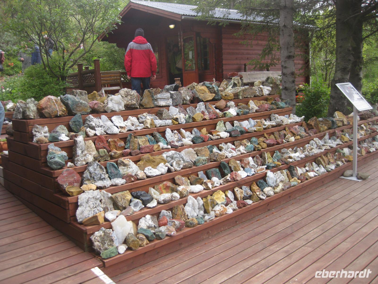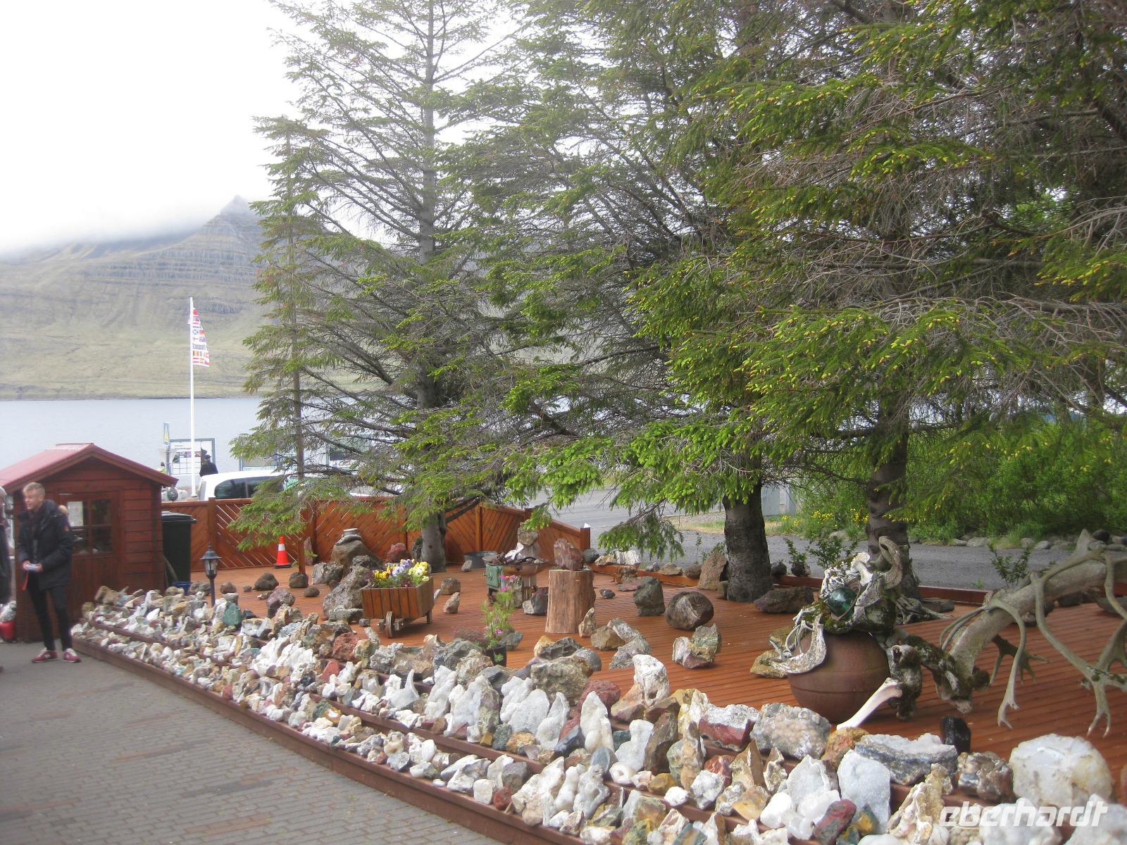 Nach dem Frühstück starten wir zu unserer heutigen Reise entlang der Ostfjorde bis an die Südküste nach Höfn. Zuerst müssen wir wieder über den Pass und durch den schmalen Tunnel. Dann erreichen wir einen Aussichtspunkt mit einem tollen Ausblick auf den Reydarfjördur. Nun fahren wir an der Ostküste mit ihren tiefblauen Fjorden und ihren schroffen Felsen entlang. In Stödvarfjördur besuchen wir "Petras Steinhaus" mit einer einmaligen, riesigen Stein- und Mineraliensammlung und einem wunderschönen Garten mit vielen Blumen. Auch das Wohnhaus ist zur Besichtigung offen. Es wird alles sehr liebevoll präsentiert.