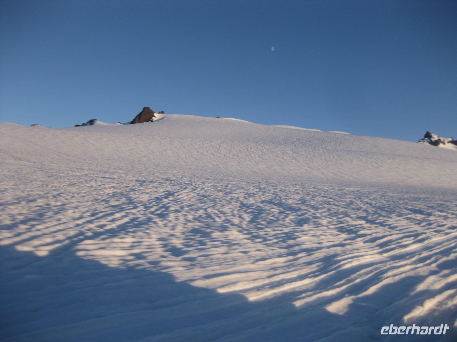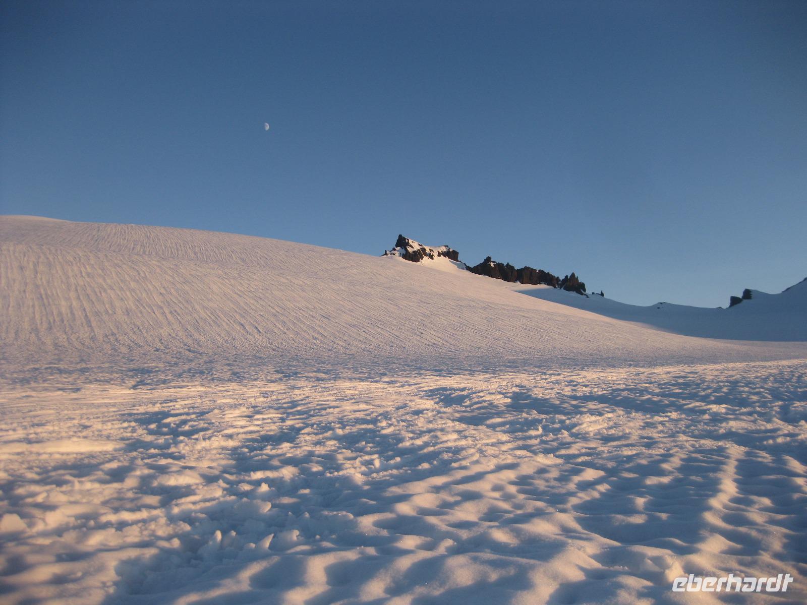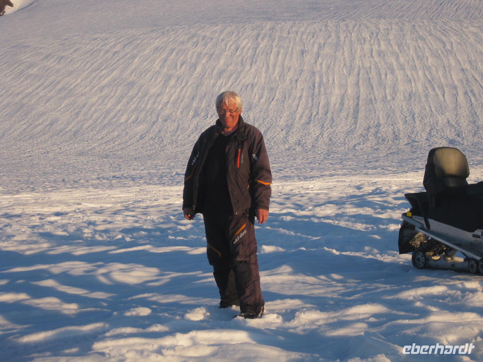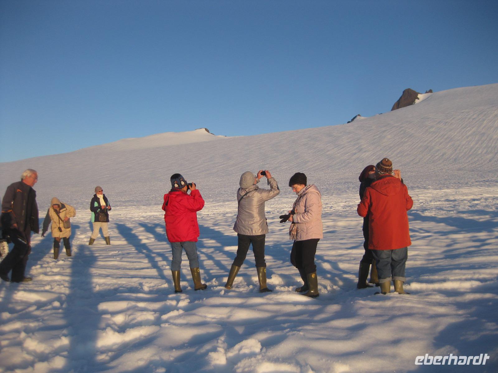 Dann treffen wir uns alle zu einem Gruppenfoto auf dem Gletscher. Es ist abends um ca. 21.30 Uhr und die Sonne scheint immer noch - unglaublich schön. Alle sind fasziniert. Dann geht es wieder zurück und nach unten. Wir werden zu unserem Hotel zurück gefahren. Inzwischen ist es fast 24.00 Uhr geworden und es immer noch hell. Ich denke, diesen Ausflug wird wohl keiner so schnell vergessen.
