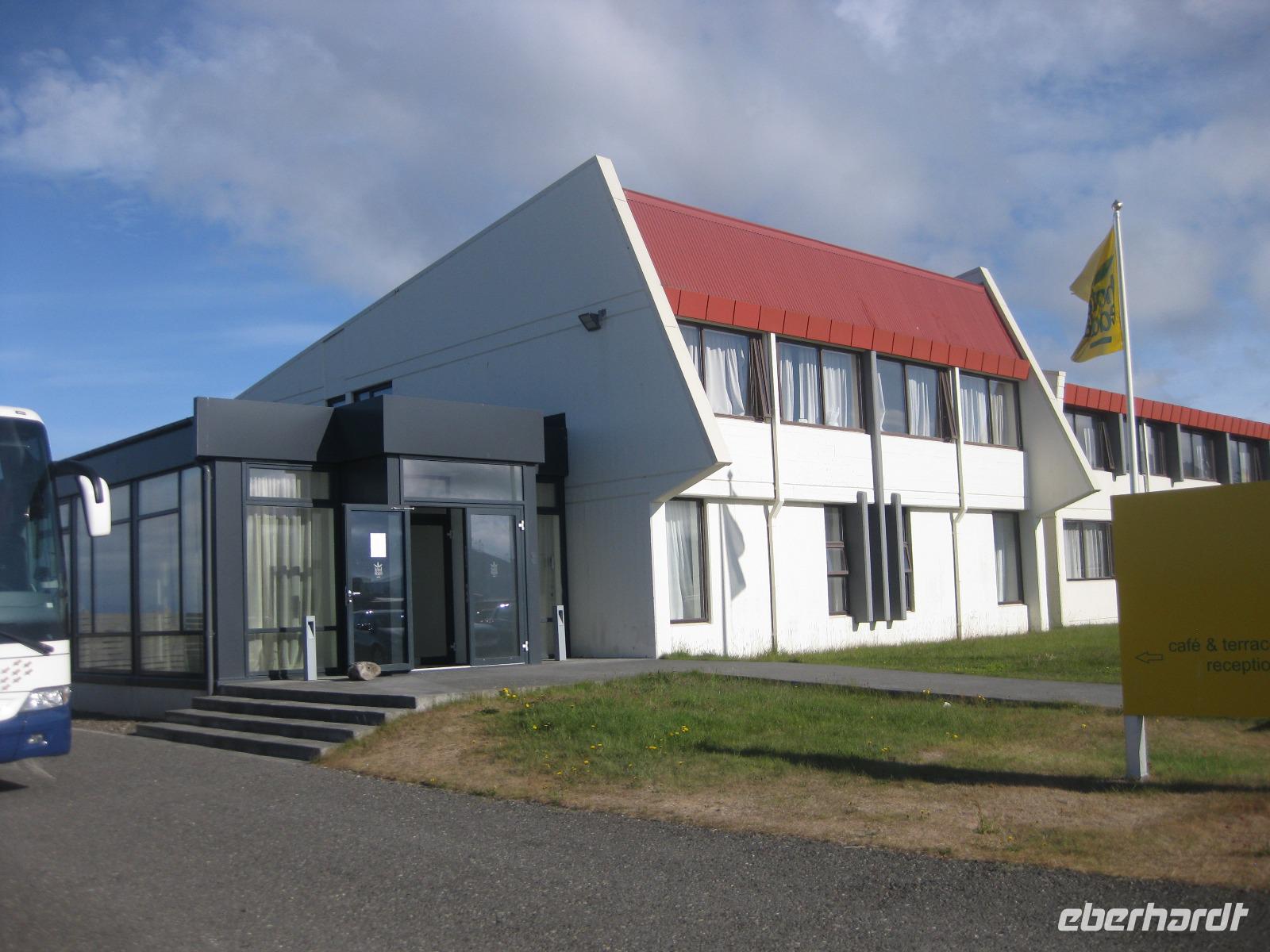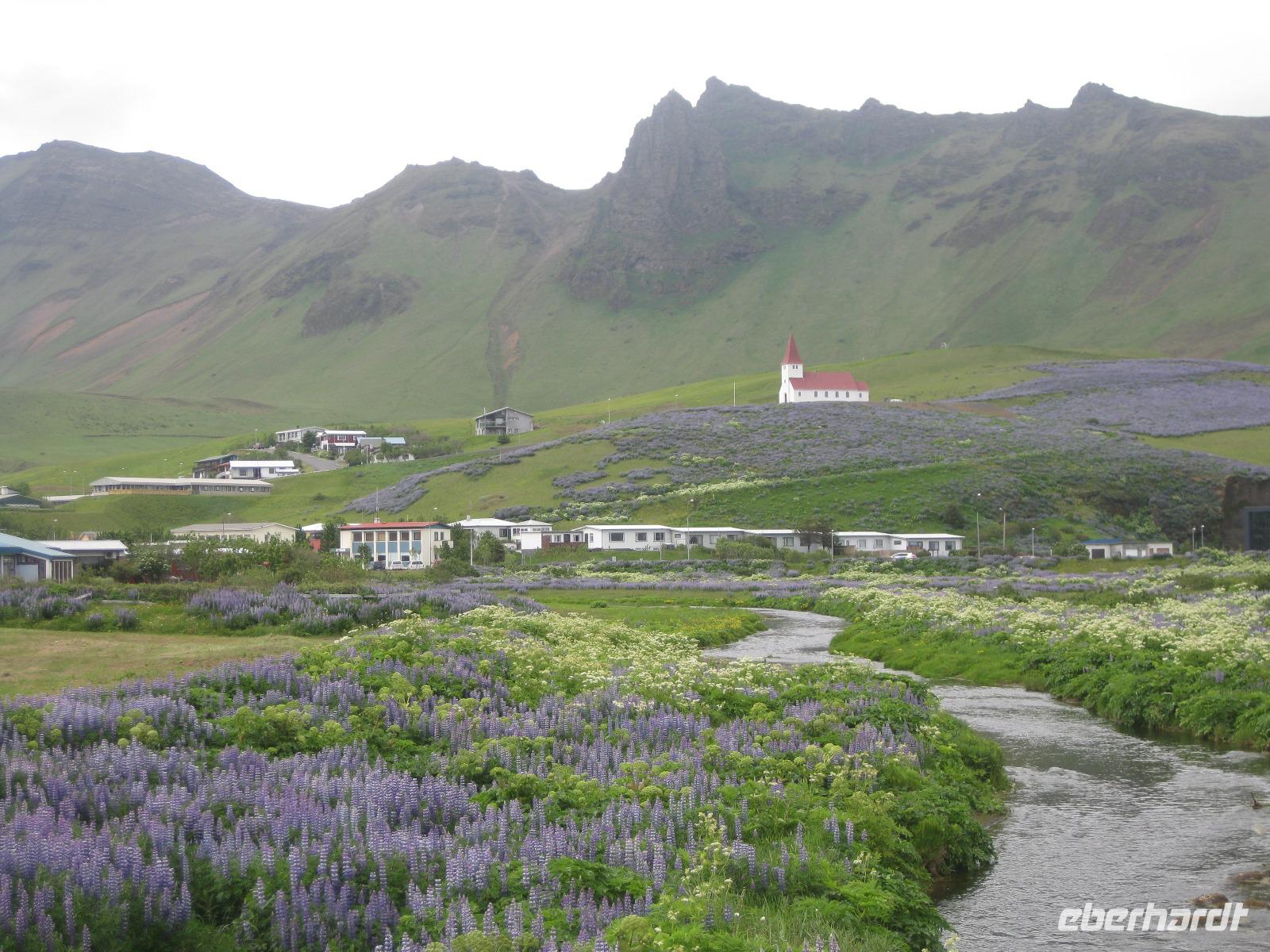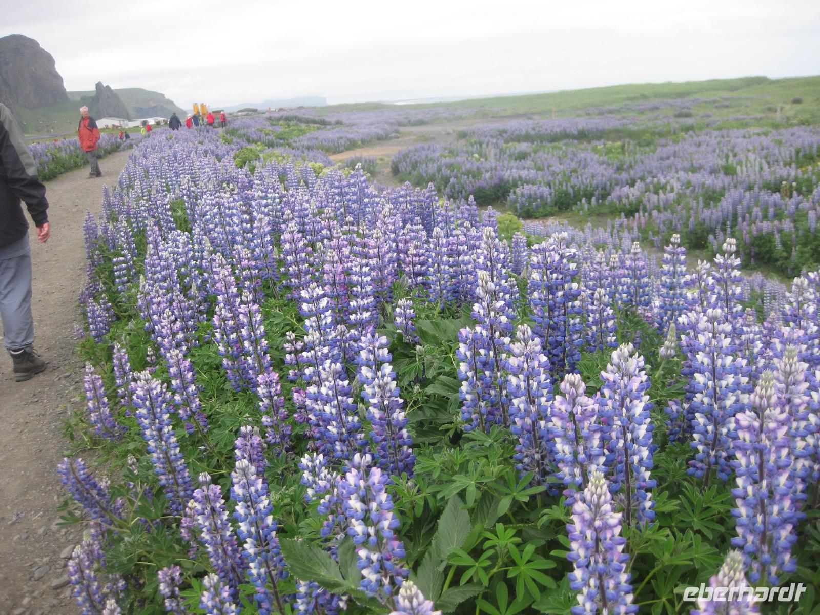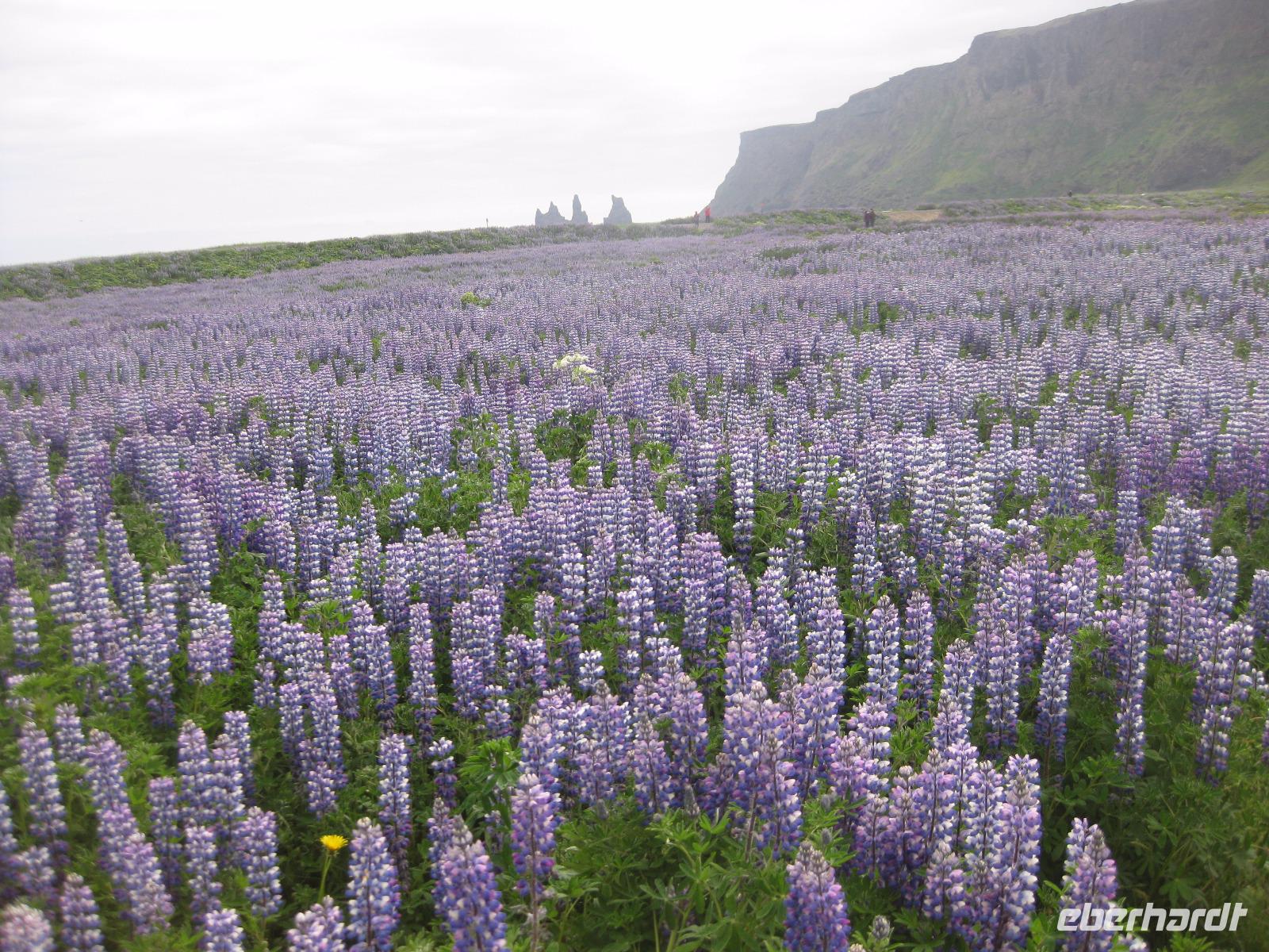 In dem kleinen Stadtchen Vik am Meer legen wir noch einen Stopp ein. Wir laufen durch riesige Alaskalupinenfelder zum Strand mit schwarzem Sand. Hier grüßen uns die berühmten Felsnadeln "Reynisdrangar". Dann haben wir noch ein kurzes Stück Fahrt bis zu unserem Hotel "Dyrholaey", wo wir heute übernachten. Mit dem gemeinsamen Abendessen lassen wir diesen erlebnisreichen Tag ausklingen.