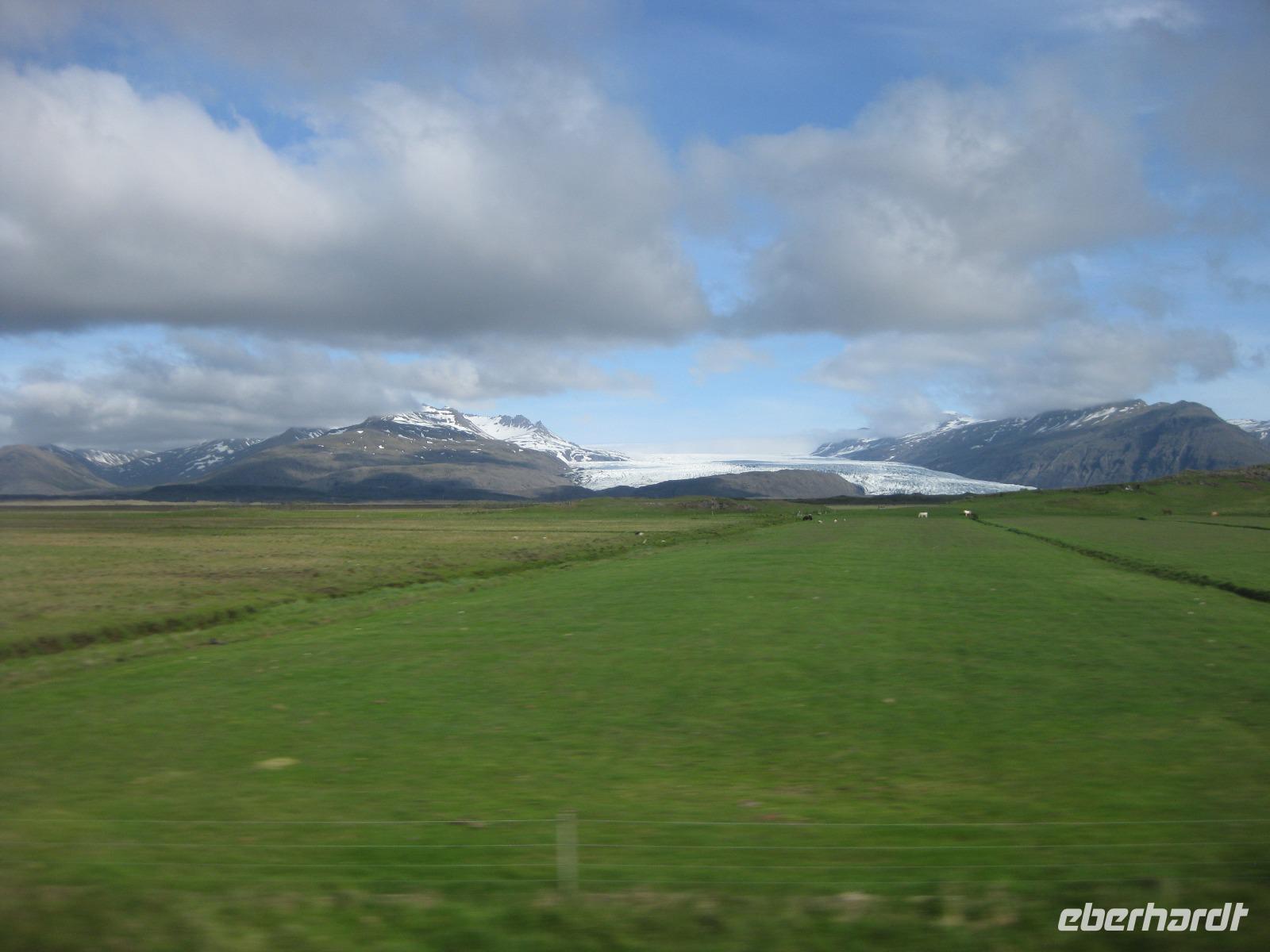 Dann setzen wir unsere Fahrt fort. Wir fahren am größten Talgletscher Europas, dem Skeidararjökull vorbei, über riesige Sanderflächen, an riesigen Lavafeldern, die bei der "Dampfkatastrophe" 1873 entstanden sind, vorbei bis nach Vik. Unterwegs gibt es noch einige Fotostopps.