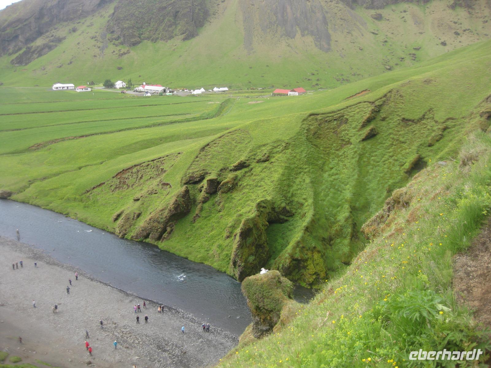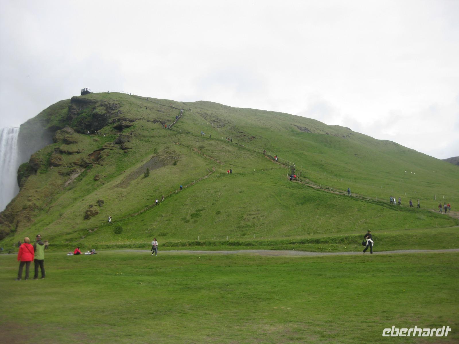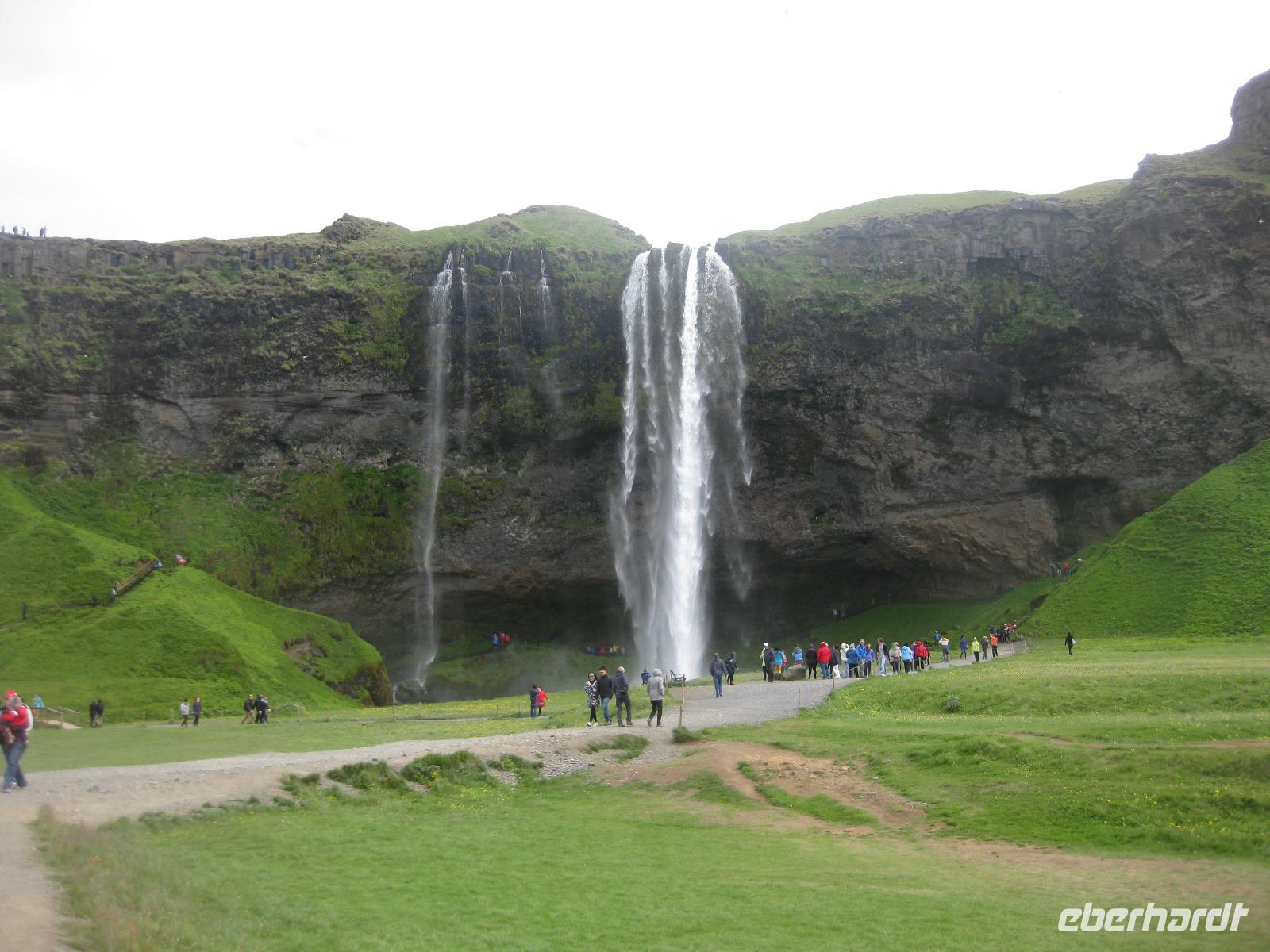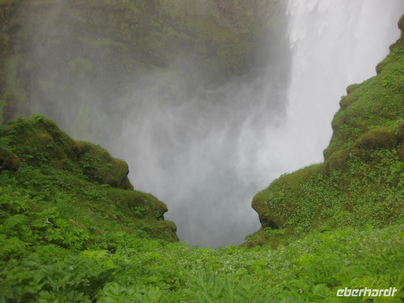 Und dann ist da noch gleich nebenan der "Skogafoss". Hier stürzt das Wasser von einer Klippe aus 60 Meter in die Tiefe.