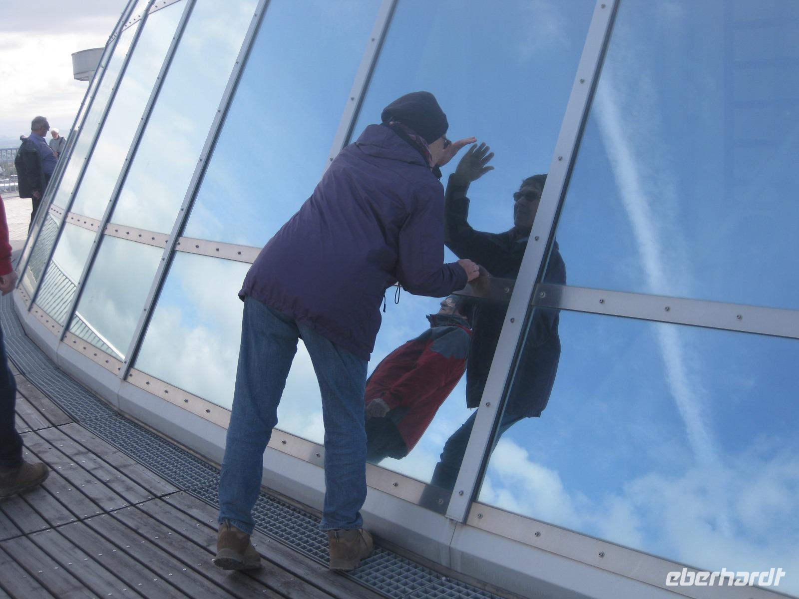 Unser letzter Stopp auf der Fahrt nach Reykjavik ist am "Seljalandsfoss". Hier kann man wie hinter einem Vorhang hinter dem Wasserfall entlang laufen. Man wird dabei etwas nass, aber das trocknet ja wieder - sehr interessant. Und hier haben wir auch die Möglichkeit für einen kleinen Mittagssnack. Anschließend geht es Non-Stopp bis nach Reykjavik. Der Kreis schließt sich. Unsere Rundreise beenden wir mit dem Besuch des "Perlan". Von der Terrasse aus haben wir noch mal einen spektakulären Rundblick auf Reykjavik und die Umgebung. Und dann fahren wir zu unserem Center Hotel "Plaza". Dort verbringen wir die letzte sehr kurze Nacht.