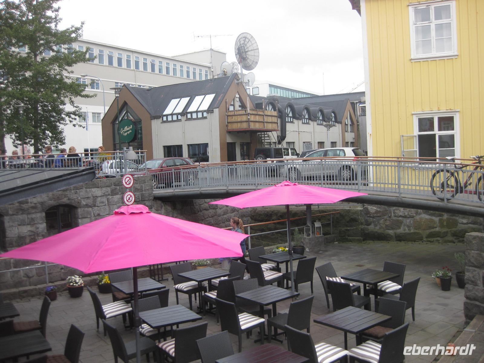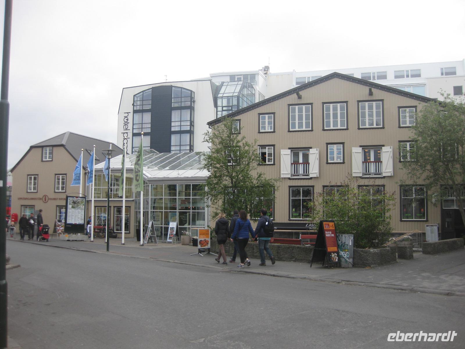 Fast alle Gäste werden zu Hause abgeholt und mit Transferfahrzeugen zum Flughafen Berlin-Schönefeld gebracht. Von hier aus fliegen wir mit WOW Air nach Reykjavik. Drei Gäste fliegen von Frankfurt. Leider verzögern sich unsere Flüge, so dass wir erst am späten Nachmittag fast gleichzeitig in Reykjavik eintreffen. Nun sind wir komplett. Berglind, unsere isländische Reiseleiterin erwartet uns am Flughafen. Sie begrüßt uns sehr herzlich. Heute begleitet sie uns nur bis zum Hotel in die Stadt. Die für den Nachmittag geplante Stadtrundfahrt können wir leider nicht mehr machen. Dafür reicht die Zeit nicht aus. Wir werden sie aber nachholen. Deshalb fahren wir gleich mit dem Bus bis zu unserem Hotel mitten in der Stadt. Das Hotel ist auf unseren Empfang gut vorbereitet, so dass wir ganz schnell einchecken können. Inzwischen ist es schon Abend geworden. Wir treffen uns in der Hotel-Lobby und gehen in das gegenüber liegende Restaurant "Reykjavik" zu unserem ersten gemeinsamen Abendessen. Wir werden dort schon erwartet. Anschließend machen wir noch einen kleinen Spaziergang durch das Stadtzentrum. Es wird gar nicht dunkel, denn es ist gerade jetzt die Zeit der hellen Nächte.