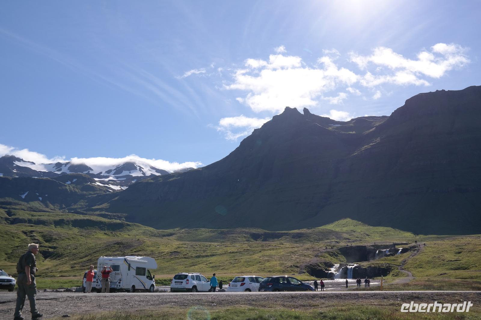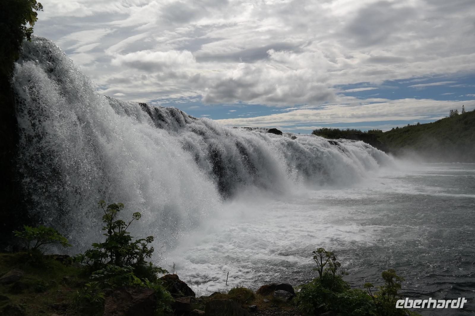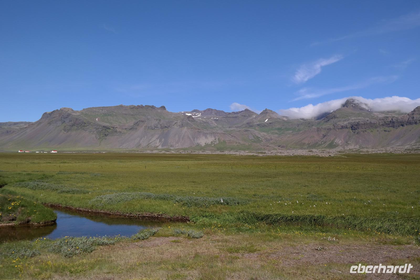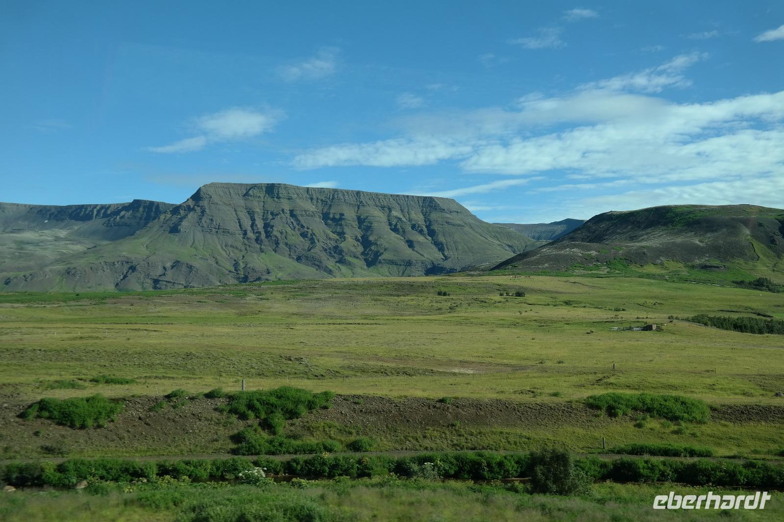 Unsere Weiterfahrt führt uns in eine Region, mit saftig grünen Bergwiesen und weiten Flussarmen. In diesem Gebiet werden seit jeher der Islandpferde gezüchtet. Hier können die Fohlen in den ersten vier Lebensjahren frei umherstreifen, ehe sie später gezähmt und zugeritten werden. Wir besuchen den Pferdehof von Anna und ihrer Familie. Anna erzählt uns vieles über die Islandpferde und stellt uns auch ihre Familie vor. Anschließend führt uns der Sohn auf seinem Islandpferd die fünf verschiedenen Gangarten dieser kleinen Pferderasse vor.