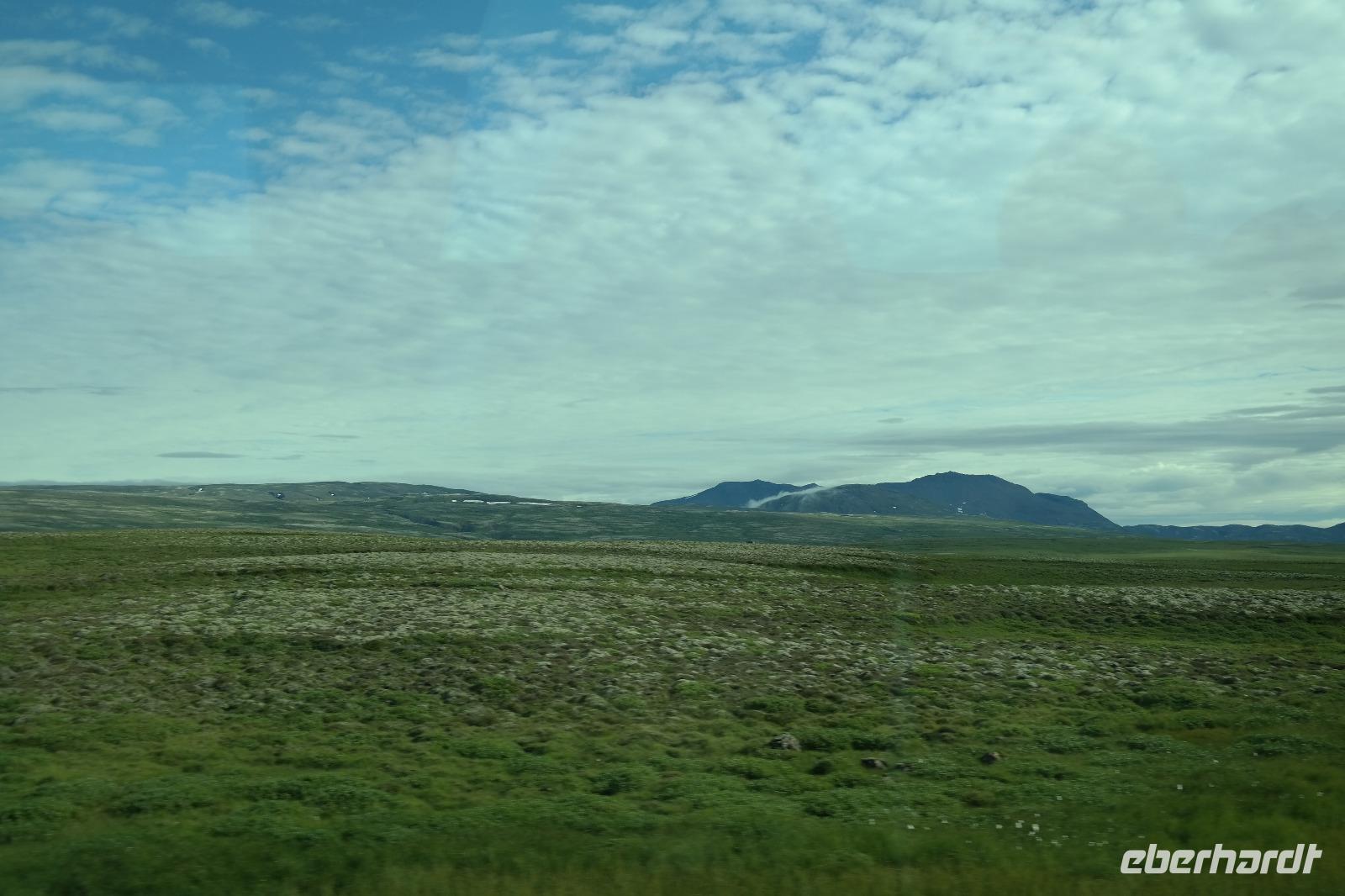 Wir fahren durch mit grauen Flechten bewachsene Lavafelder. Am Abend erreichen wir unser Hotel und lassen den Abend bei einem leckeren Abendessen ausklingen.