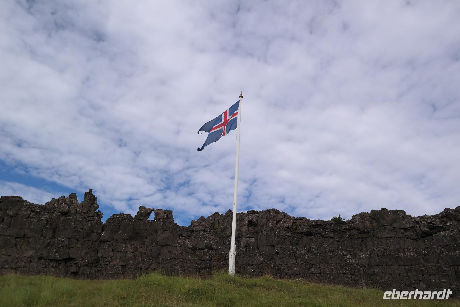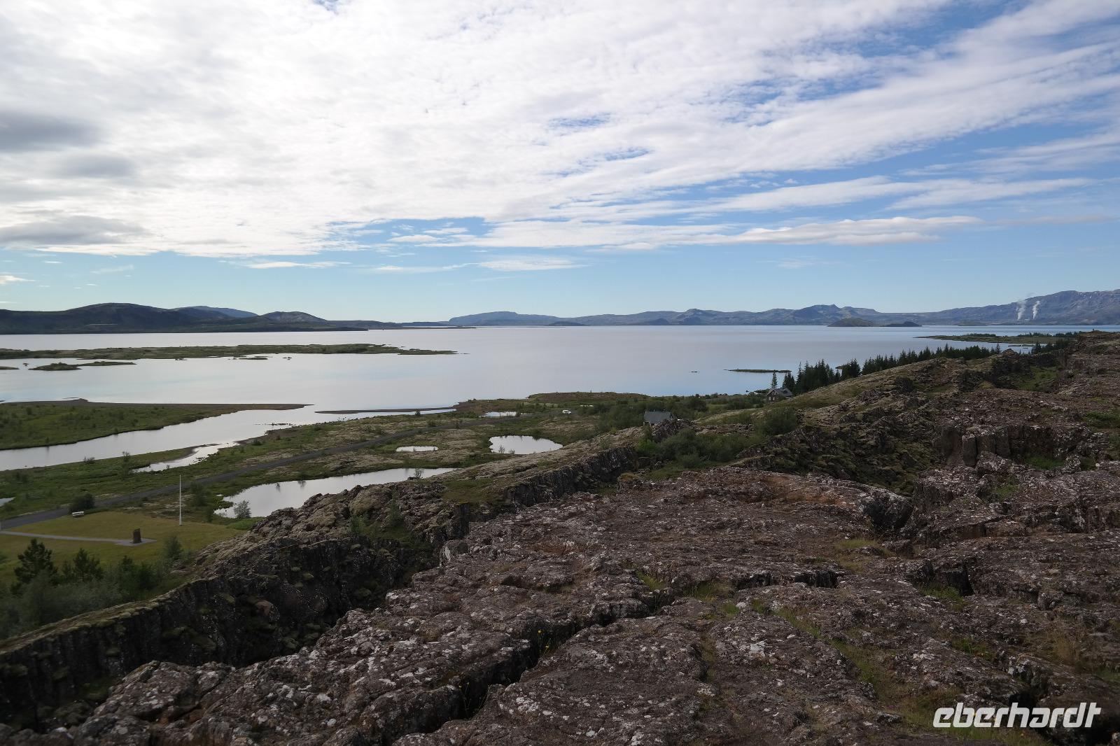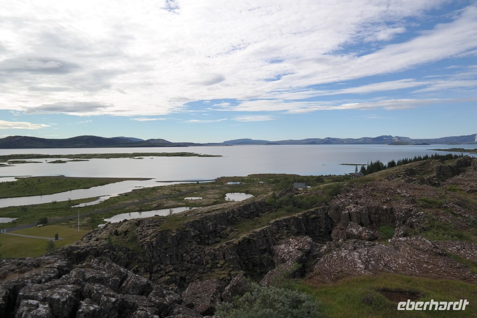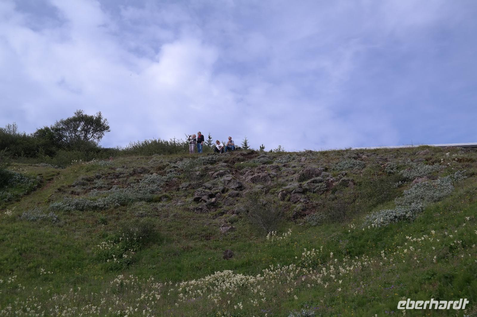 Pünktlich 09.00 Uhr starten wir mit unserem Reisebus. Schon nach kurzer Fahrzeit haben wir den etwas stärker besiedelten Großraum Reykjavik verlassen und sehen spärlich bewachsene Lava- und Hügellandschaften. Wir fahren weiter und erreichen den Thingvellir Nationalpark, wo wir eine kleine Wanderung unternehmen. Man sieht hier recht anschaulich, wie die Erde an dieser Stelle auseinander bricht. Hier wurde um 1000 die weltweit erste demokratische Regierung ausgerufen, ein Rat der verschiedenen Stämme der damaligen Inselbewohner.