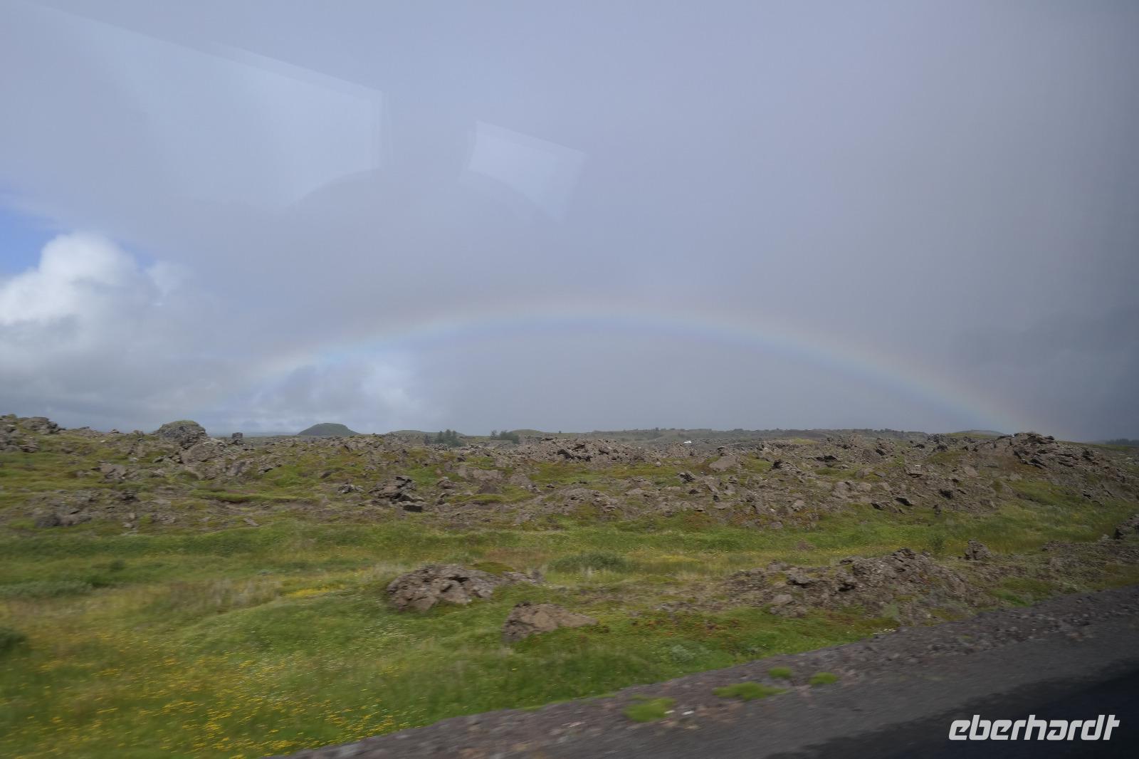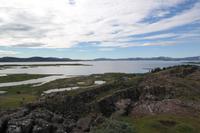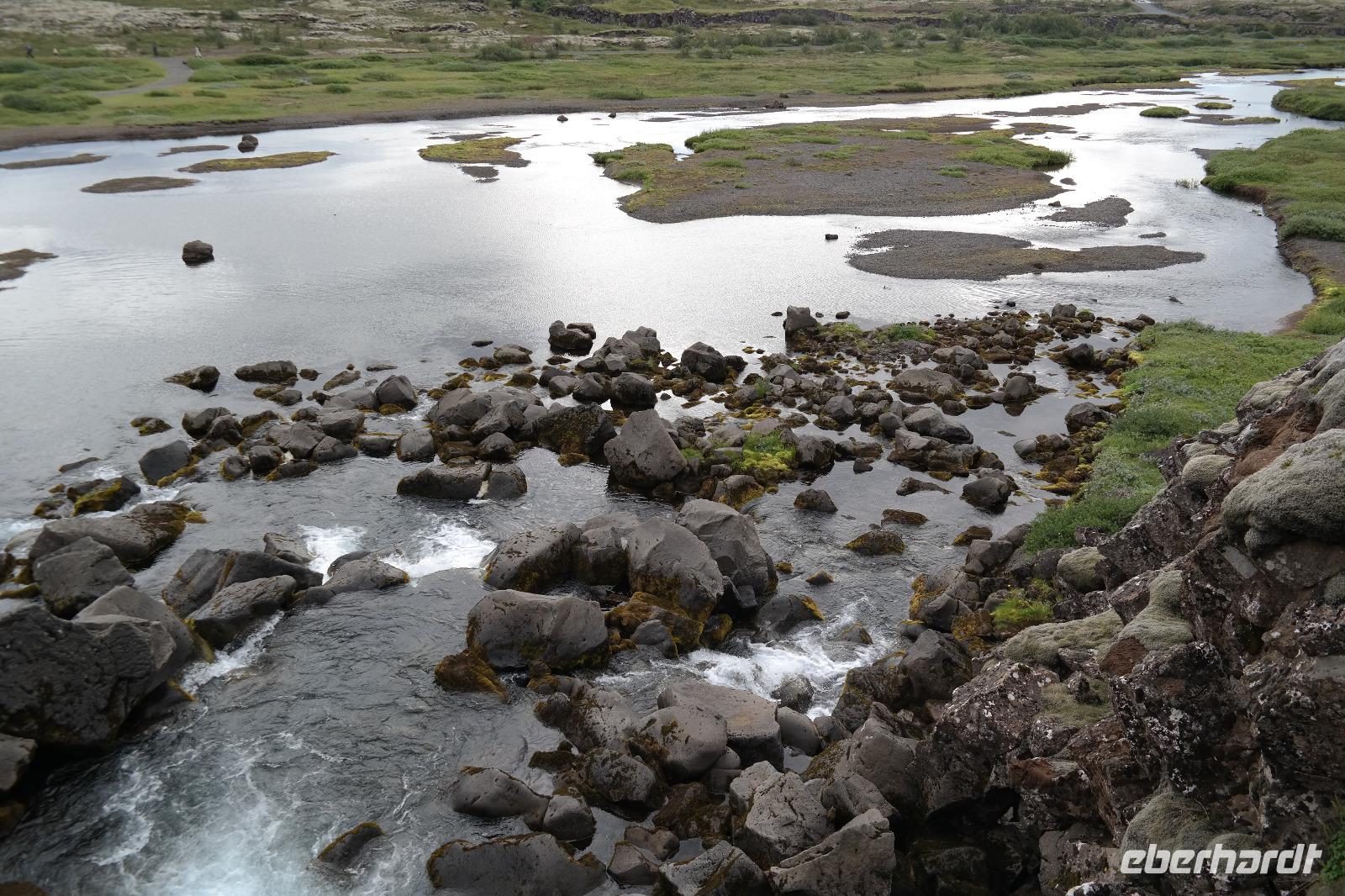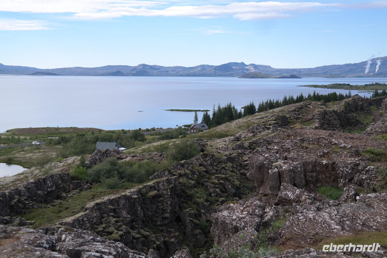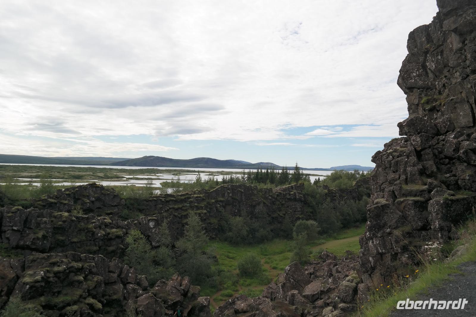 Pünktlich 09.00 Uhr starten wir mit unserem Reisebus. Schon nach kurzer Fahrzeit haben wir den etwas stärker besiedelten Großraum Reykjavik verlassen und sehen spärlich bewachsene Lava- und Hügellandschaften. Wir fahren weiter und erreichen den Thingvellir Nationalpark, wo wir eine kleine Wanderung unternehmen. Man sieht hier recht anschaulich, wie die Erde an dieser Stelle auseinander bricht. Hier wurde um 1000 die weltweit erste demokratische Regierung ausgerufen, ein Rat der verschiedenen Stämme der damaligen Inselbewohner.