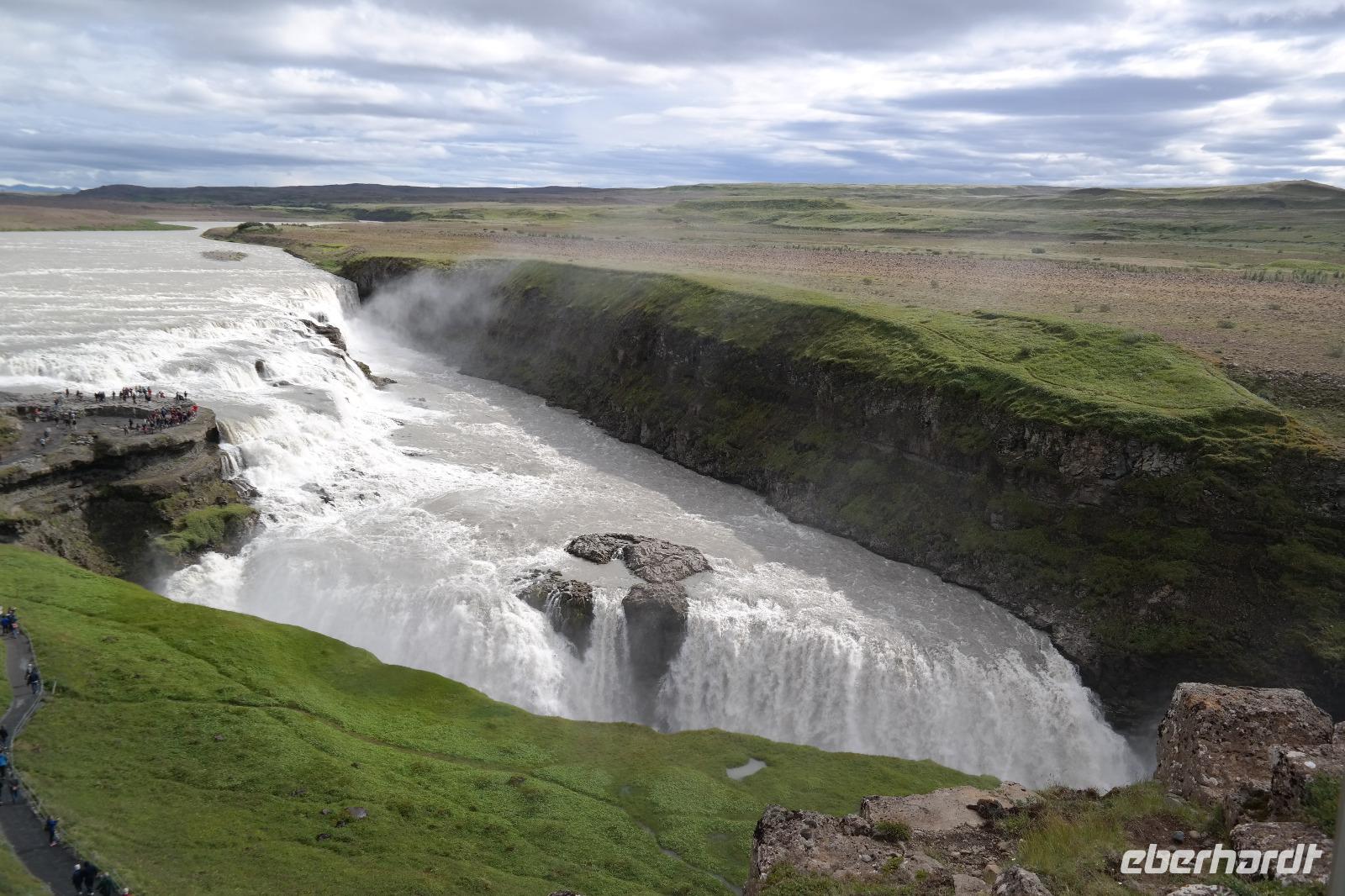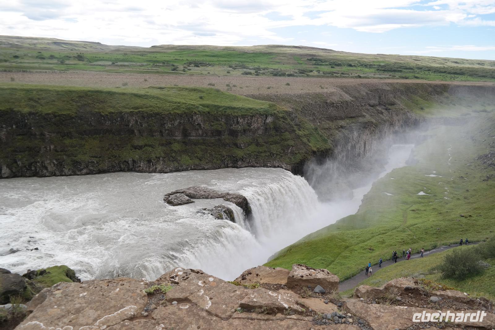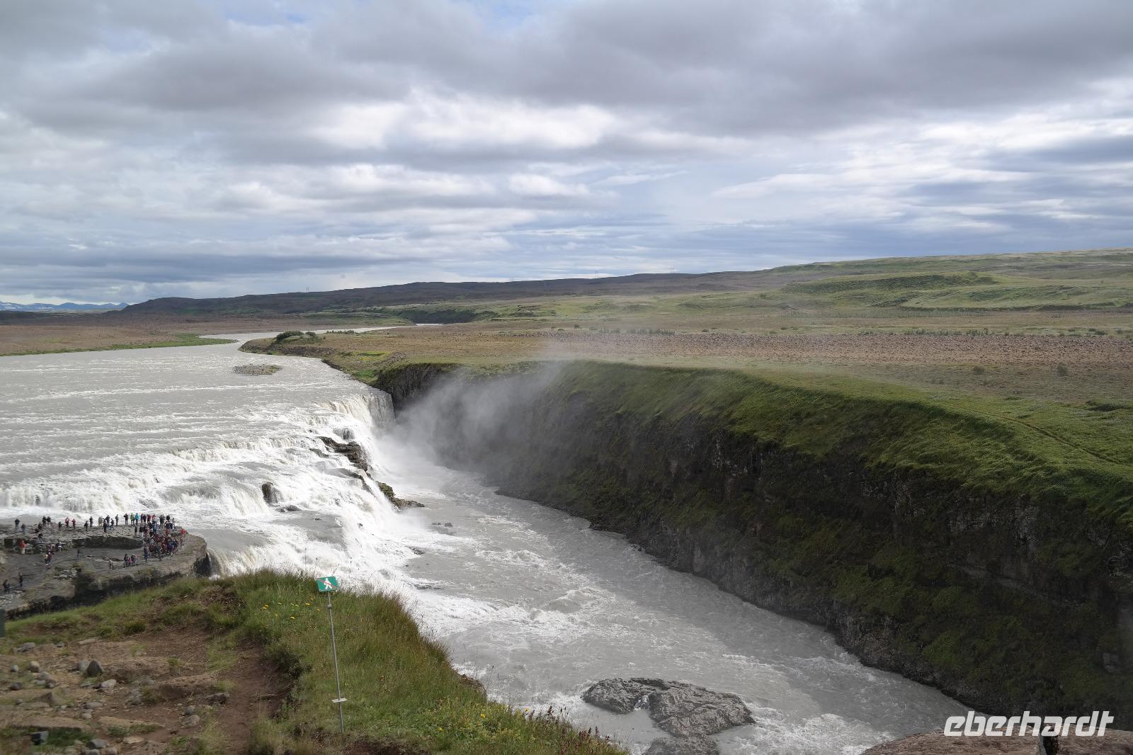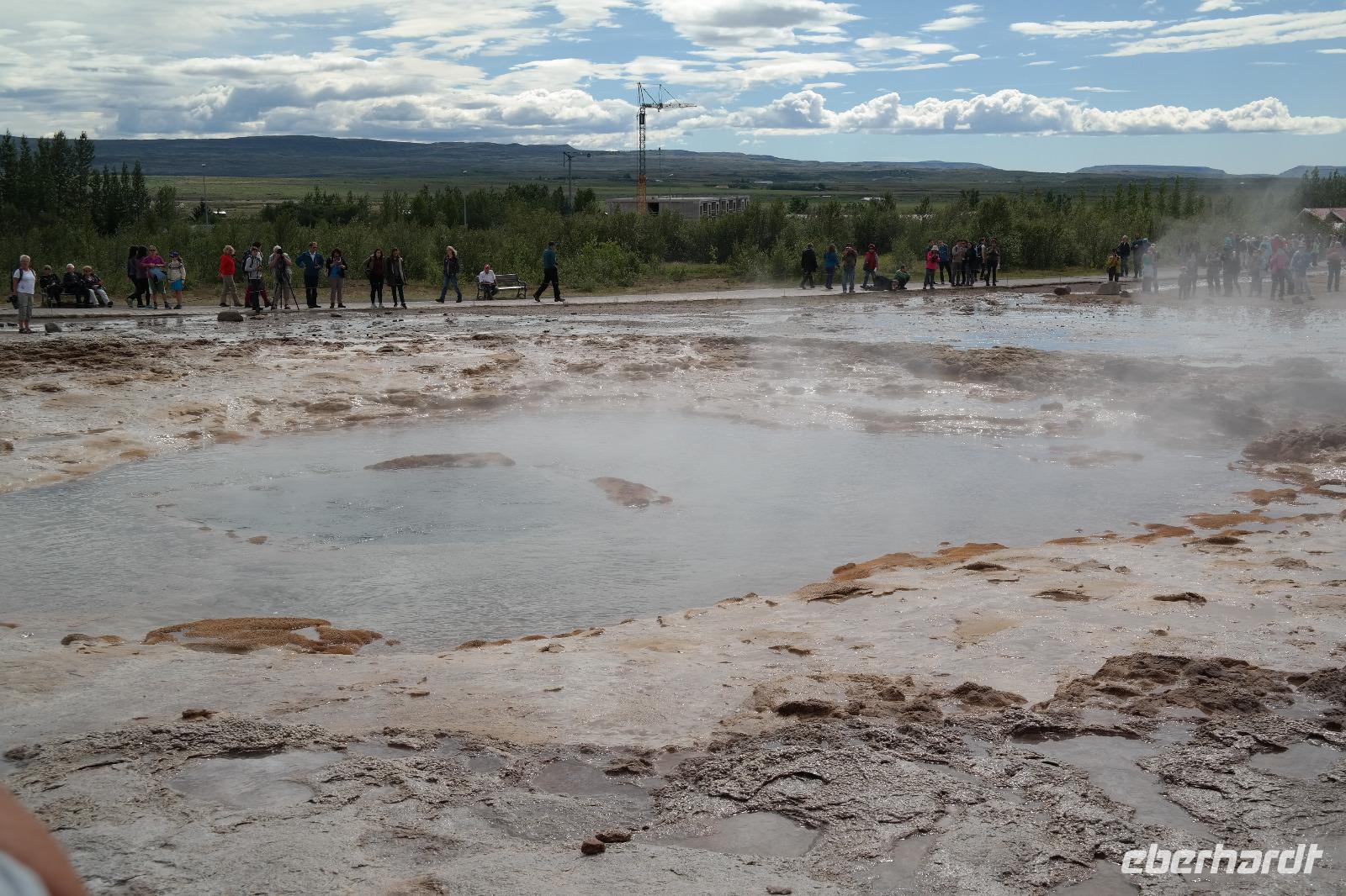 Anschließend fuhren wir weiter gen Ostern zum Wasserfall Gullfoss. Einzigartig stürzt der Wasserfall hier in zwei Stufen hinab in die Tiefe. Nach der Mittagspause fuhren wir weiter zum Geysir. Der Geysir Strokkur bringt alle 4-6 Minuten eine 20 - 30 m hohe Wassersäule hervor, die von den vielen fotografierenden Besuchern entsprechend akustisch gewürdigt wird. Neben weiteren heißen Quellen und viel Dampf bietet dieses Geothermalgebiet eine reizvolle Landschaft. Auf der Weiterfahrt legen wir noch einen Foto-Stopp an einem kleinen, aber sehr schönen Wasserfall ein. Die warmen Temperaturen und der strahlende Sonnenschein laden zum Verweilen ein. Am Nachmittag erreichen wir wieder unser Hotel im Herzen der Hauptstadt Reykjavik.