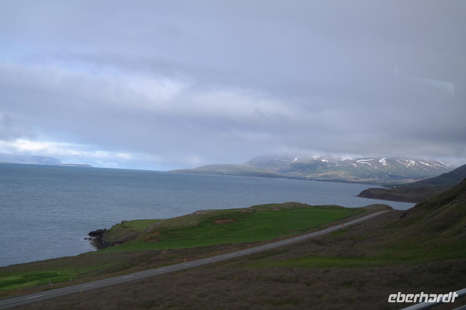 Nach einer weiteren Fahrt durch die einzigartige Landschaft erreichen wir die kleine Hafenstadt Akureyri, die am längsten Fjord „Eyjafjödur" der Insel, also ca. 60 km im Landesinneren liegt. Den Abend verbringt ein großer Teil der Reisegruppe auf einem Schiff zur Walbeobachtung. Gegen Mitternacht erreichen wir das Hotel, doch auch zu dieser späten Tageszeit war es nicht dunkel.