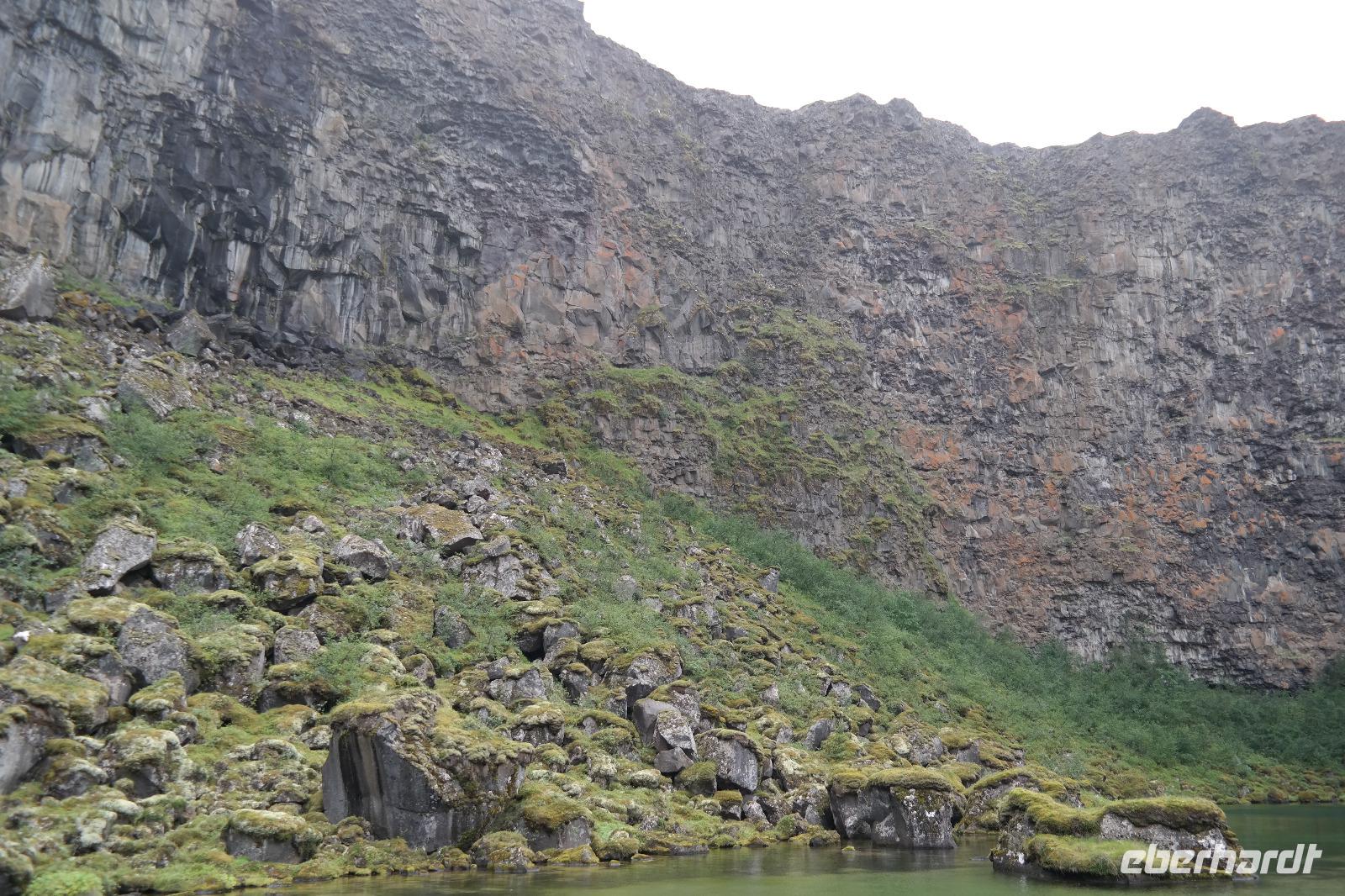 Nach dem Frühstück starteten wir zu unserem heutigen Ausflug. Zuerst besuchen wir den Godafoss - dem Götterwasserfall. Der Fluss Skjáfandafljót bildet den imposanten Wasserfall. Die Wassermassen stürzen zwar nur auf eine Höhe von 10 Metern, aber in breiter Front in die Tiefe der Schlucht. Sein Name geht auf den Goden Porgeir zurück, der sich im Jahr 100 in Pingvellir zum Christentum bekannte und die heidnischen Götterstatuen in den Wasserfall warf. Nachdem wir genügend Zeit hatten zum Schauen und Fotografieren, sind wir weiter nach Asbyrgi gefahren. Diese Schlucht mit den imposanten Felswänden ist 3,5 Kilometer lang, 1 Kilometer breit und 100 Meter tief. Von Norden ragt ein Keil in die Schlucht und bekam so die Form eines Hufeisens. Der Überlieferung nach, soll die Schlucht durch einen Hufabdruck von Odins achtbeinigem Pferd Sleipnir entstanden sein. Unser nächstes Ziel ist das kleine Fischerstädtchen Husavik. Die kleine Hafenstadt liegt am Beginn der Halbinsel Tjörnes. Anschließend fuhren wir über Husavik zurück nach Akureyri.