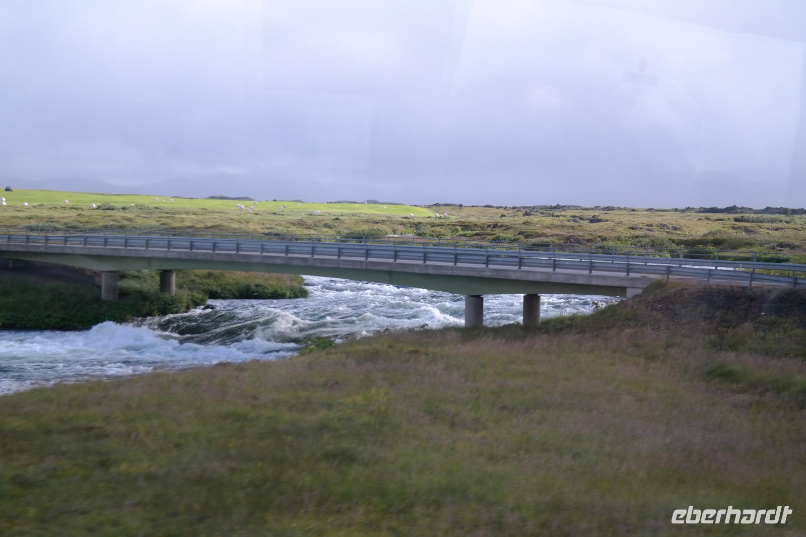 Nun bringt uns der Bus noch weiter in Richtung Osten. Wir halten zu einem Fotostopp an der Stelle, wo damals eine Brücke weggespült wurde, beeindruckend, welche Kraft die Natur hat.