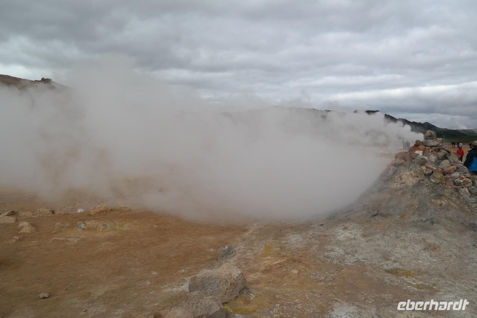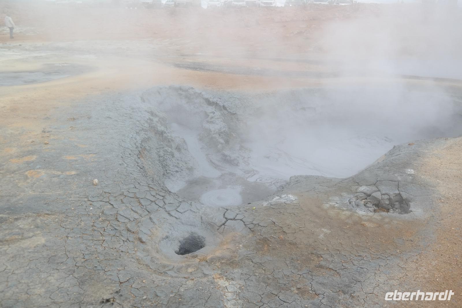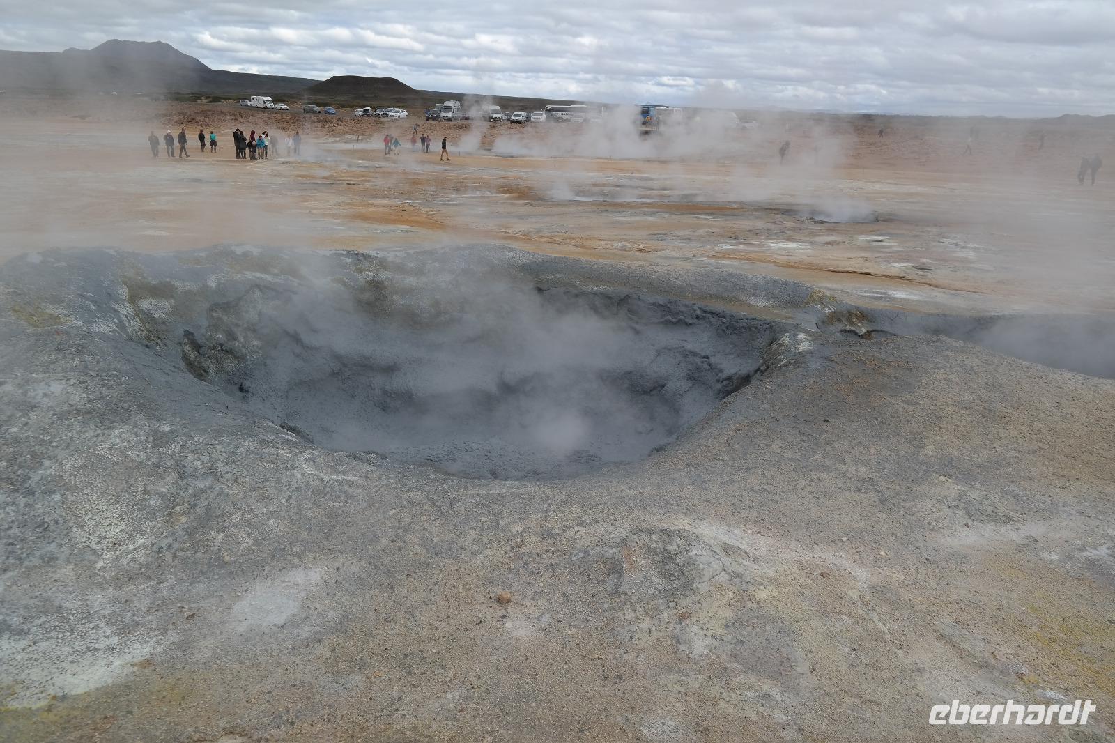Der heutige Tag beginnt etwas früher für uns, aber es gibt heute viel zu sehen und erleben. Am frühen Morgen fahren wir zum Mückensee. Wir besuchen die Pseudokrater. Diese sind nur Scheinkrater und entstanden dadurch, dass die heiße Lava in ein Feuchtgebiet floss und es dort zu explosionsartigen Entladungen von Wasserdampf kam, welche diese Krater schufen. Weiter führte unsere Tour nach Dimmuborgir zu den schwarzen Burgen. Das Lavagestein bildete in dieser bizarren Landschaft ein Labyrinth mit unzähligen verschiedensten Steingebilden. Anschließend konnten wir bei einem Bad im Thermalbad Jardbödin entspannen. Wir genossen das Baden im mineralhaltigen, warmen Wasser, welches direkt aus der Erde kam, und den Ausblick über die einzigartige Vulkanlandschaft. Bevor es weiterging, nahmen fast alle noch einen kleinen Imbiss ein und wir probierten das Lavabrot, welches direkt im Lavagestein in der Erde gebacken wurde. Vom warmen Wasser ging es mit einem Fotostopp durch die weitere Landschaft in das Hochtemperaturgebiet Namafjall Hverir. Unser nächstes Ziel ist der Wasserfall Dettifoss. Dieser Wasserfall ist der größte Wasserfall Europas. Wir spazieren durch eine ungewöhnliche Landschaft aus großen Basaltstücken zum Wasserfall. Auf einer Länge von 110 Metern stürzen die Wassermassen in die Tiefe. In Mödrudalur an dem kleinen, völlig einsamen und höchstgelegenen Bauernhof Islands legen wir nochmals eine kurze Pause ein. Am frühen Abend erreichten wir unser Hotel. Dieser Tag bietet uns eine ganze Breite an unterschiedlichsten Eindrücken.