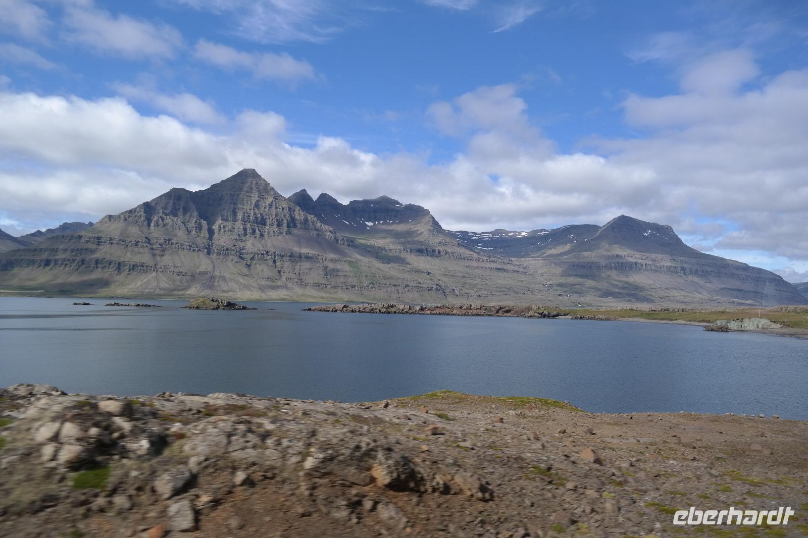 Der heutige Tag führt uns als erstes nach Egilsstadir. Dann folgen wir der N1 weiter über die Berge an die Ostküste. Wir erreichen den größten Fjord im Osten Reydarfjödur. Von nun an folgen wir dem Verlauf der Uferstraße entlang der Fjorde weiter nach Süden und erreichen den Ort Stödvarfirdi. Dort besuchen wir „Petra´s Steinhaus". Petra sammelte ihr Leben lang Steine der Insel und stellte diese schließlich im Garten aus.