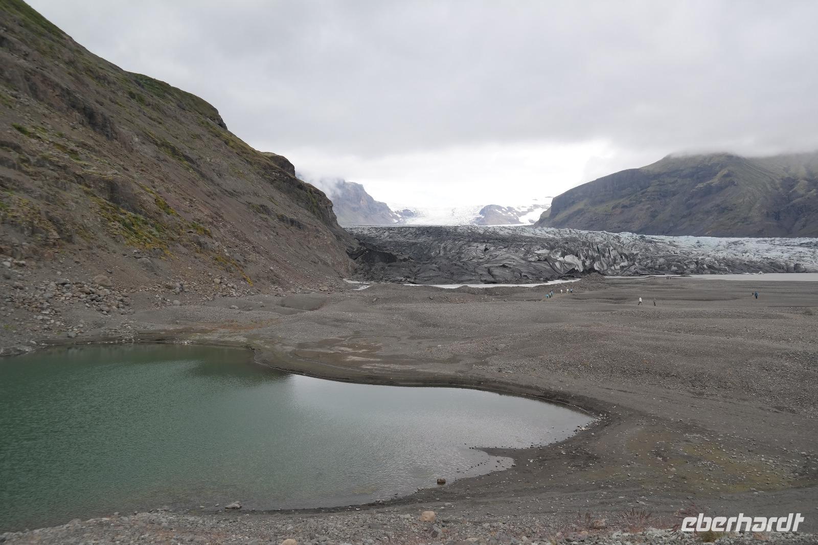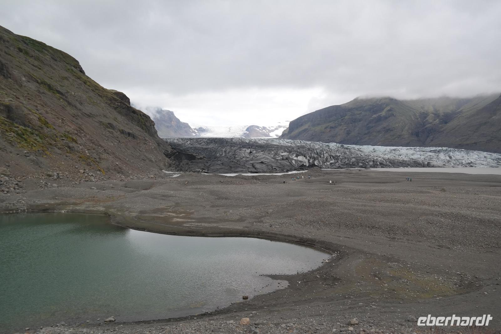 Weiter geht es auf der N1 weiter nach Osten. Wir legen einen nächsten Stopp am Besucherzentrum des Nationalparkes „Skaftafell" ein. Anschließend wandern wir bis zur Gletscherzunge.