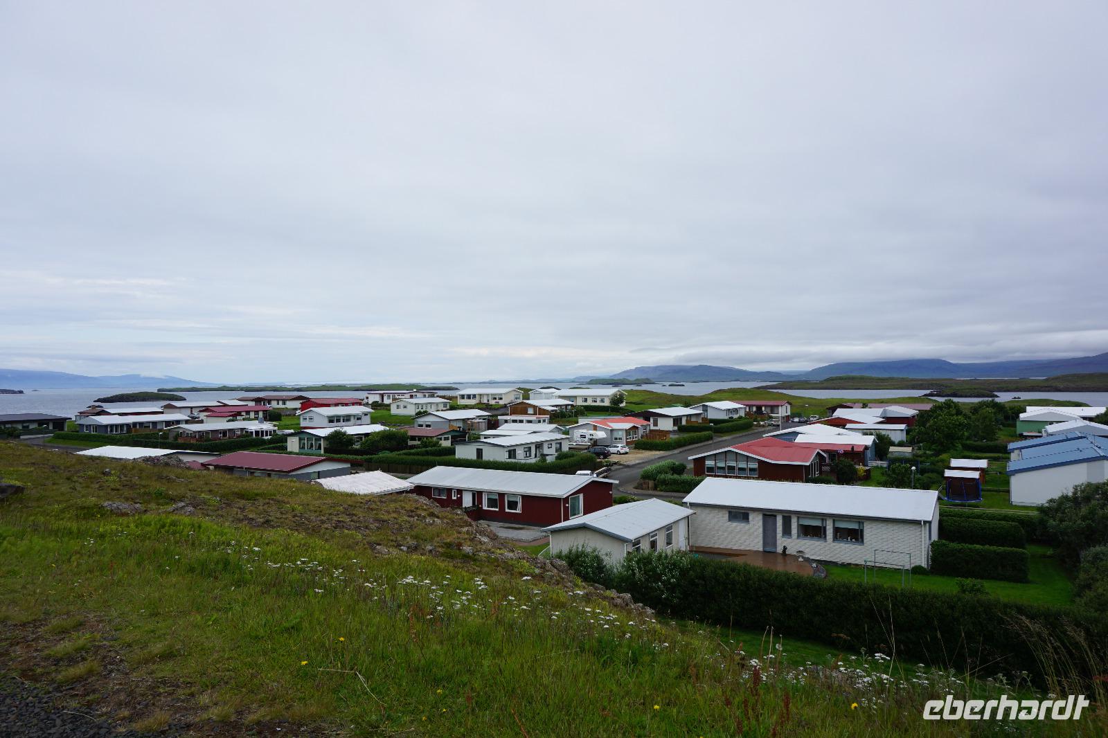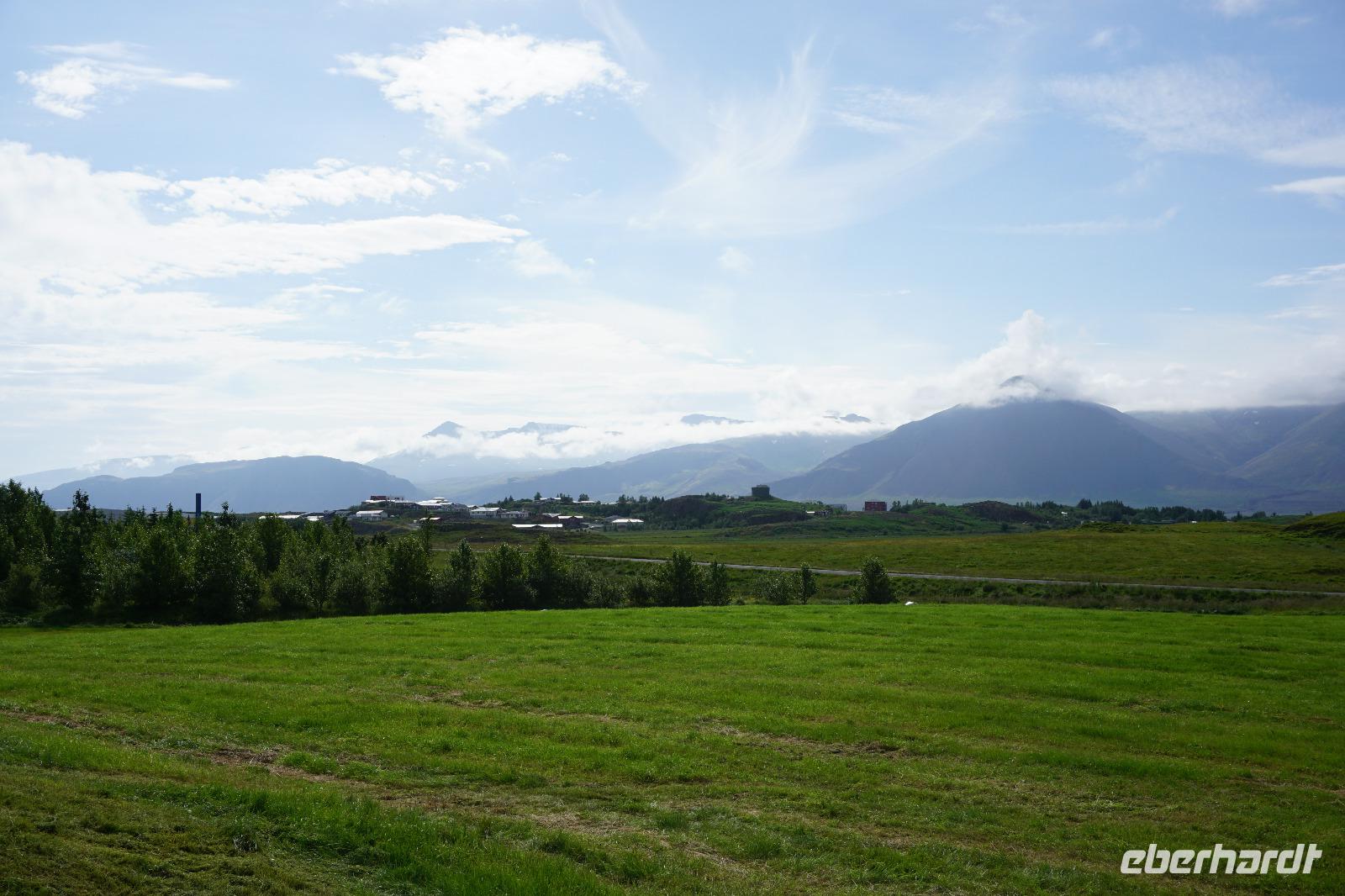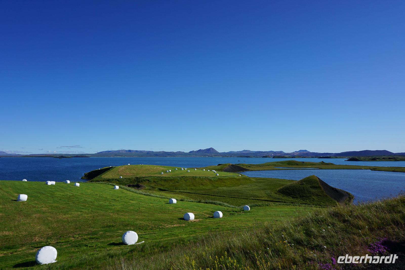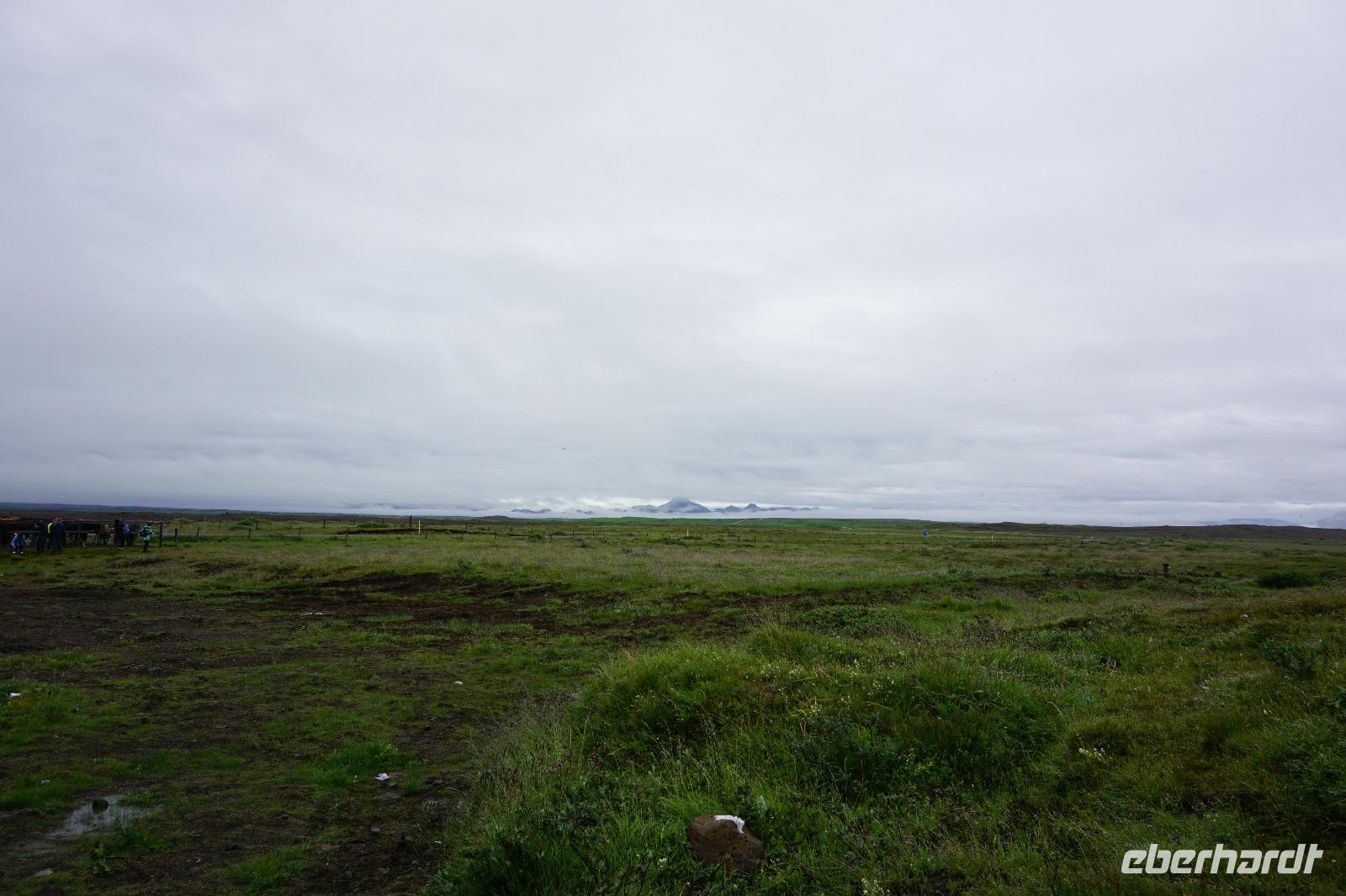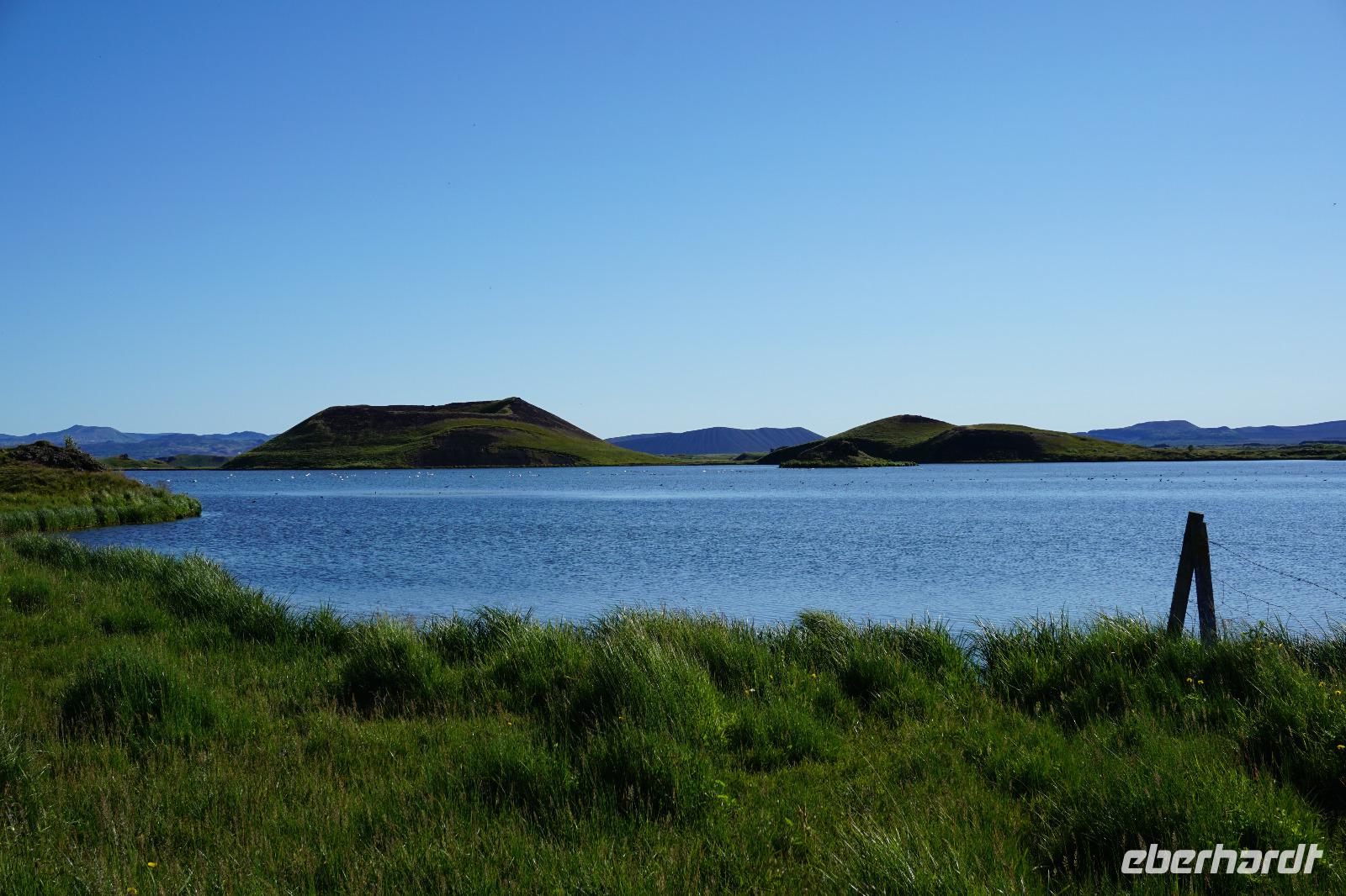Heute fuhren wir zuerst zum Myvatn - dem Mückensee. Dort machten wir einen kleinen Spaziergang. Mit den Mücken hielt es aber sich zum Glück in Grenzen. Diese sind im Juli nicht ganz so aktiv wie im Juni oder August. Bei unserem Spaziergang konnten wir viele Pseudokrater bewundern und eine kleine Schafherde beobachten, die sich in den Schatten eines Heuballens zur Ruhe gelegt hatte. Anschließend fuhren wir in das Naturschutzgebiet Dimmuborgir, wo wir viele bizarre Steinsformationen sehen konnten. Es handelt sich hierbei um ein Lavafeld und die Überreste eines Lavasees. Danach ging es weiter nach Jarbödin, wo die Möglichkeit bestand ein Bad in den heißen Quellen zu nehmen und in vielen gesunden Mineralien zu entspannen. Nach dem Mittag setzten wir unseren Weg zum Hochtemperaturgebiet Namaskard fort. Dort gab es viele farbenprächtige Gesteine, Schlammquellen und Solfatoren zu bestauen. Allerdings liegt auch der Geruch von faulen Eiern in der Luft. Am Krafla machten wir später auch noch einen kleinen Fotostopp. Unser nächstes Ziel war der kraftvolle Wasserfall Dettifoss. Hier stürzen gewaltige Mengen grauen Wassers über eine rund hundert Meter breite Stufe. Ein Stück weiter oben konnte man auch den um einiges kleineren Wasserfall Selfoss sehen. Anschließend fuhren wir zu unserem nächsten Übernachtungsort - Egilsstadir. Die Stadt entwickelte sich erst vor ca. sechzig Jahren aus einem Großgehöft.