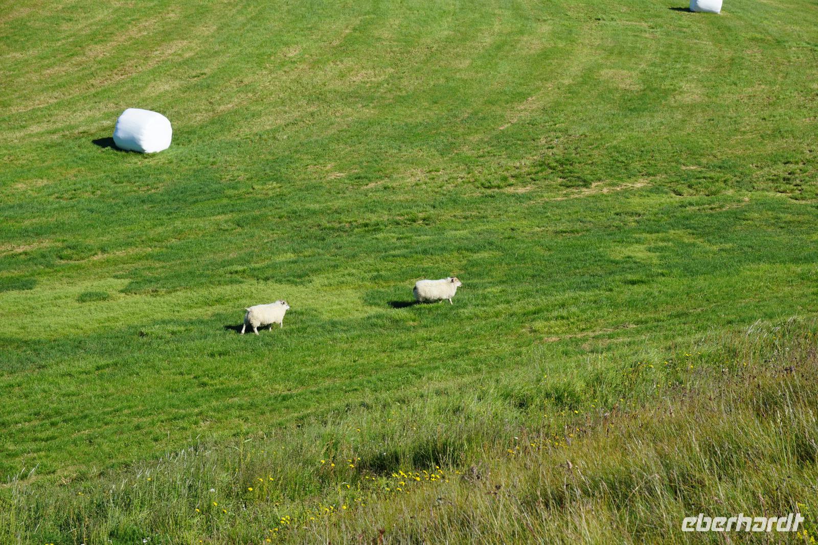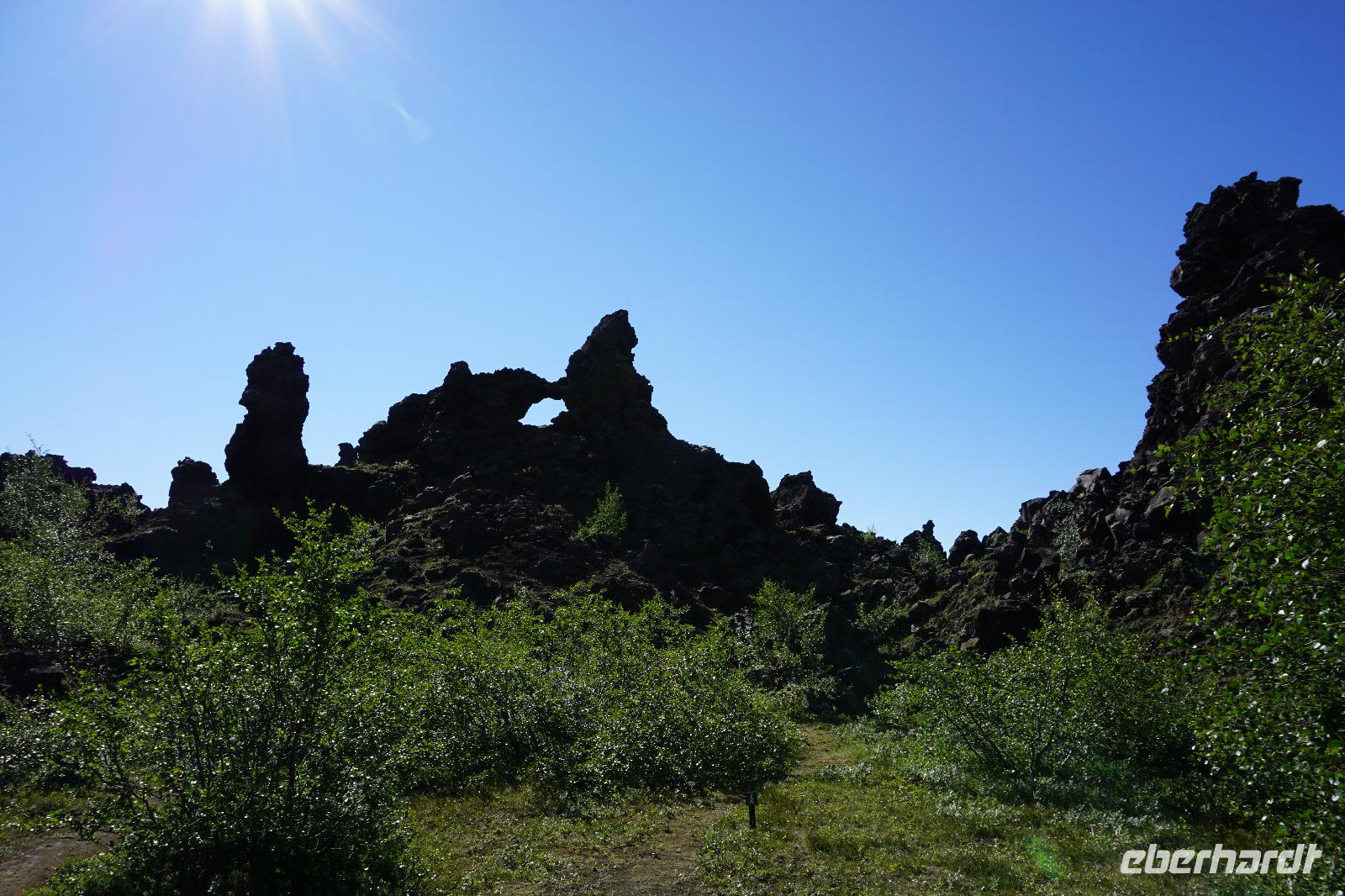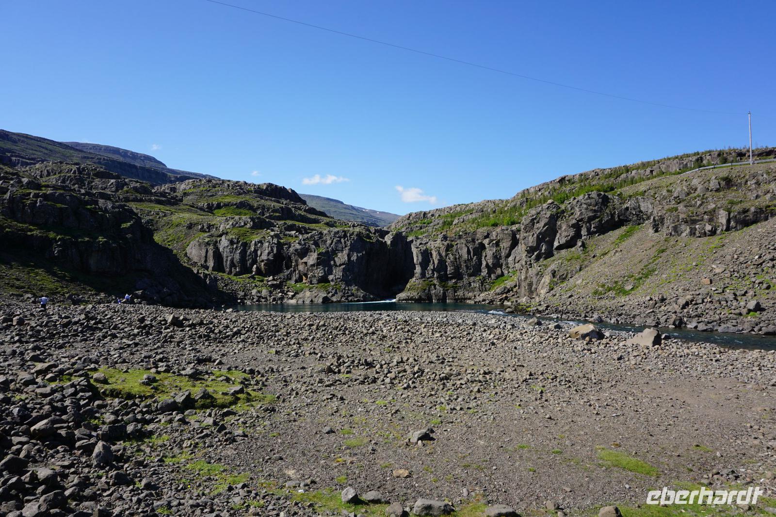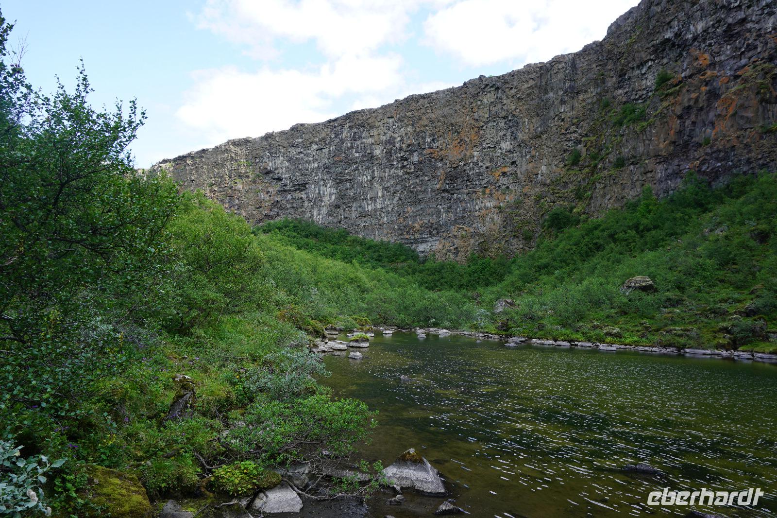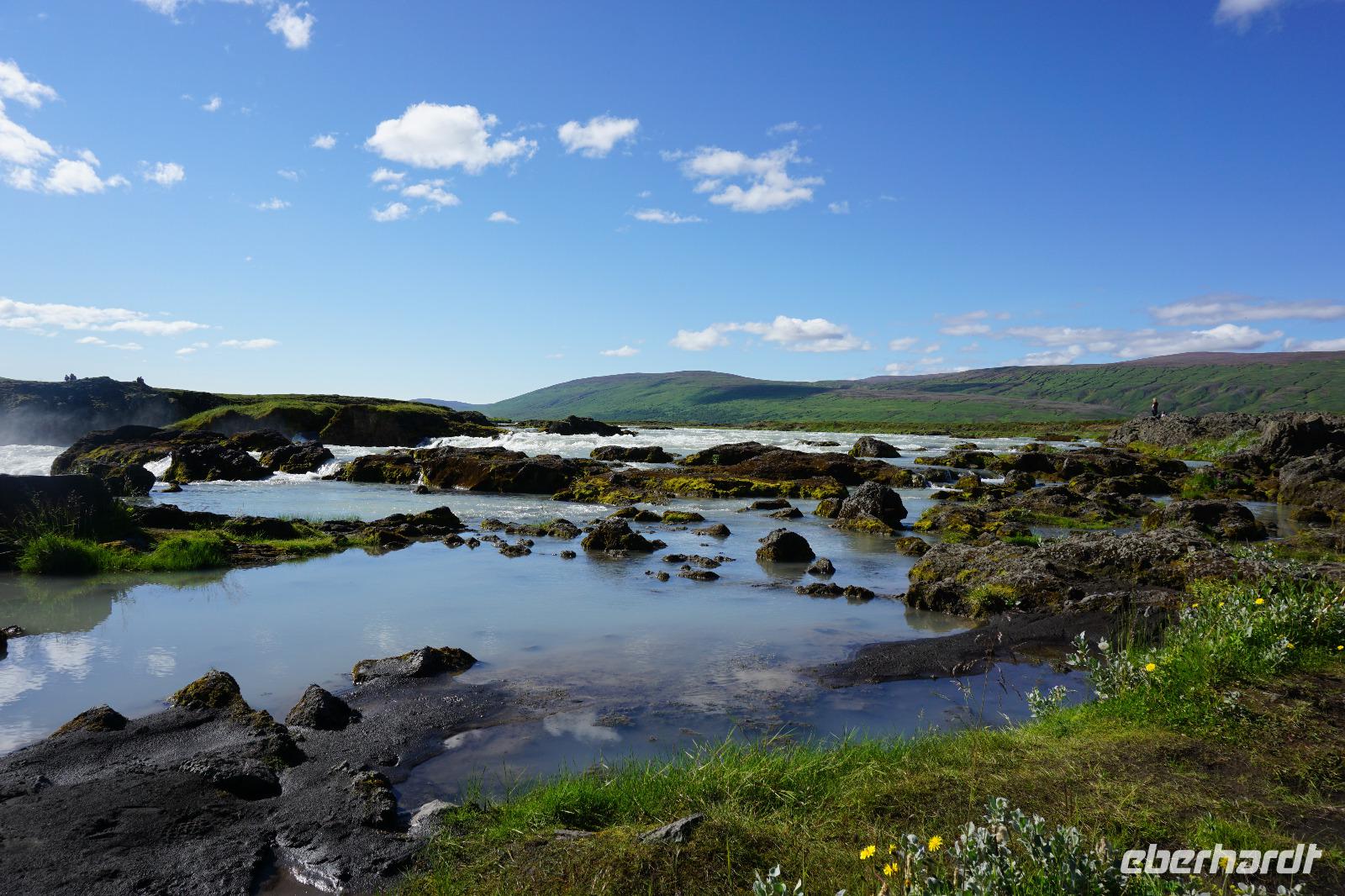 Heute fuhren wir zuerst zum Myvatn - dem Mückensee. Dort machten wir einen kleinen Spaziergang. Mit den Mücken hielt es aber sich zum Glück in Grenzen. Diese sind im Juli nicht ganz so aktiv wie im Juni oder August. Bei unserem Spaziergang konnten wir viele Pseudokrater bewundern und eine kleine Schafherde beobachten, die sich in den Schatten eines Heuballens zur Ruhe gelegt hatte. Anschließend fuhren wir in das Naturschutzgebiet Dimmuborgir, wo wir viele bizarre Steinsformationen sehen konnten. Es handelt sich hierbei um ein Lavafeld und die Überreste eines Lavasees. Danach ging es weiter nach Jarbödin, wo die Möglichkeit bestand ein Bad in den heißen Quellen zu nehmen und in vielen gesunden Mineralien zu entspannen. Nach dem Mittag setzten wir unseren Weg zum Hochtemperaturgebiet Namaskard fort. Dort gab es viele farbenprächtige Gesteine, Schlammquellen und Solfatoren zu bestauen. Allerdings liegt auch der Geruch von faulen Eiern in der Luft. Am Krafla machten wir später auch noch einen kleinen Fotostopp. Unser nächstes Ziel war der kraftvolle Wasserfall Dettifoss. Hier stürzen gewaltige Mengen grauen Wassers über eine rund hundert Meter breite Stufe. Ein Stück weiter oben konnte man auch den um einiges kleineren Wasserfall Selfoss sehen. Anschließend fuhren wir zu unserem nächsten Übernachtungsort - Egilsstadir. Die Stadt entwickelte sich erst vor ca. sechzig Jahren aus einem Großgehöft.