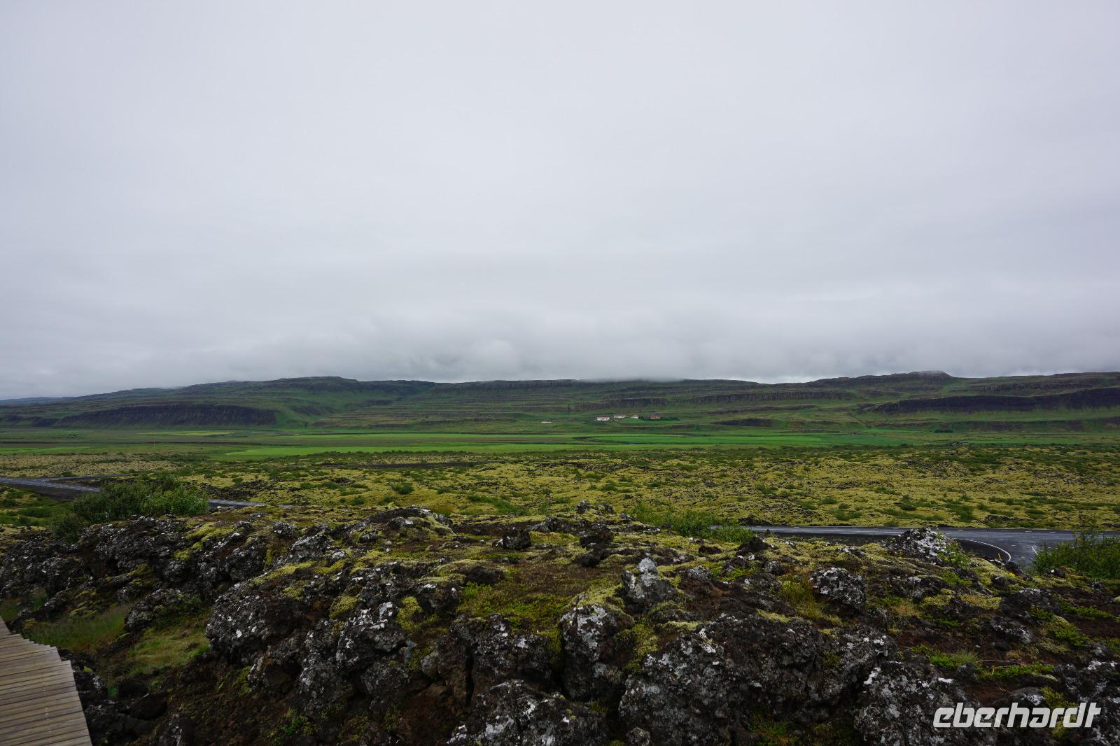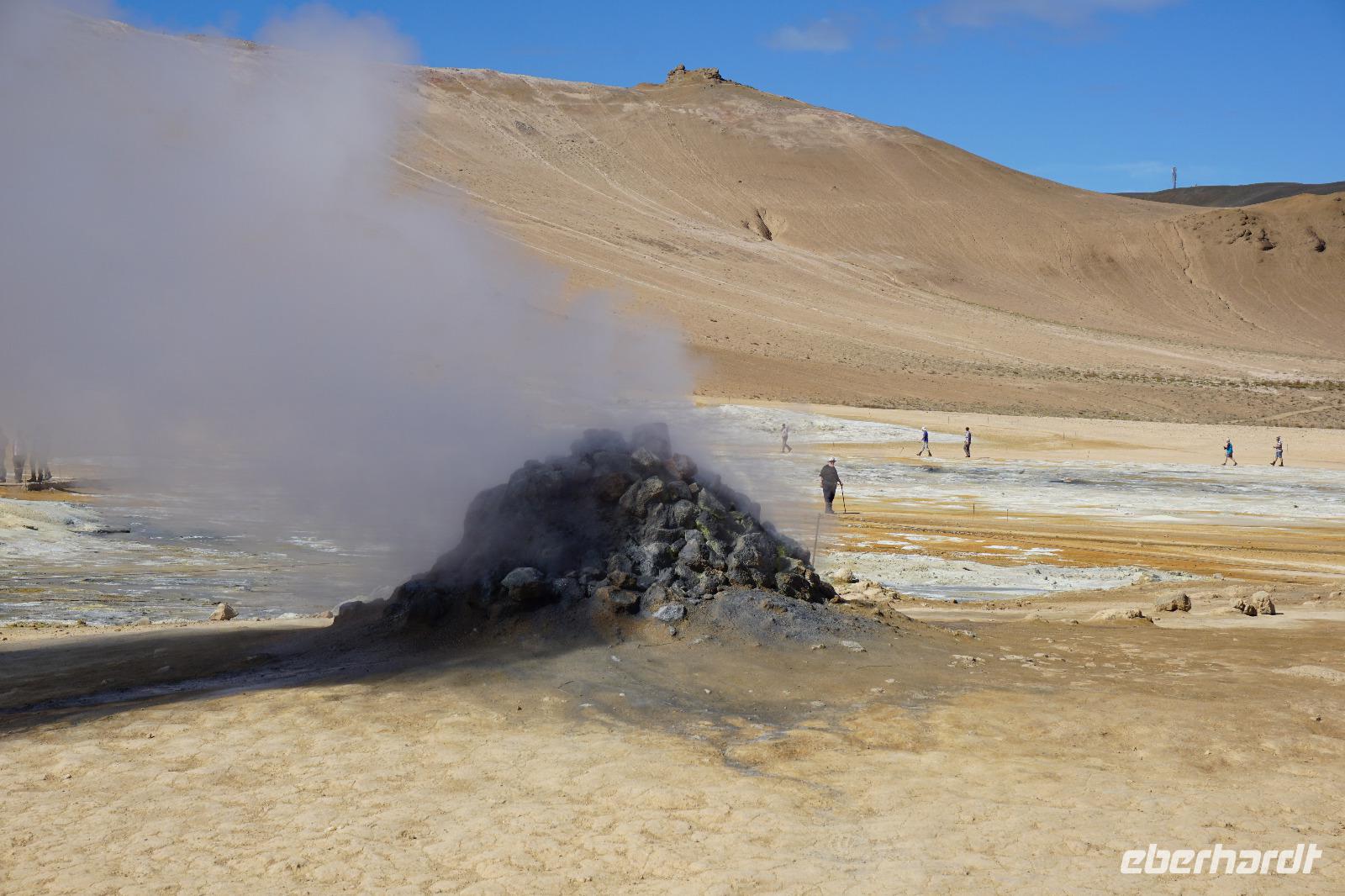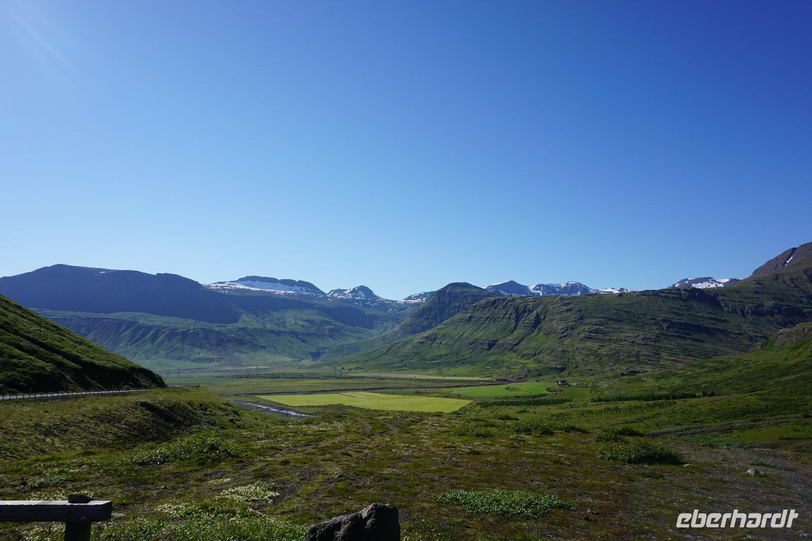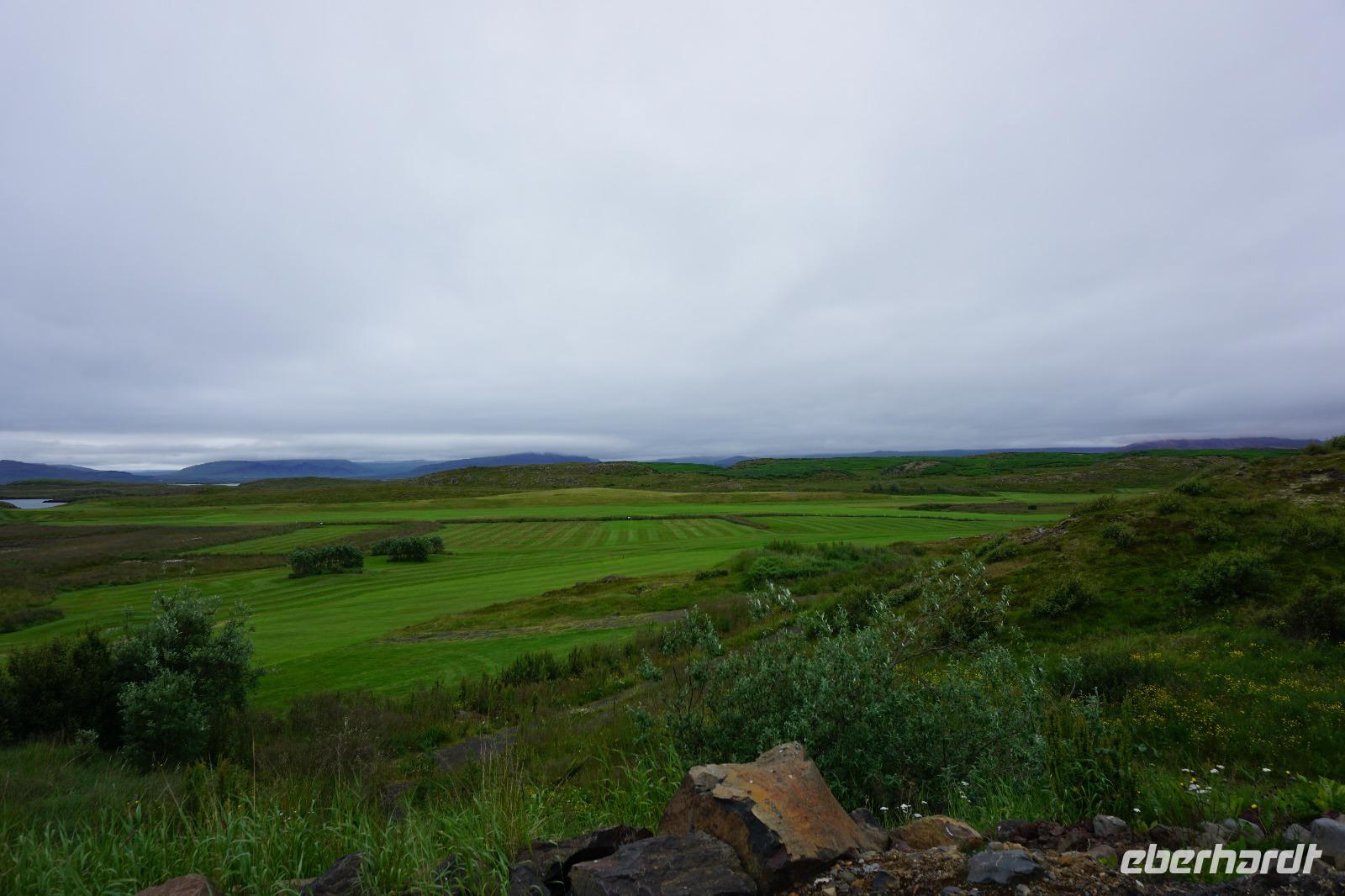 Heute fuhren wir zuerst zum Myvatn - dem Mückensee. Dort machten wir einen kleinen Spaziergang. Mit den Mücken hielt es aber sich zum Glück in Grenzen. Diese sind im Juli nicht ganz so aktiv wie im Juni oder August. Bei unserem Spaziergang konnten wir viele Pseudokrater bewundern und eine kleine Schafherde beobachten, die sich in den Schatten eines Heuballens zur Ruhe gelegt hatte. Anschließend fuhren wir in das Naturschutzgebiet Dimmuborgir, wo wir viele bizarre Steinsformationen sehen konnten. Es handelt sich hierbei um ein Lavafeld und die Überreste eines Lavasees. Danach ging es weiter nach Jarbödin, wo die Möglichkeit bestand ein Bad in den heißen Quellen zu nehmen und in vielen gesunden Mineralien zu entspannen. Nach dem Mittag setzten wir unseren Weg zum Hochtemperaturgebiet Namaskard fort. Dort gab es viele farbenprächtige Gesteine, Schlammquellen und Solfatoren zu bestauen. Allerdings liegt auch der Geruch von faulen Eiern in der Luft. Am Krafla machten wir später auch noch einen kleinen Fotostopp. Unser nächstes Ziel war der kraftvolle Wasserfall Dettifoss. Hier stürzen gewaltige Mengen grauen Wassers über eine rund hundert Meter breite Stufe. Ein Stück weiter oben konnte man auch den um einiges kleineren Wasserfall Selfoss sehen. Anschließend fuhren wir zu unserem nächsten Übernachtungsort - Egilsstadir. Die Stadt entwickelte sich erst vor ca. sechzig Jahren aus einem Großgehöft.
