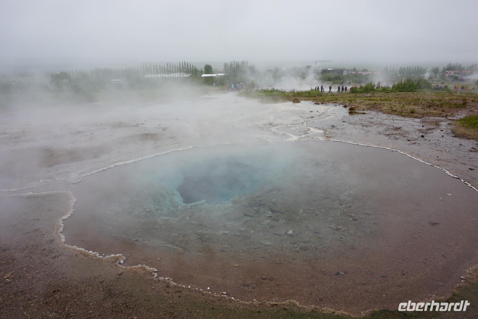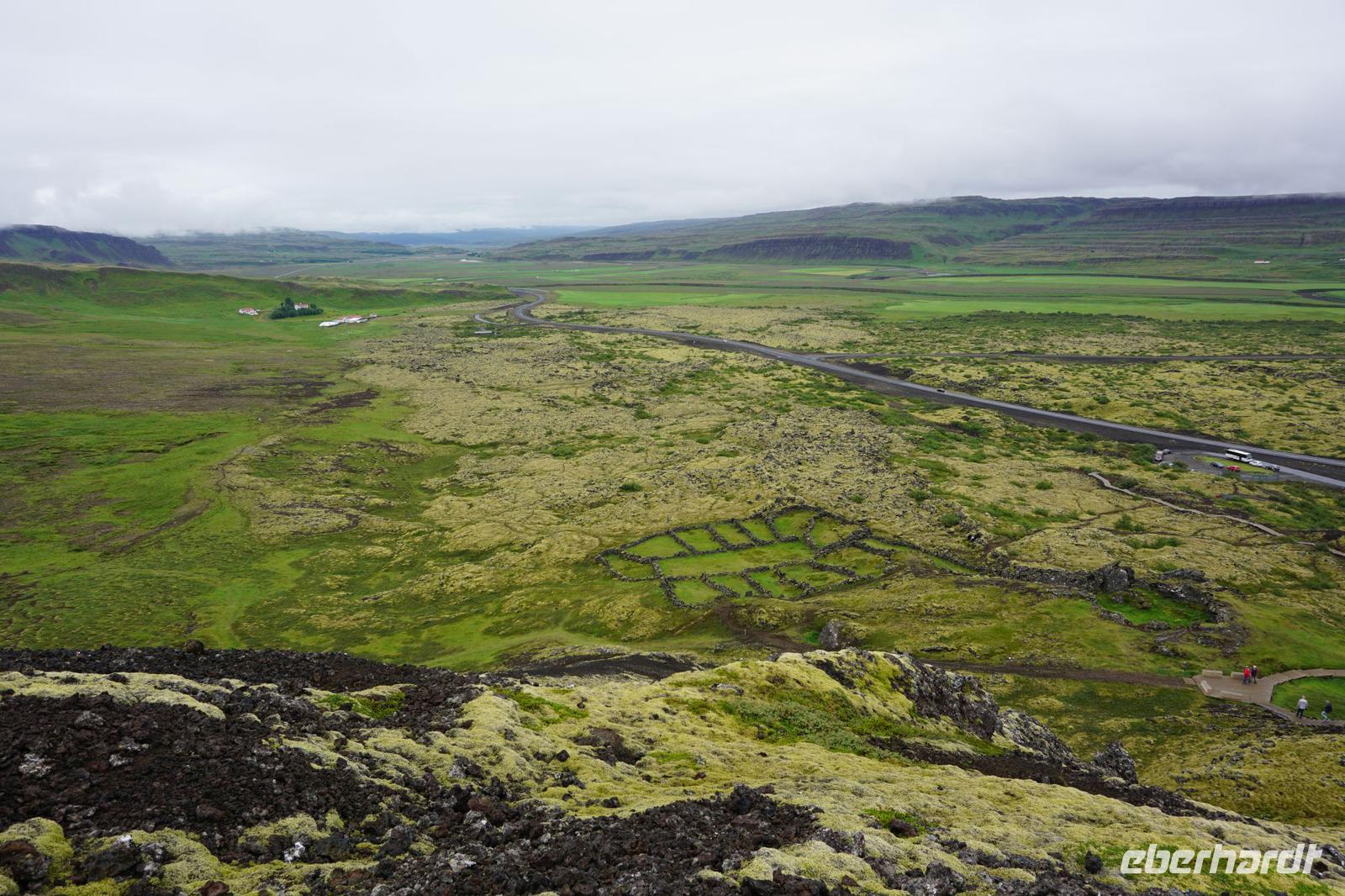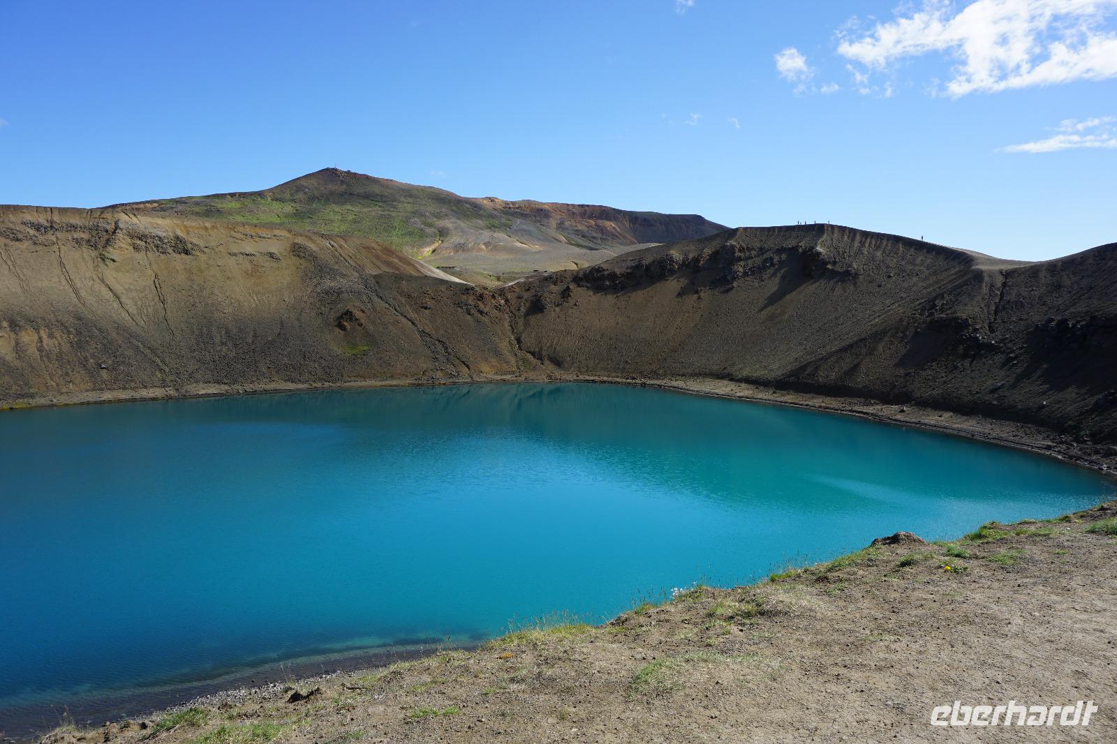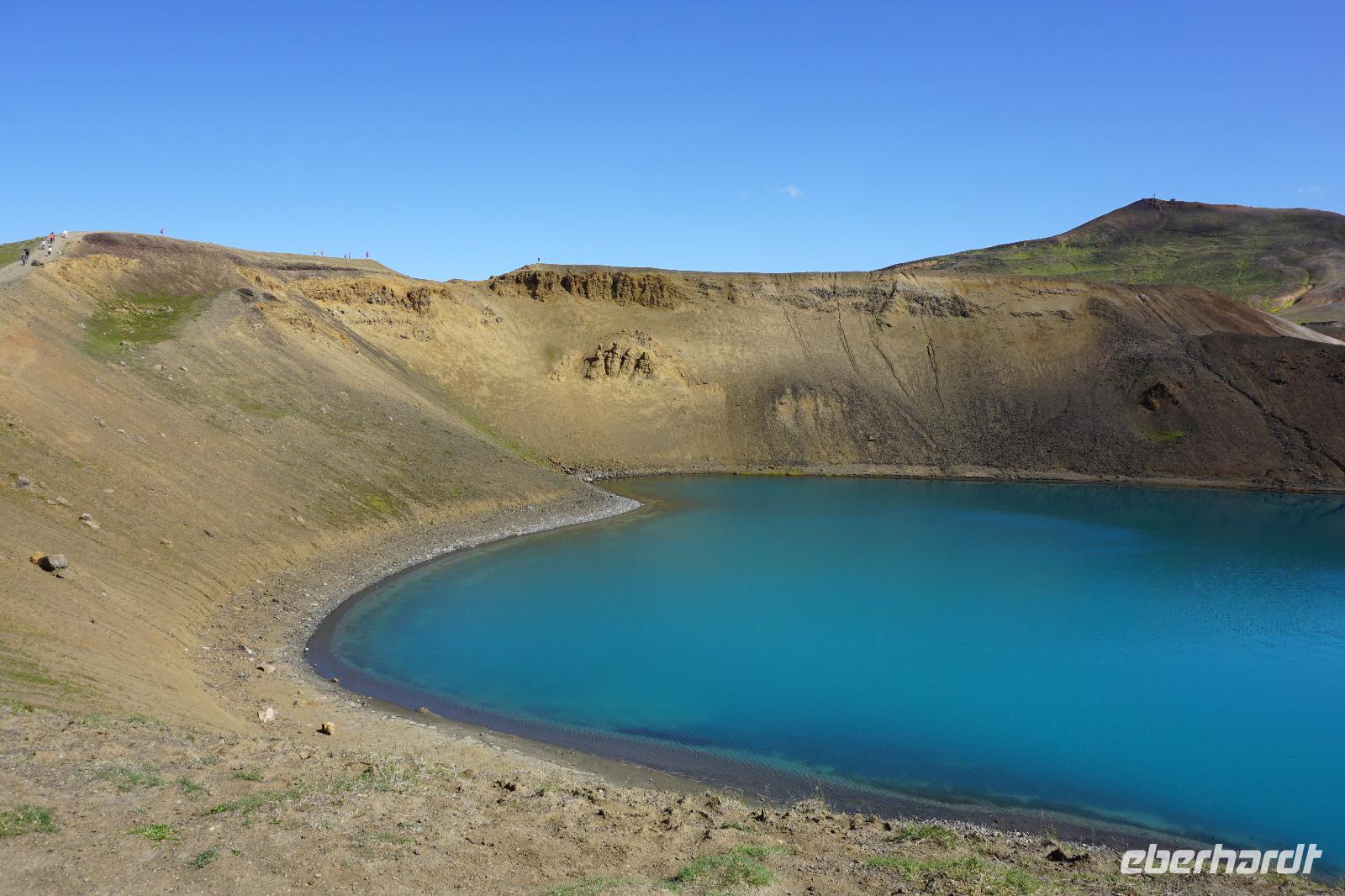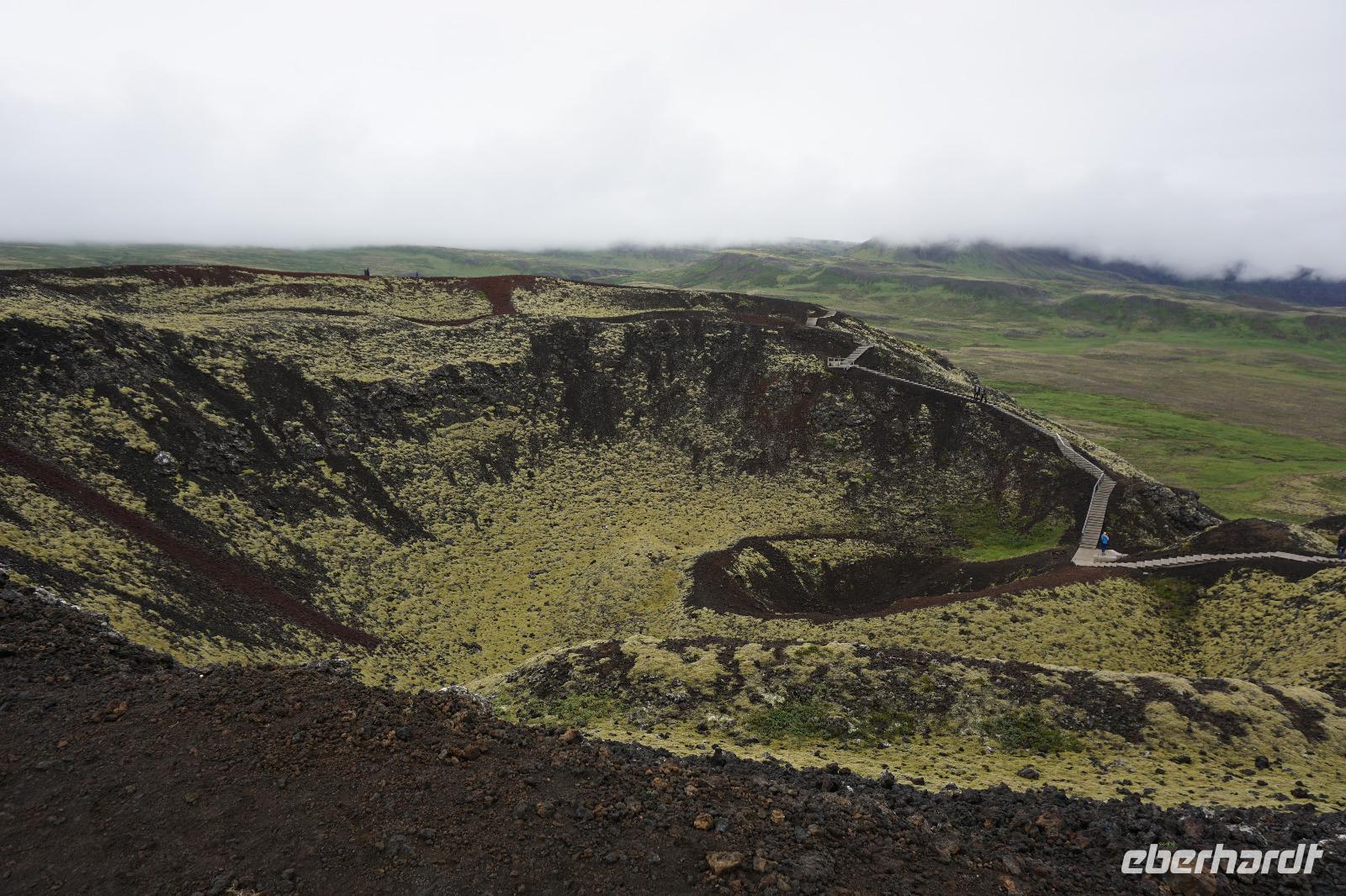 Heute fuhren wir zuerst zum Myvatn - dem Mückensee. Dort machten wir einen kleinen Spaziergang. Mit den Mücken hielt es aber sich zum Glück in Grenzen. Diese sind im Juli nicht ganz so aktiv wie im Juni oder August. Bei unserem Spaziergang konnten wir viele Pseudokrater bewundern und eine kleine Schafherde beobachten, die sich in den Schatten eines Heuballens zur Ruhe gelegt hatte. Anschließend fuhren wir in das Naturschutzgebiet Dimmuborgir, wo wir viele bizarre Steinsformationen sehen konnten. Es handelt sich hierbei um ein Lavafeld und die Überreste eines Lavasees. Danach ging es weiter nach Jarbödin, wo die Möglichkeit bestand ein Bad in den heißen Quellen zu nehmen und in vielen gesunden Mineralien zu entspannen. Nach dem Mittag setzten wir unseren Weg zum Hochtemperaturgebiet Namaskard fort. Dort gab es viele farbenprächtige Gesteine, Schlammquellen und Solfatoren zu bestauen. Allerdings liegt auch der Geruch von faulen Eiern in der Luft. Am Krafla machten wir später auch noch einen kleinen Fotostopp. Unser nächstes Ziel war der kraftvolle Wasserfall Dettifoss. Hier stürzen gewaltige Mengen grauen Wassers über eine rund hundert Meter breite Stufe. Ein Stück weiter oben konnte man auch den um einiges kleineren Wasserfall Selfoss sehen. Anschließend fuhren wir zu unserem nächsten Übernachtungsort - Egilsstadir. Die Stadt entwickelte sich erst vor ca. sechzig Jahren aus einem Großgehöft.