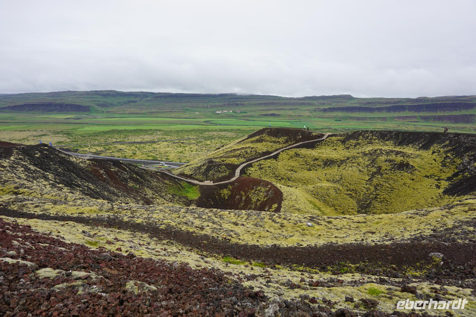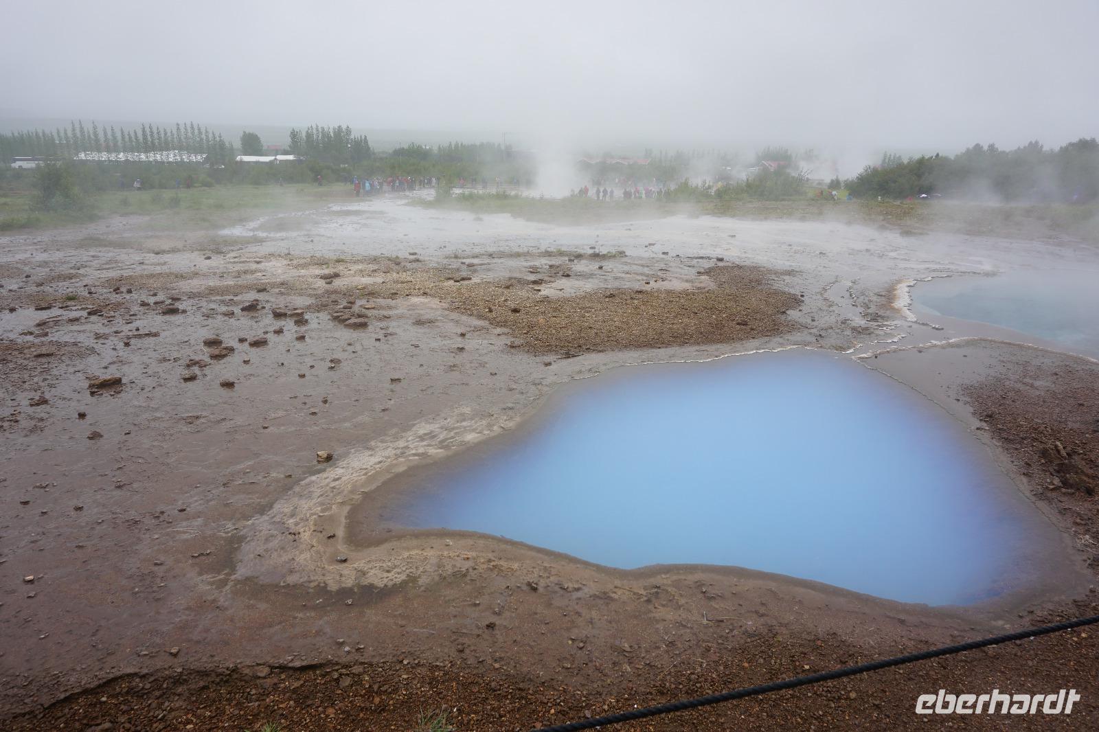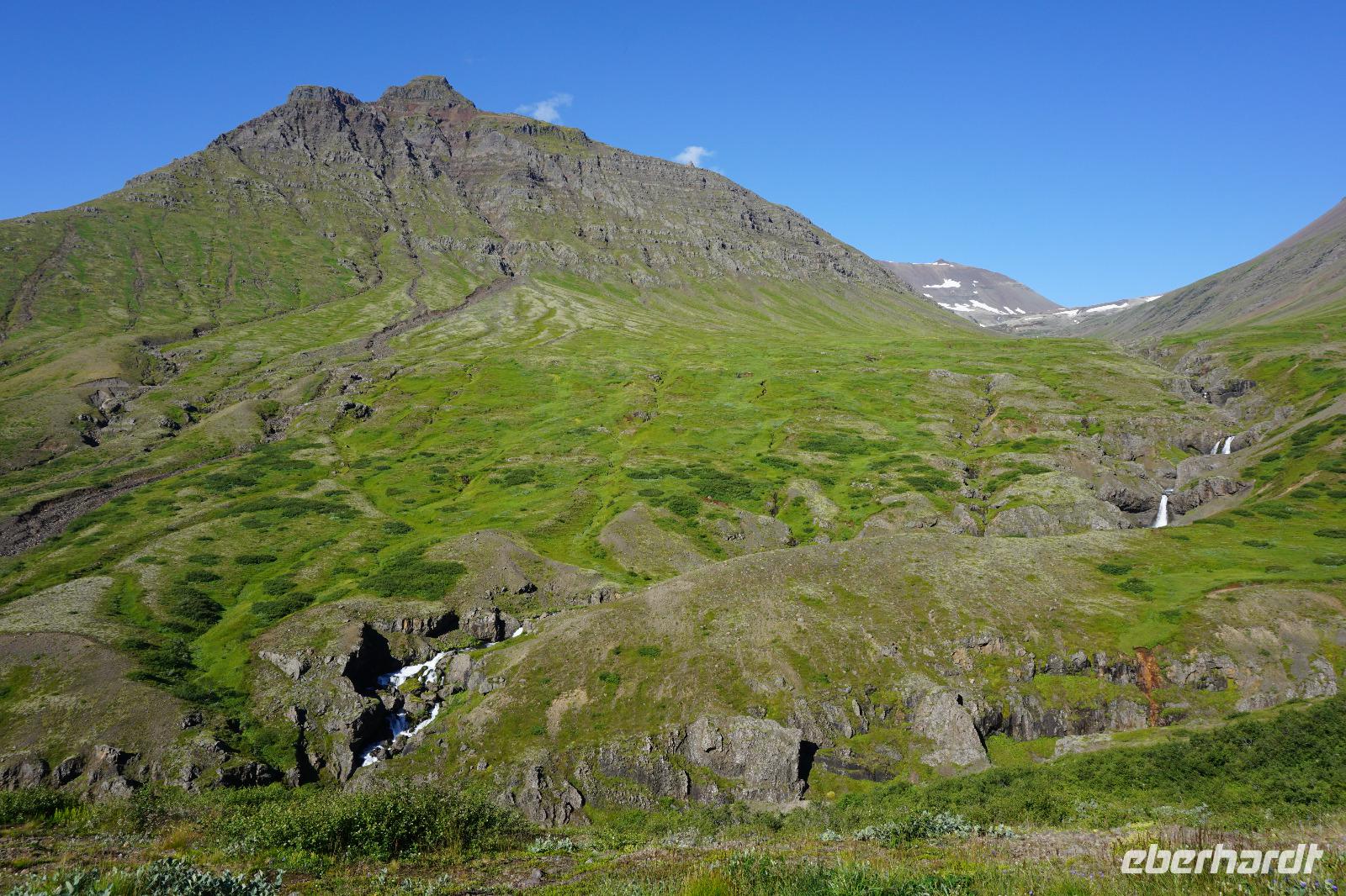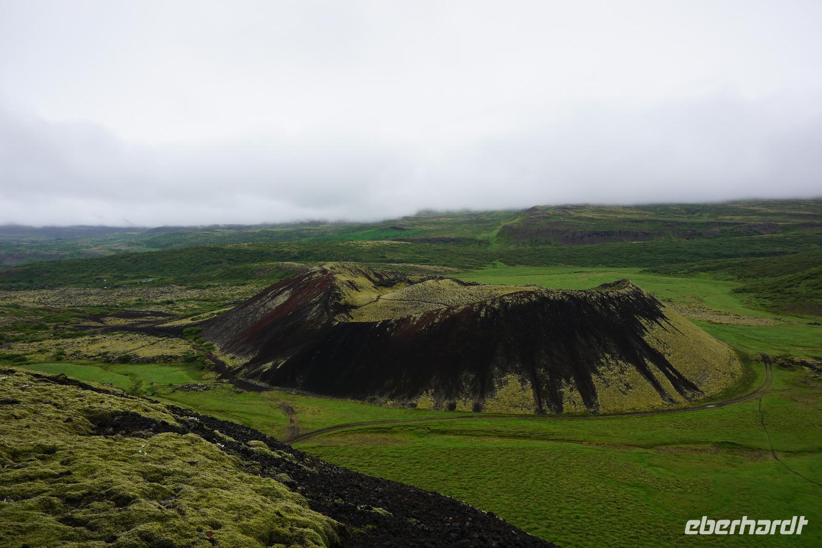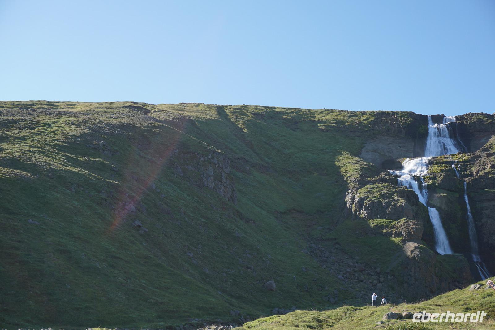 Heute fuhren wir zuerst zum Myvatn - dem Mückensee. Dort machten wir einen kleinen Spaziergang. Mit den Mücken hielt es aber sich zum Glück in Grenzen. Diese sind im Juli nicht ganz so aktiv wie im Juni oder August. Bei unserem Spaziergang konnten wir viele Pseudokrater bewundern und eine kleine Schafherde beobachten, die sich in den Schatten eines Heuballens zur Ruhe gelegt hatte. Anschließend fuhren wir in das Naturschutzgebiet Dimmuborgir, wo wir viele bizarre Steinsformationen sehen konnten. Es handelt sich hierbei um ein Lavafeld und die Überreste eines Lavasees. Danach ging es weiter nach Jarbödin, wo die Möglichkeit bestand ein Bad in den heißen Quellen zu nehmen und in vielen gesunden Mineralien zu entspannen. Nach dem Mittag setzten wir unseren Weg zum Hochtemperaturgebiet Namaskard fort. Dort gab es viele farbenprächtige Gesteine, Schlammquellen und Solfatoren zu bestauen. Allerdings liegt auch der Geruch von faulen Eiern in der Luft. Am Krafla machten wir später auch noch einen kleinen Fotostopp. Unser nächstes Ziel war der kraftvolle Wasserfall Dettifoss. Hier stürzen gewaltige Mengen grauen Wassers über eine rund hundert Meter breite Stufe. Ein Stück weiter oben konnte man auch den um einiges kleineren Wasserfall Selfoss sehen. Anschließend fuhren wir zu unserem nächsten Übernachtungsort - Egilsstadir. Die Stadt entwickelte sich erst vor ca. sechzig Jahren aus einem Großgehöft.