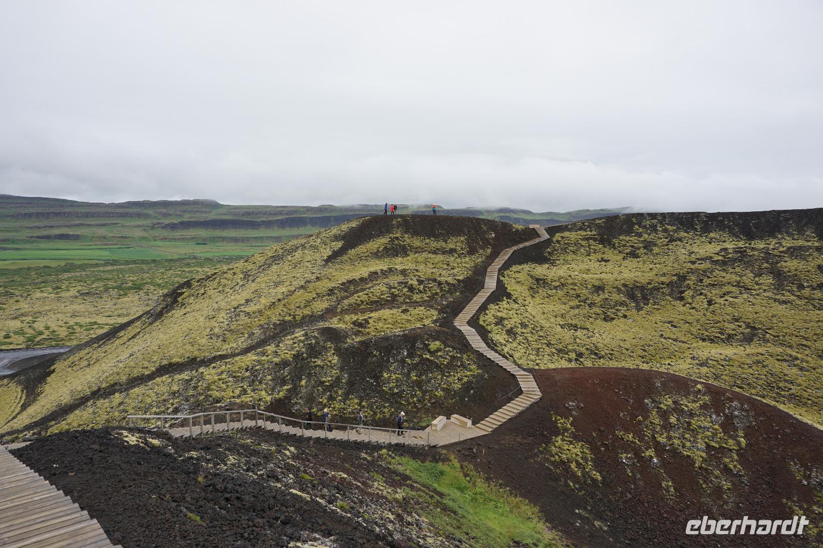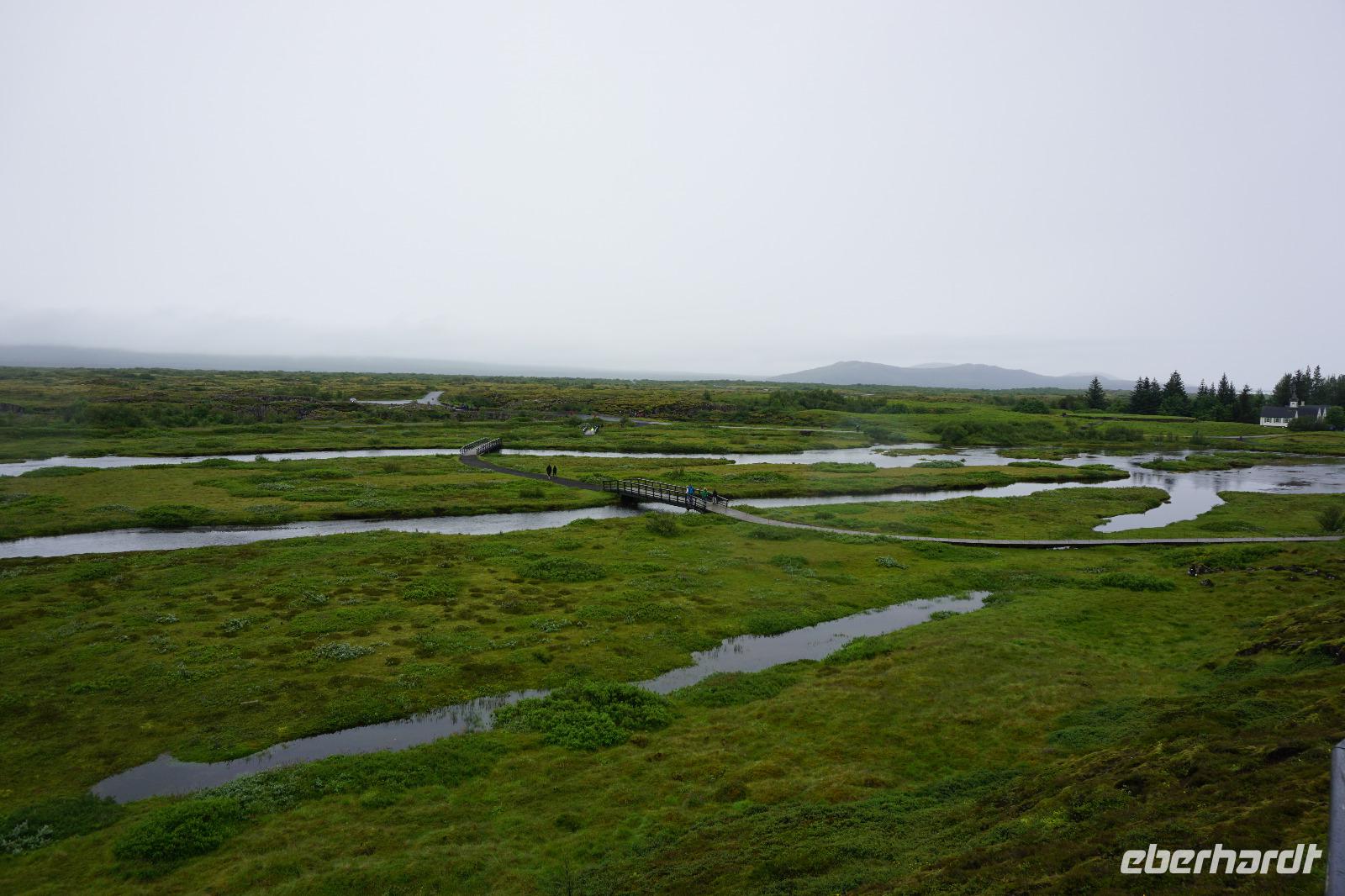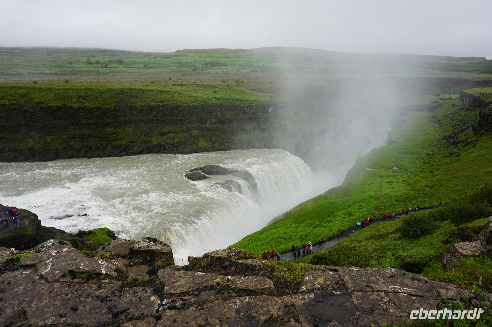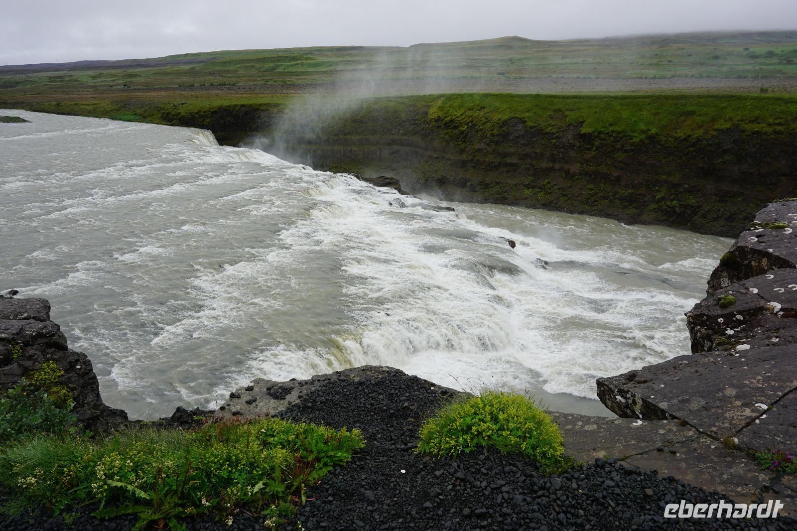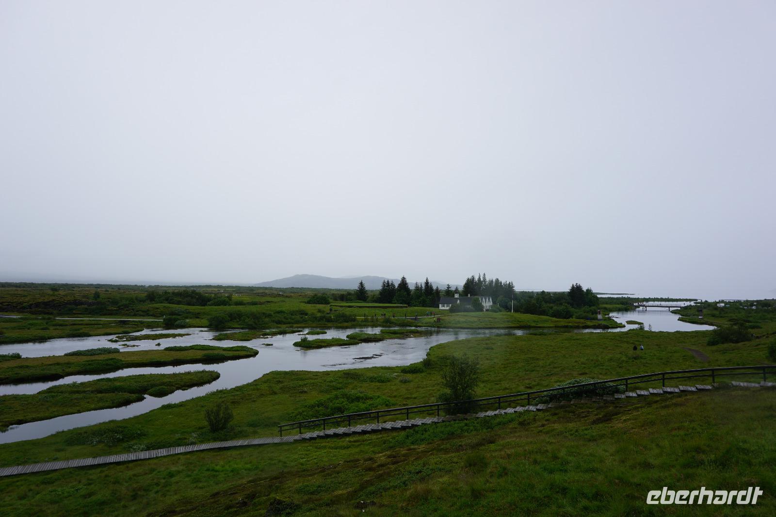 Heute fuhren wir zuerst zum Myvatn - dem Mückensee. Dort machten wir einen kleinen Spaziergang. Mit den Mücken hielt es aber sich zum Glück in Grenzen. Diese sind im Juli nicht ganz so aktiv wie im Juni oder August. Bei unserem Spaziergang konnten wir viele Pseudokrater bewundern und eine kleine Schafherde beobachten, die sich in den Schatten eines Heuballens zur Ruhe gelegt hatte. Anschließend fuhren wir in das Naturschutzgebiet Dimmuborgir, wo wir viele bizarre Steinsformationen sehen konnten. Es handelt sich hierbei um ein Lavafeld und die Überreste eines Lavasees. Danach ging es weiter nach Jarbödin, wo die Möglichkeit bestand ein Bad in den heißen Quellen zu nehmen und in vielen gesunden Mineralien zu entspannen. Nach dem Mittag setzten wir unseren Weg zum Hochtemperaturgebiet Namaskard fort. Dort gab es viele farbenprächtige Gesteine, Schlammquellen und Solfatoren zu bestauen. Allerdings liegt auch der Geruch von faulen Eiern in der Luft. Am Krafla machten wir später auch noch einen kleinen Fotostopp. Unser nächstes Ziel war der kraftvolle Wasserfall Dettifoss. Hier stürzen gewaltige Mengen grauen Wassers über eine rund hundert Meter breite Stufe. Ein Stück weiter oben konnte man auch den um einiges kleineren Wasserfall Selfoss sehen. Anschließend fuhren wir zu unserem nächsten Übernachtungsort - Egilsstadir. Die Stadt entwickelte sich erst vor ca. sechzig Jahren aus einem Großgehöft.
