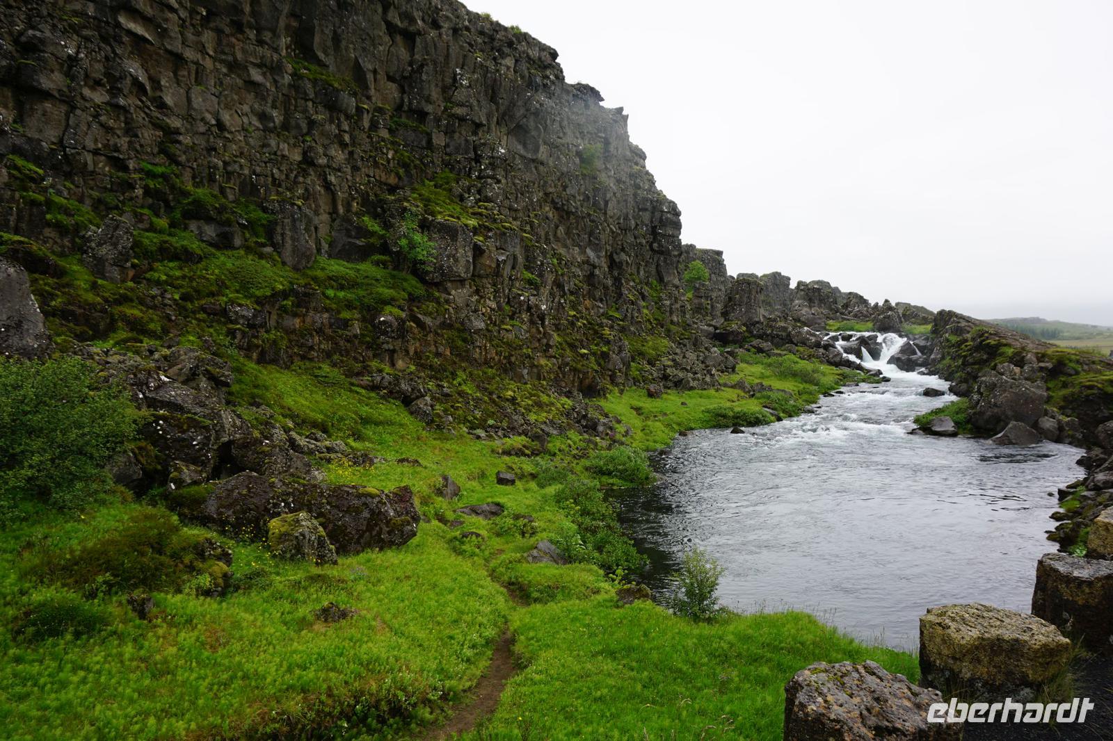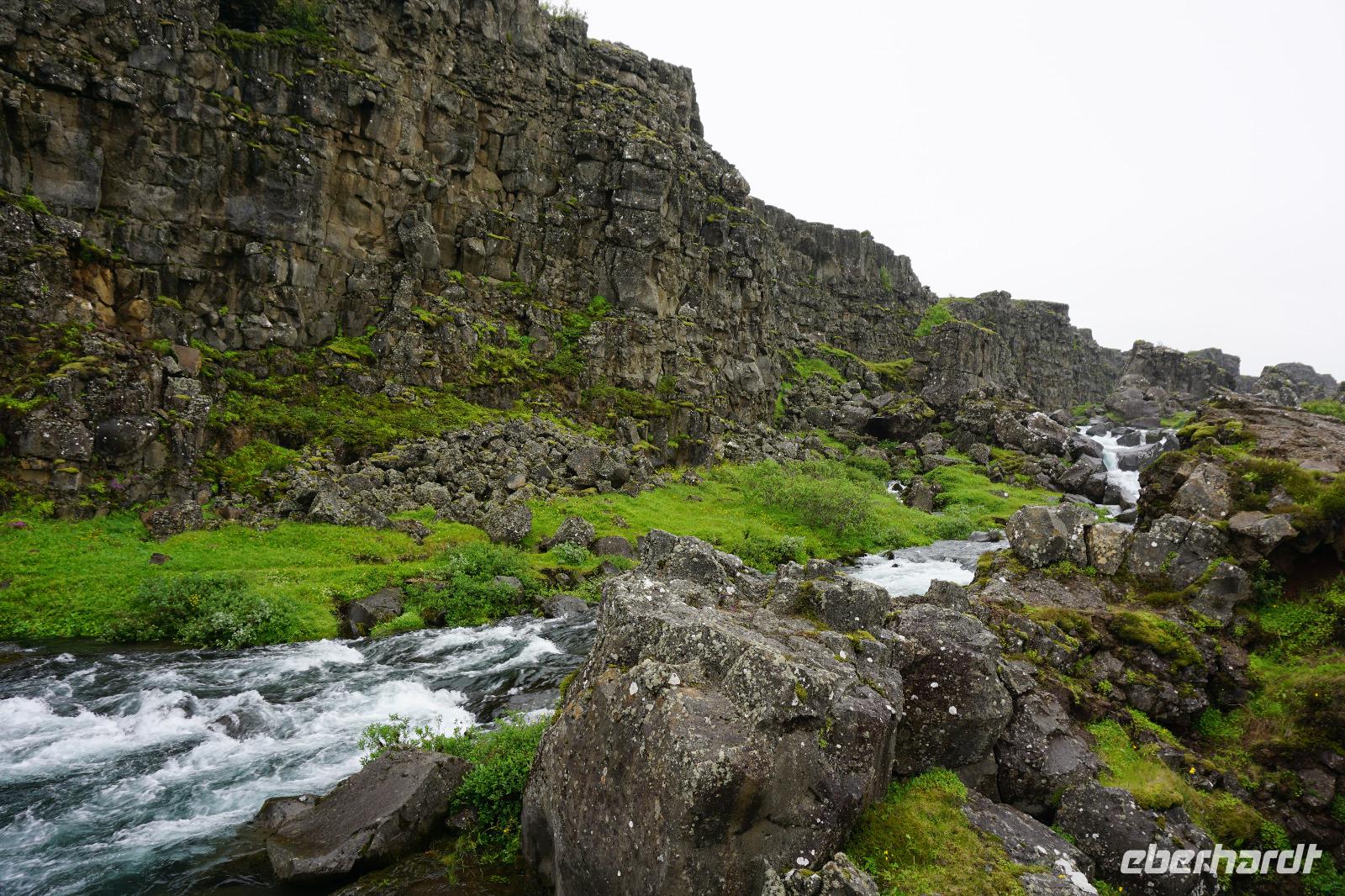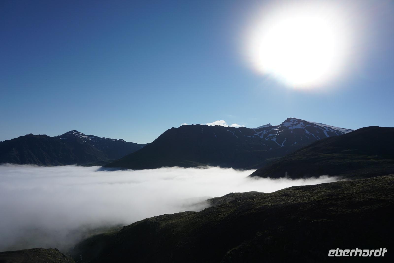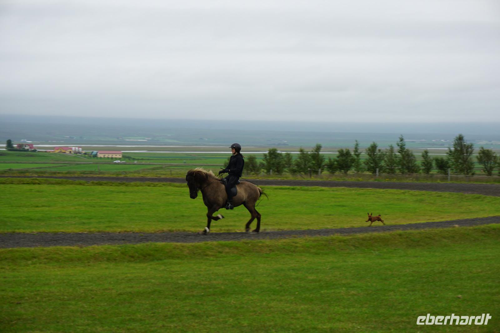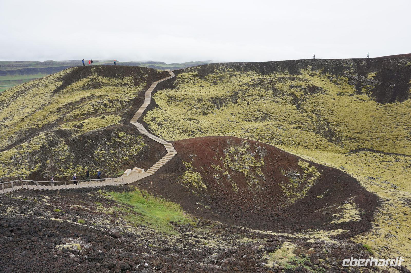 Heute fuhren wir zuerst zum Myvatn - dem Mückensee. Dort machten wir einen kleinen Spaziergang. Mit den Mücken hielt es aber sich zum Glück in Grenzen. Diese sind im Juli nicht ganz so aktiv wie im Juni oder August. Bei unserem Spaziergang konnten wir viele Pseudokrater bewundern und eine kleine Schafherde beobachten, die sich in den Schatten eines Heuballens zur Ruhe gelegt hatte. Anschließend fuhren wir in das Naturschutzgebiet Dimmuborgir, wo wir viele bizarre Steinsformationen sehen konnten. Es handelt sich hierbei um ein Lavafeld und die Überreste eines Lavasees. Danach ging es weiter nach Jarbödin, wo die Möglichkeit bestand ein Bad in den heißen Quellen zu nehmen und in vielen gesunden Mineralien zu entspannen. Nach dem Mittag setzten wir unseren Weg zum Hochtemperaturgebiet Namaskard fort. Dort gab es viele farbenprächtige Gesteine, Schlammquellen und Solfatoren zu bestauen. Allerdings liegt auch der Geruch von faulen Eiern in der Luft. Am Krafla machten wir später auch noch einen kleinen Fotostopp. Unser nächstes Ziel war der kraftvolle Wasserfall Dettifoss. Hier stürzen gewaltige Mengen grauen Wassers über eine rund hundert Meter breite Stufe. Ein Stück weiter oben konnte man auch den um einiges kleineren Wasserfall Selfoss sehen. Anschließend fuhren wir zu unserem nächsten Übernachtungsort - Egilsstadir. Die Stadt entwickelte sich erst vor ca. sechzig Jahren aus einem Großgehöft.