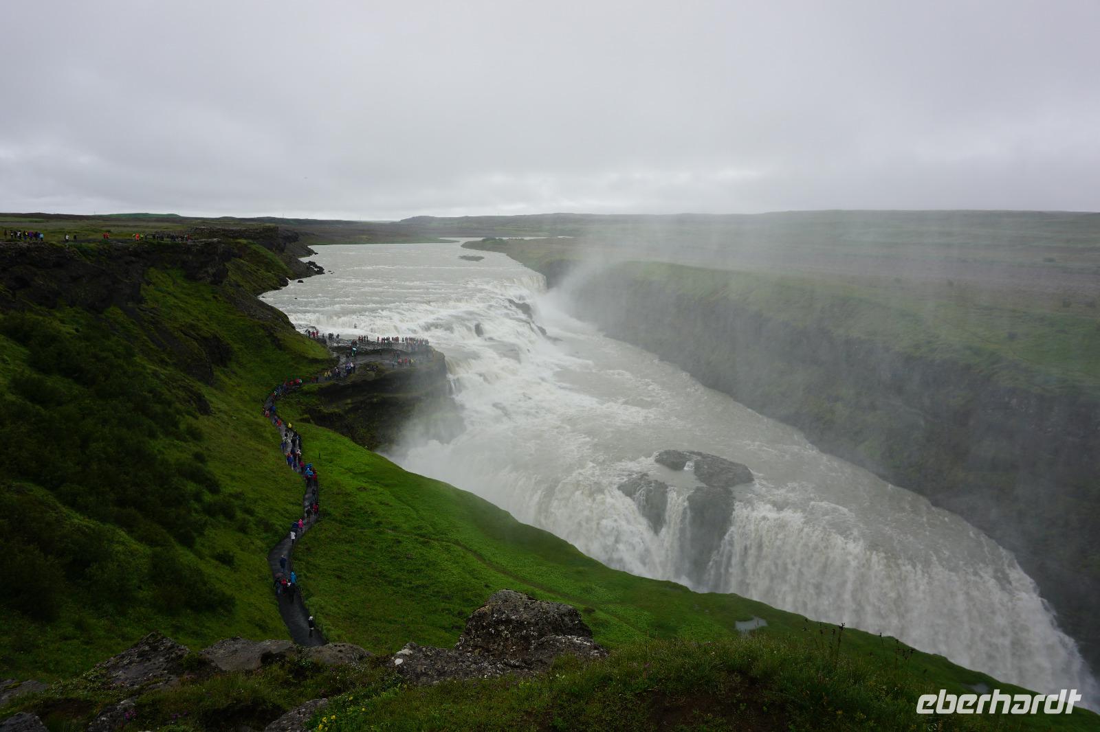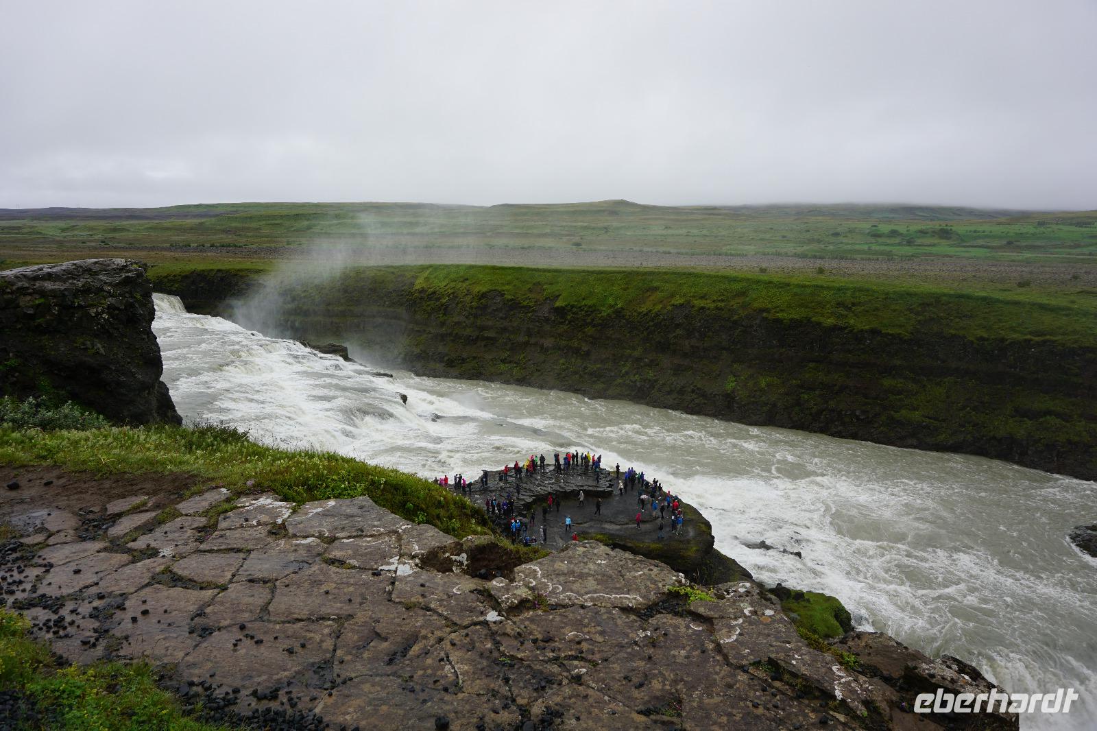 Nach dem Frühstück machten wir eine kleine Stadtrundfahrt durch die Hauptstadt Islands, die auf der Halbinsel Reykjanes liegt. Sie wird auch Rauchhalbinsel genannt. Auch heute war es trüb und regnerisch. Bei der Stadtrundfahrt sahen wir unter anderem das Höfdi-Haus, wo 1986 die ersten Gespräche zu den Abrüstungsverhandlungen zwischen Gorbatschow und Reagan geführt wurden. Auch Solfar - das Sonnenschiff , Hallgrimskirkja und das Rathaus waren dabei. Anschließend fuhren wir weiter ins Hochtemperaturgebiet Haukadalur, wo wir vom in die Höhe schießenden Geysir Strokkur begrüßt wurden. Dieser bricht in zehn Minuten durchschnittlich zwei Mal aus, sodass wir dieses Naturschauspiel mehrmals bestaunen konnten. Das Wasser ist in Haukadalur teilweise bis zu 100 °C heiß. Danach fuhren wir zum beeindruckenden Wasserfall Gullfoss, wo über zwei gegeneinander versetzte Fallstufen die Wassermassen runter stürzten. Dort machten wir auch unsere Mittagspause. Am Nachmittag fuhren wir nach Thingvellir, wo im Jahr 930 das erste demokratische Parlament der Welt ausgerufen wurde. Bei einem Spaziergang durch den Nationalpark erzählte uns Gunnar etwas über diesen. Nirgendwo sonst auf der Erde ist das Auseinanderdriften von zwei Kontinentalplatten so offensichtlich wie hier. Danach ging es wieder zurück nach Reykjavik, wo wir unsere Stadtrundfahrt fort führten. Zum Abendessen gingen wir gemeinsam in ein kleines isländisches Restaurant. Das Essen dort war sehr lecker! Nach einem aufregenden Tag gingen wir später alle zu Bett.