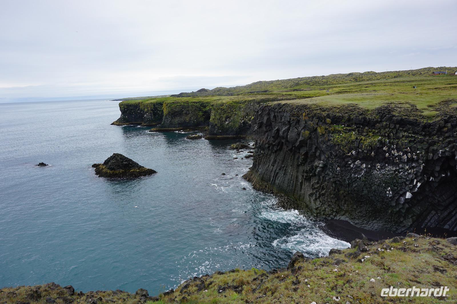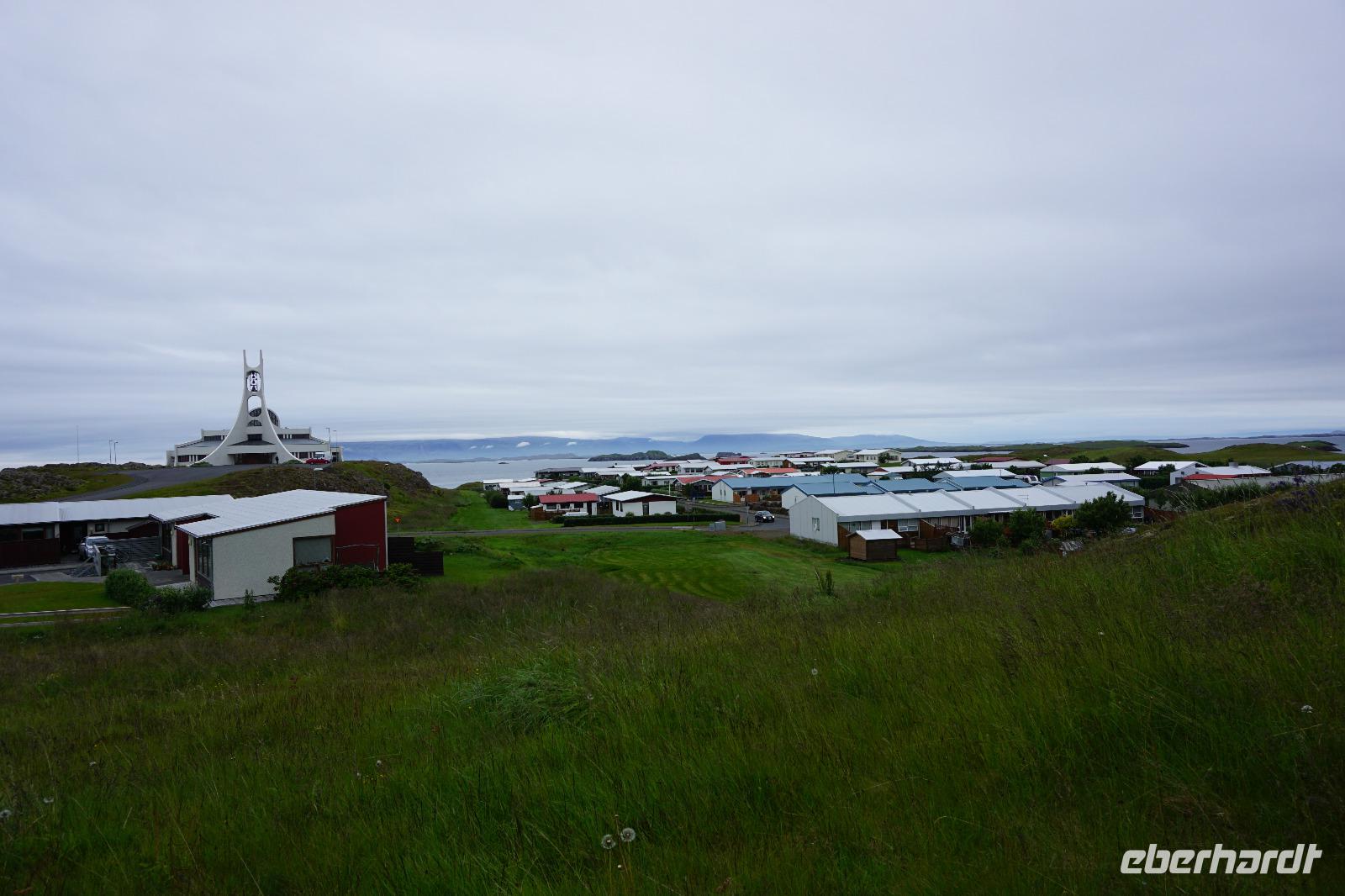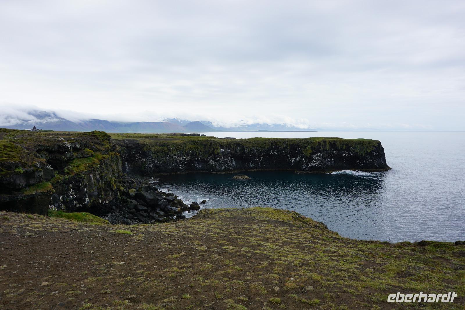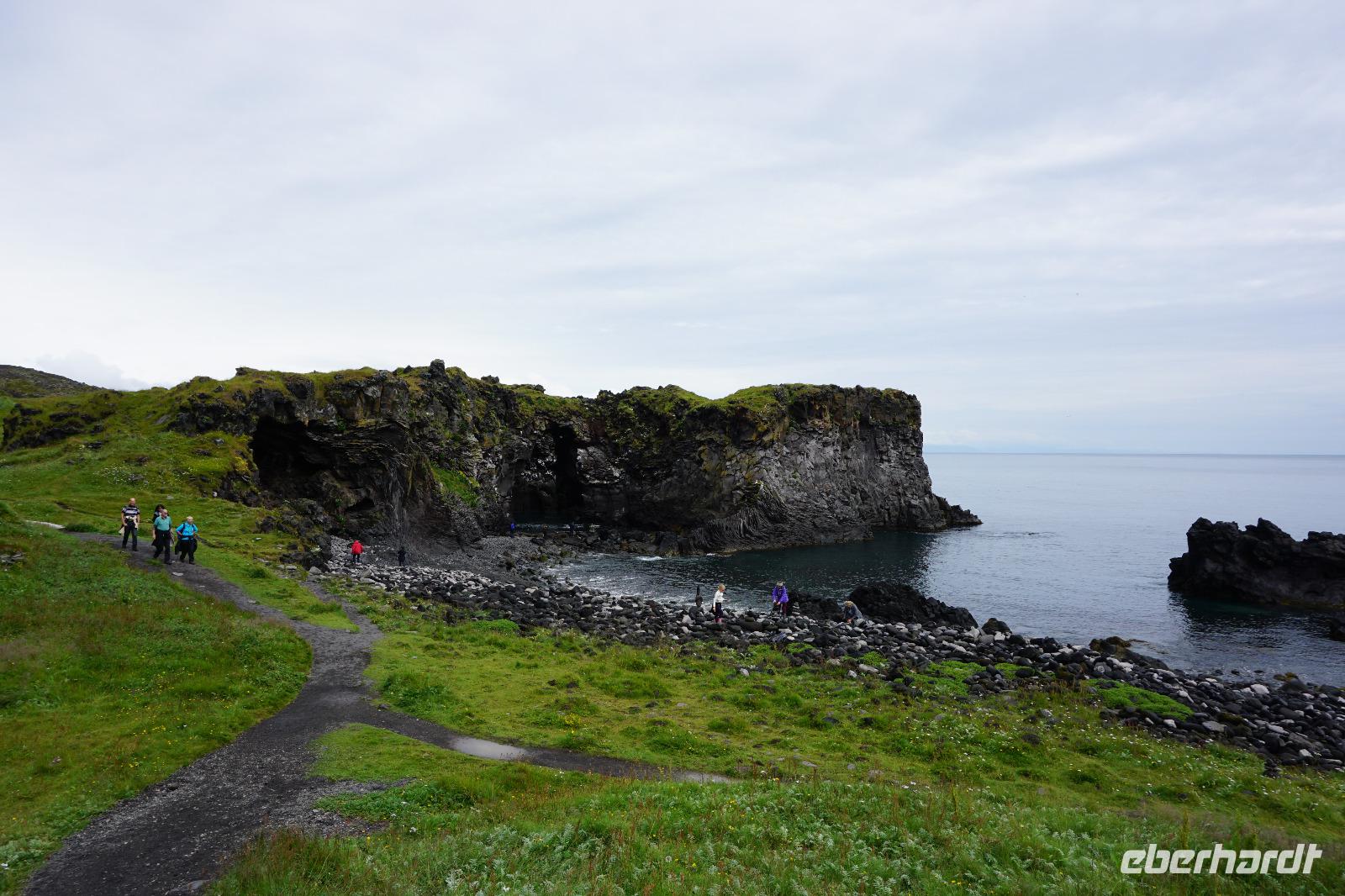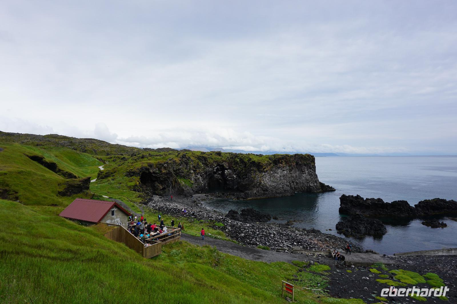 Am heutigen Tag führte uns unser Weg in den Westen der Insel. Auf der Busfahrt haben wir festgestellt, dass sich die Landschaft Islands ungefähr jede halbe Stunde verändert, sodass man eigentlich ständig neue Landschaften bestaunen konnte. Zuerst fuhren wir durch den beeindruckenden Walfjord-Tunnel, der 5.700 Meter lang ist und 3.750 Meter unter dem Meer verläuft. An einer kleinen Kirche bei Borgarnes machten wir einen kurzen Stopp, um die faszinierende Landschaft fotografieren zu können. Hier begrüßte uns das erste Mal die Sonne. Nach kurzer Fahrt erreichten wir unser nächstes Ziel. Zwischen Arnarstapi und Hellnar unternahmen wir eine Wanderung an der Küste entlang. Links und rechts des schmalen Pfads fanden wir einzigartige Natur vor - grüne Wiesen, graue Steilküsten und farbenprächtig Blumen. Unsere Mittagspause machten wir an einem kleinen Besucherzentrum. Auf dem Weg zu unserem nächsten Hotel hielten wir am Kirkjufellsfoss. Am späten Nachmittag erreichten wir Stykkisholmur, wo uns noch einige Zeit zur freien Verfügung blieb, um einen Spaziergang durch die kleine Stadt zu machen, einkaufen zu gehen oder das Schwimmbad zu besuchen. Zum Abendessen trafen wir uns alle im Hotel wieder.