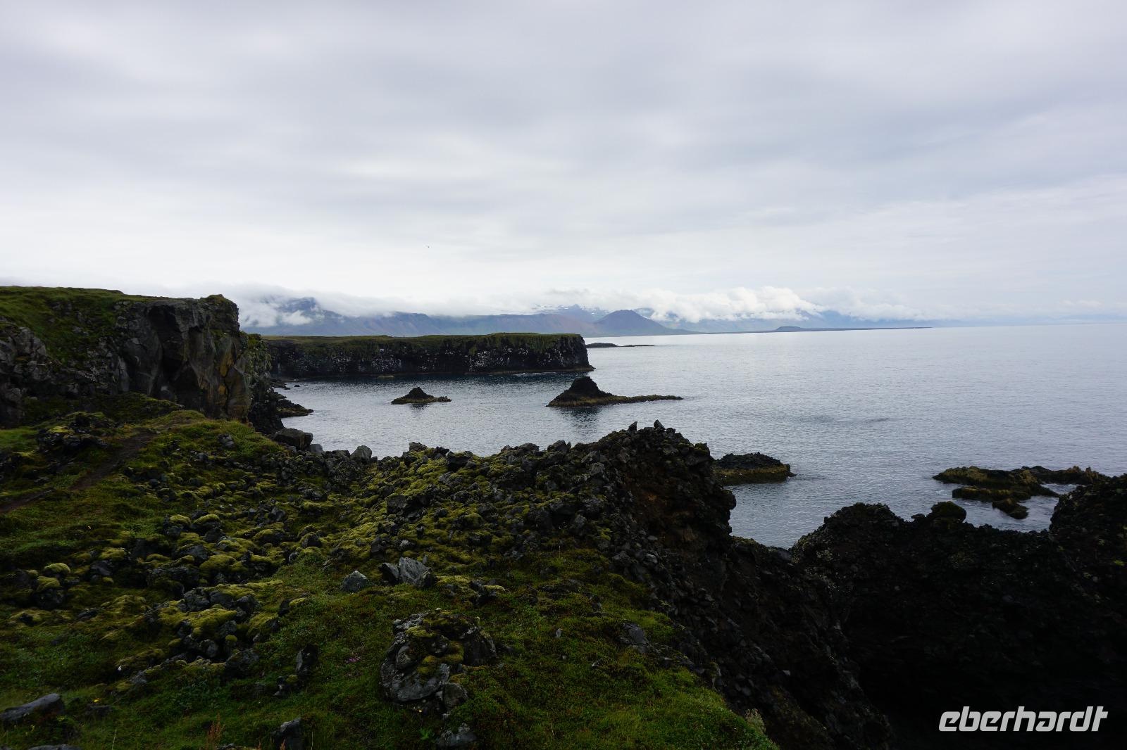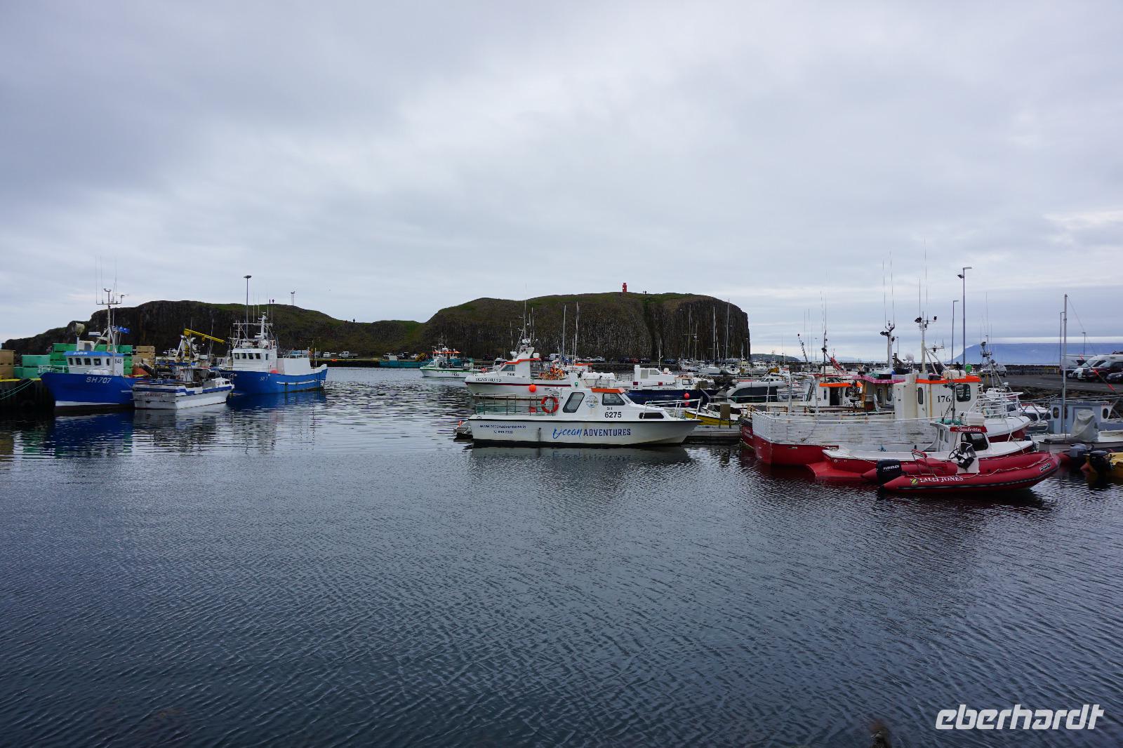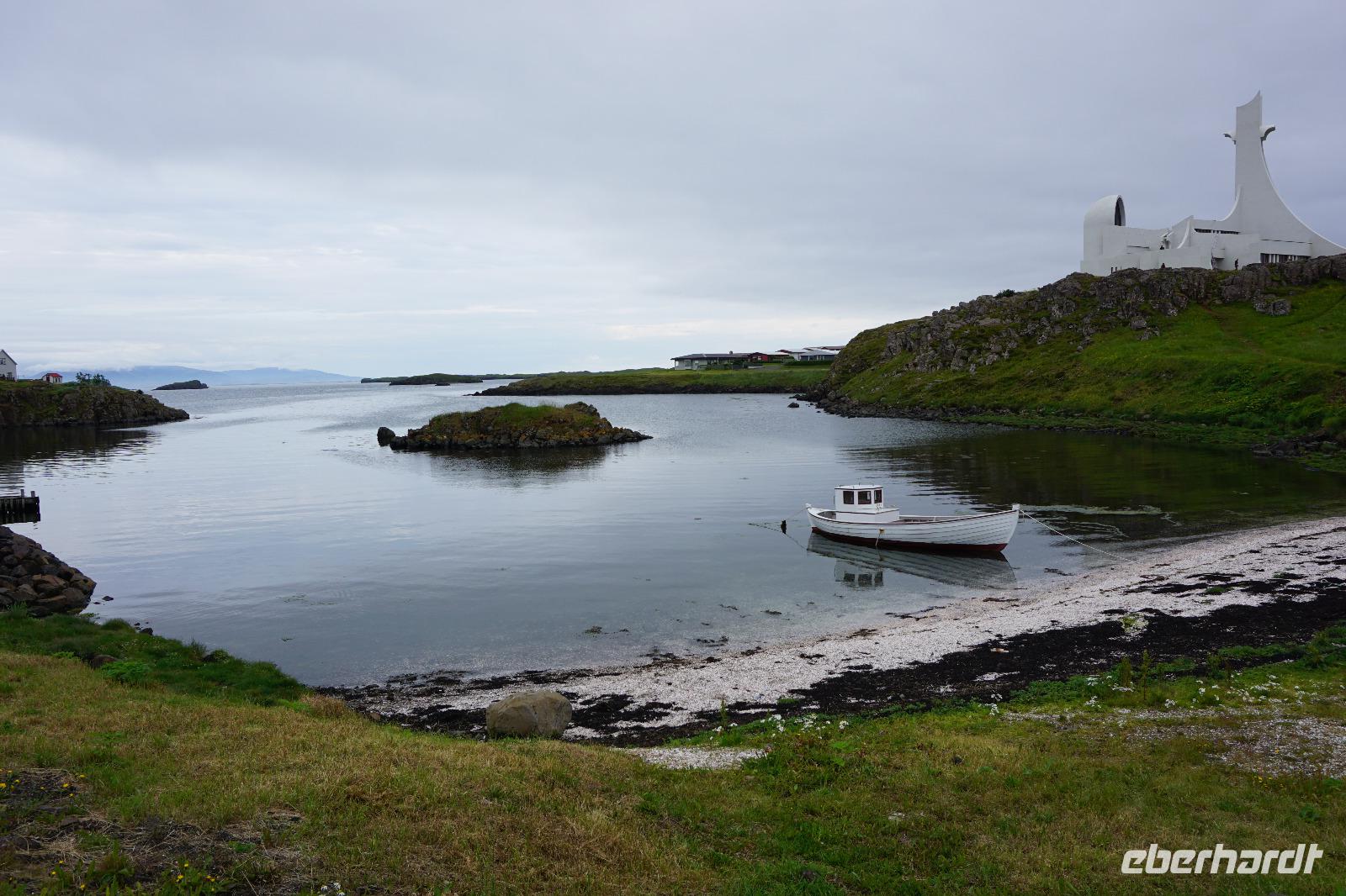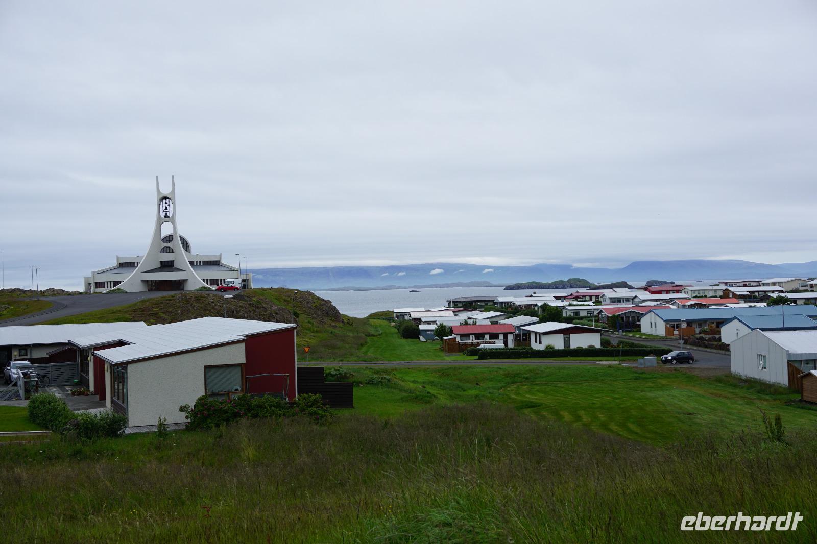 Am heutigen Tag führte uns unser Weg in den Westen der Insel. Auf der Busfahrt haben wir festgestellt, dass sich die Landschaft Islands ungefähr jede halbe Stunde verändert, sodass man eigentlich ständig neue Landschaften bestaunen konnte. Zuerst fuhren wir durch den beeindruckenden Walfjord-Tunnel, der 5.700 Meter lang ist und 3.750 Meter unter dem Meer verläuft. An einer kleinen Kirche bei Borgarnes machten wir einen kurzen Stopp, um die faszinierende Landschaft fotografieren zu können. Hier begrüßte uns das erste Mal die Sonne. Nach kurzer Fahrt erreichten wir unser nächstes Ziel. Zwischen Arnarstapi und Hellnar unternahmen wir eine Wanderung an der Küste entlang. Links und rechts des schmalen Pfads fanden wir einzigartige Natur vor - grüne Wiesen, graue Steilküsten und farbenprächtig Blumen. Unsere Mittagspause machten wir an einem kleinen Besucherzentrum. Auf dem Weg zu unserem nächsten Hotel hielten wir am Kirkjufellsfoss. Am späten Nachmittag erreichten wir Stykkisholmur, wo uns noch einige Zeit zur freien Verfügung blieb, um einen Spaziergang durch die kleine Stadt zu machen, einkaufen zu gehen oder das Schwimmbad zu besuchen. Zum Abendessen trafen wir uns alle im Hotel wieder.