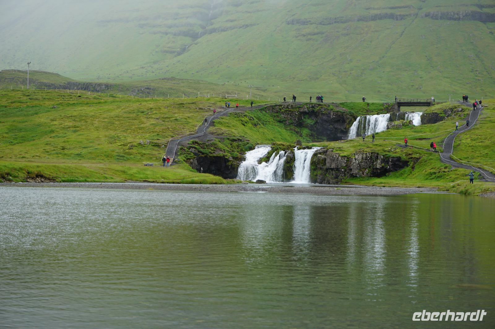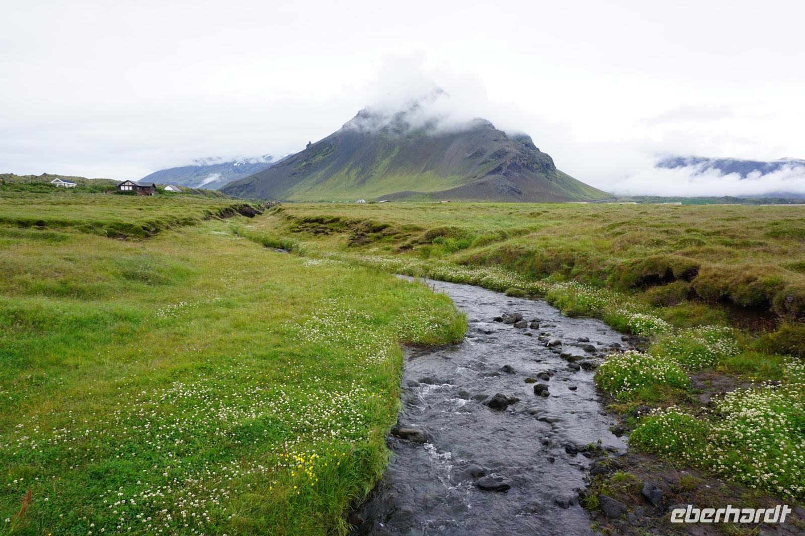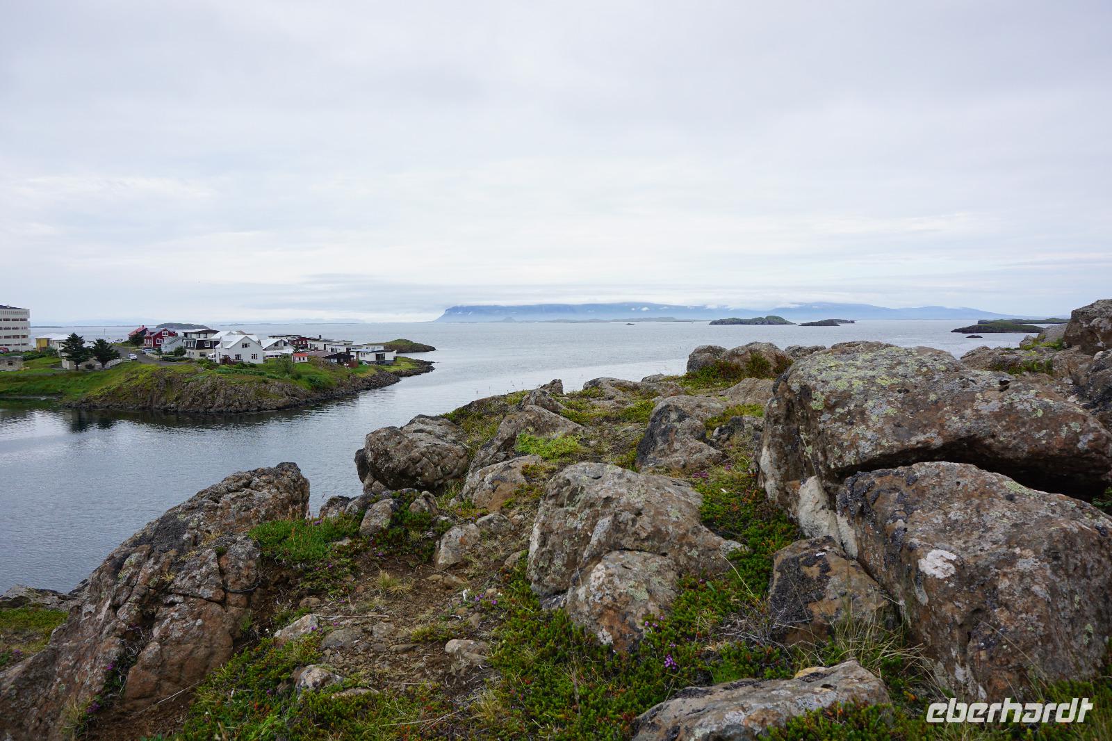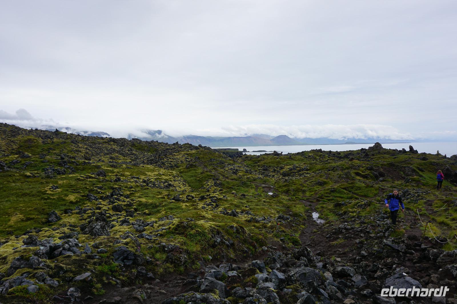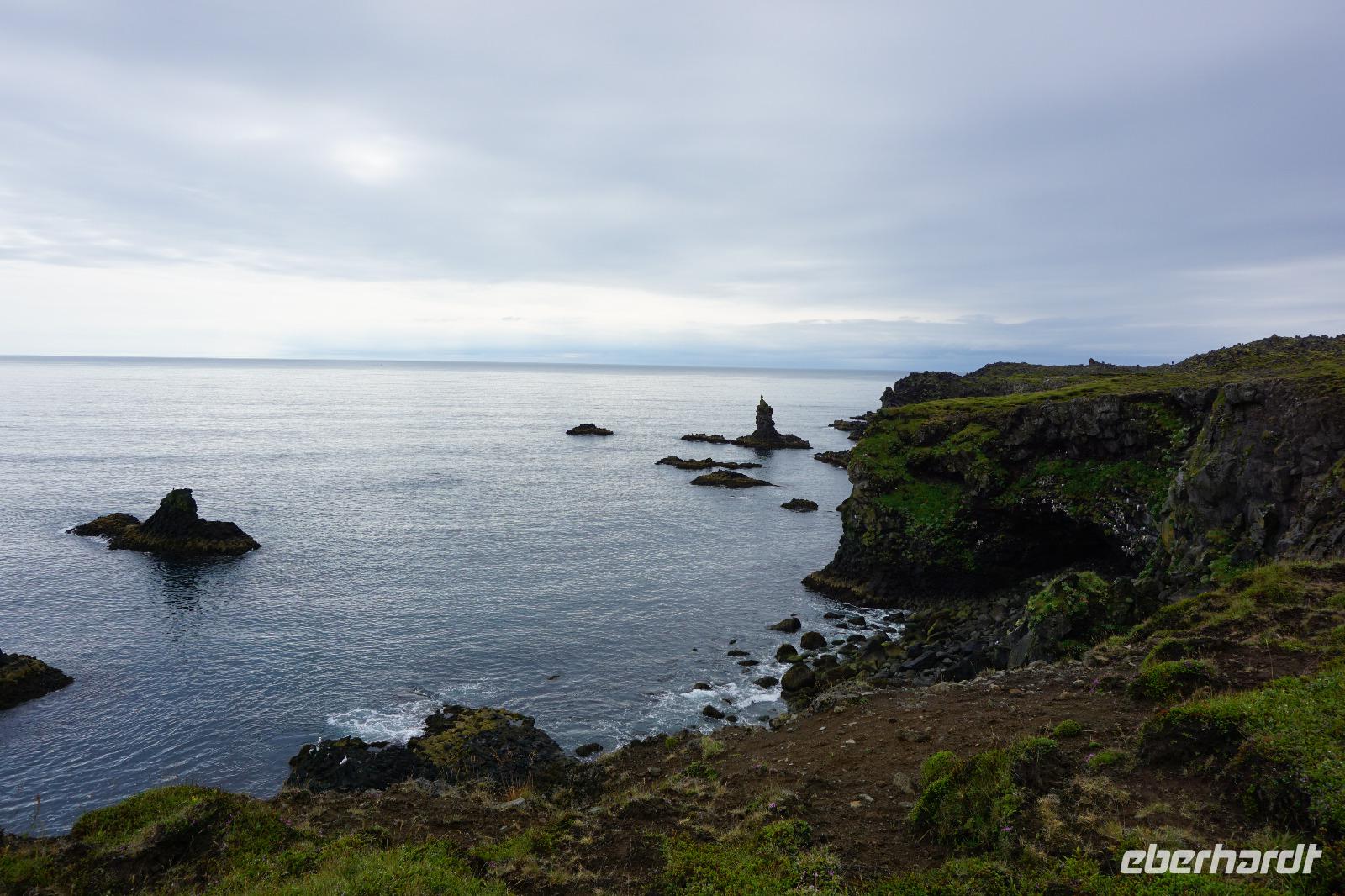 Am heutigen Tag führte uns unser Weg in den Westen der Insel. Auf der Busfahrt haben wir festgestellt, dass sich die Landschaft Islands ungefähr jede halbe Stunde verändert, sodass man eigentlich ständig neue Landschaften bestaunen konnte. Zuerst fuhren wir durch den beeindruckenden Walfjord-Tunnel, der 5.700 Meter lang ist und 3.750 Meter unter dem Meer verläuft. An einer kleinen Kirche bei Borgarnes machten wir einen kurzen Stopp, um die faszinierende Landschaft fotografieren zu können. Hier begrüßte uns das erste Mal die Sonne. Nach kurzer Fahrt erreichten wir unser nächstes Ziel. Zwischen Arnarstapi und Hellnar unternahmen wir eine Wanderung an der Küste entlang. Links und rechts des schmalen Pfads fanden wir einzigartige Natur vor - grüne Wiesen, graue Steilküsten und farbenprächtig Blumen. Unsere Mittagspause machten wir an einem kleinen Besucherzentrum. Auf dem Weg zu unserem nächsten Hotel hielten wir am Kirkjufellsfoss. Am späten Nachmittag erreichten wir Stykkisholmur, wo uns noch einige Zeit zur freien Verfügung blieb, um einen Spaziergang durch die kleine Stadt zu machen, einkaufen zu gehen oder das Schwimmbad zu besuchen. Zum Abendessen trafen wir uns alle im Hotel wieder.