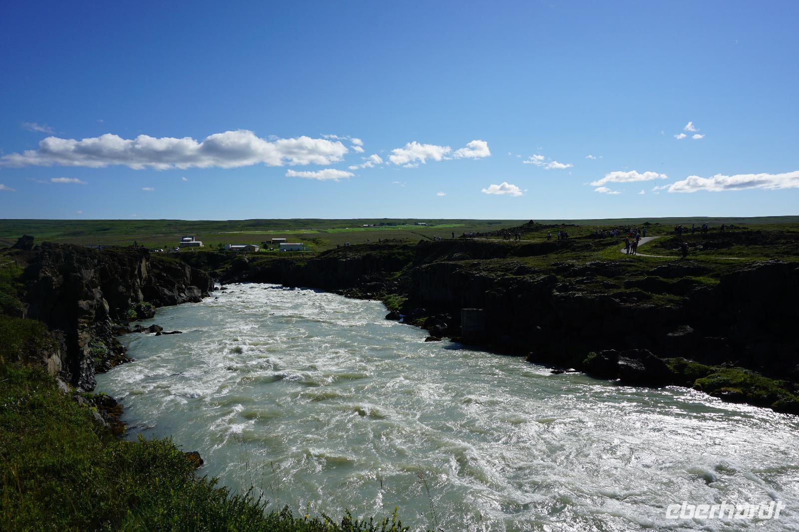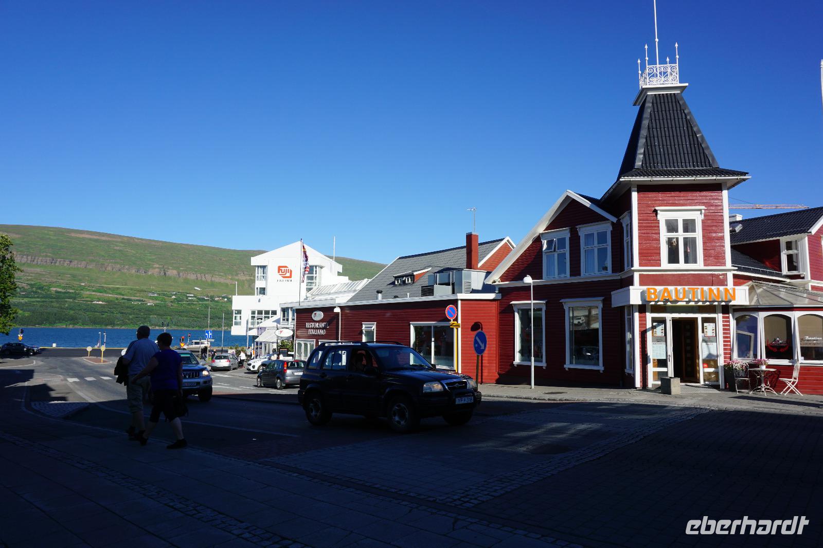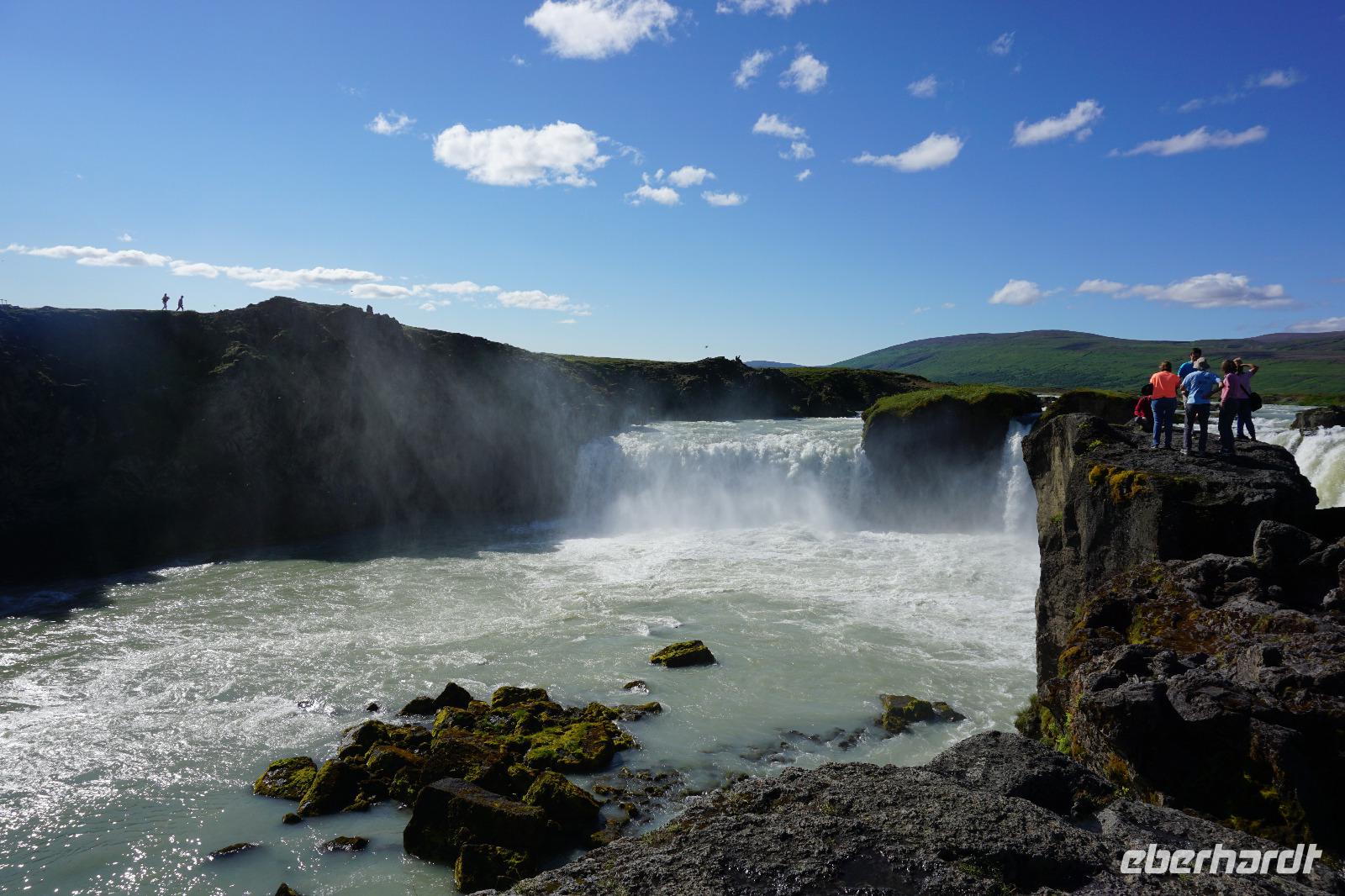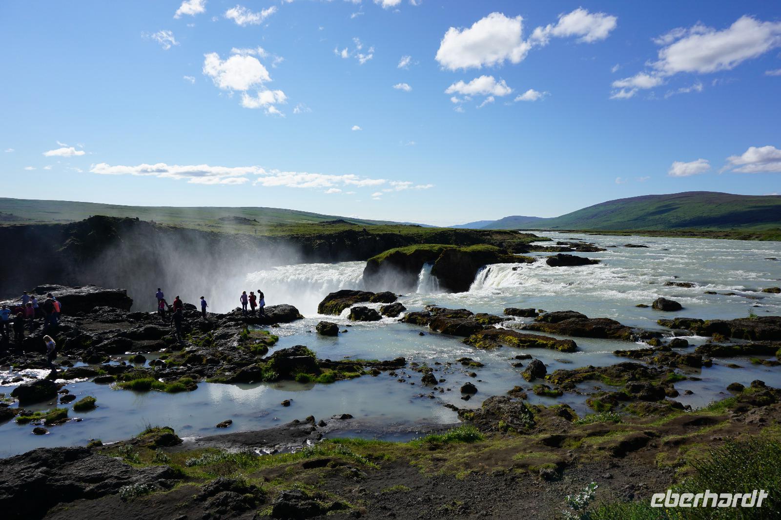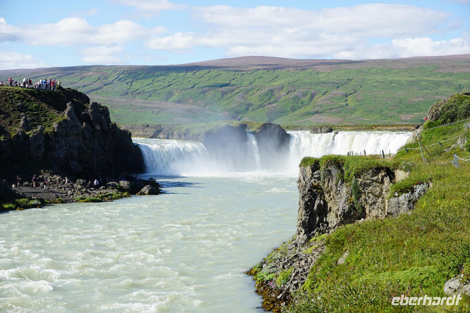 Am frühen Vormittag brachen wir in Richtung der Halbinsel Tjörnes auf. Auf dem Weg hielten wir kurz an einem Supermarkt in Husavik um für unser Picknick am Mittag einzukaufen. Unser nächstes Ziel war der beeindruckende Wasserfall Godafoss. Der „Götterfall" gehört zu den meistbesuchten Zielen Islands. Bei dem beliebten Fotomotiv hielten sich sehr viele Menschen auf uns es war fast unmöglich ein Bild ohne Menschen zu schießen. Nach einem kurzen Aufenthalt fuhren wir weiter nach Asbyrgi. Die Schlucht hat die Form eines Hufeisens und steht unter Naturschutz. Zuerst picknickten wir in der bizarren Felsenschlucht, danach spazierten wir mit Gunnar durch die Schlucht. Auf dem Rückweg hielten wir an den Vogelfelsen, wo wir auch ein paar Papageitaucher beobachten konnten. Anschließend fuhren wir wieder zurück nach Husavik, wo Zeit zum Verweilen blieb. Husavik liegt an einer sanft geschwungenen Bucht mit dunklem Sandstrand und ist die Hauptstadt der Walbeobachtung Europas. Am Nachmittag kamen wir wieder in Akureyri an, wo wir Zeit für eigene Erkundungen hatten. Im botanischen Garten direkt neben dem Hotel konnte man wunderbar spazieren gehen oder in der Einkaufsstraße bummeln und ein paar Souvenirs kaufen. Zum Abendessen kamen alle wieder zusammen und berichteten über ihre Erlebnisse in Akureyri.
