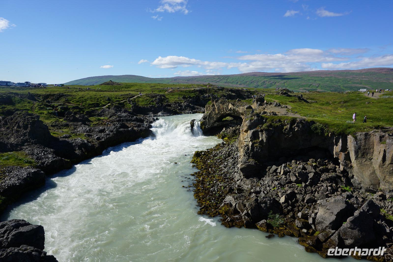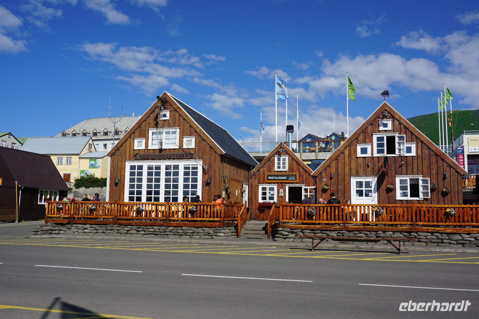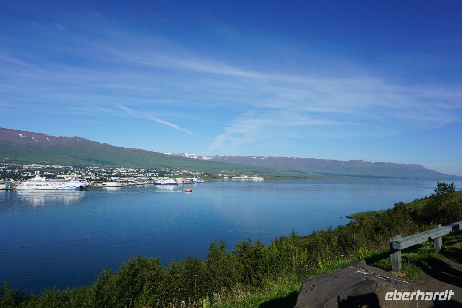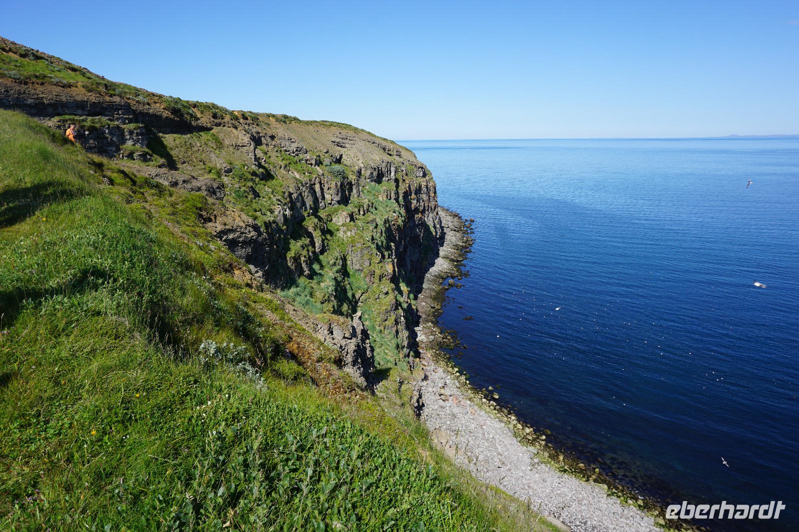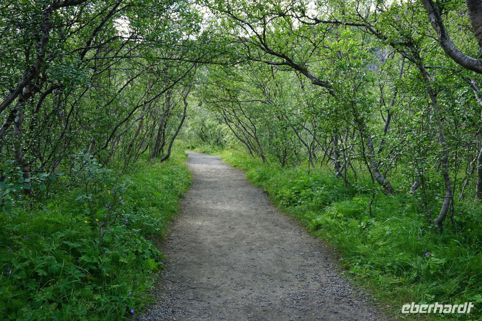 Am frühen Vormittag brachen wir in Richtung der Halbinsel Tjörnes auf. Auf dem Weg hielten wir kurz an einem Supermarkt in Husavik um für unser Picknick am Mittag einzukaufen. Unser nächstes Ziel war der beeindruckende Wasserfall Godafoss. Der „Götterfall" gehört zu den meistbesuchten Zielen Islands. Bei dem beliebten Fotomotiv hielten sich sehr viele Menschen auf uns es war fast unmöglich ein Bild ohne Menschen zu schießen. Nach einem kurzen Aufenthalt fuhren wir weiter nach Asbyrgi. Die Schlucht hat die Form eines Hufeisens und steht unter Naturschutz. Zuerst picknickten wir in der bizarren Felsenschlucht, danach spazierten wir mit Gunnar durch die Schlucht. Auf dem Rückweg hielten wir an den Vogelfelsen, wo wir auch ein paar Papageitaucher beobachten konnten. Anschließend fuhren wir wieder zurück nach Husavik, wo Zeit zum Verweilen blieb. Husavik liegt an einer sanft geschwungenen Bucht mit dunklem Sandstrand und ist die Hauptstadt der Walbeobachtung Europas. Am Nachmittag kamen wir wieder in Akureyri an, wo wir Zeit für eigene Erkundungen hatten. Im botanischen Garten direkt neben dem Hotel konnte man wunderbar spazieren gehen oder in der Einkaufsstraße bummeln und ein paar Souvenirs kaufen. Zum Abendessen kamen alle wieder zusammen und berichteten über ihre Erlebnisse in Akureyri.