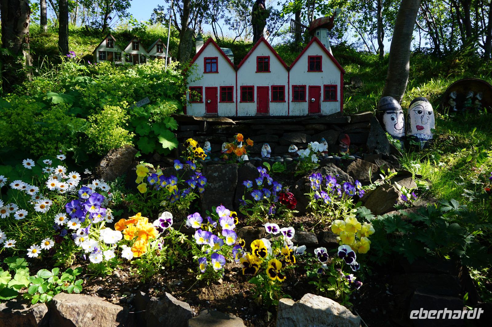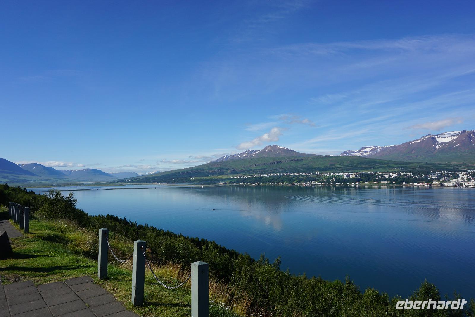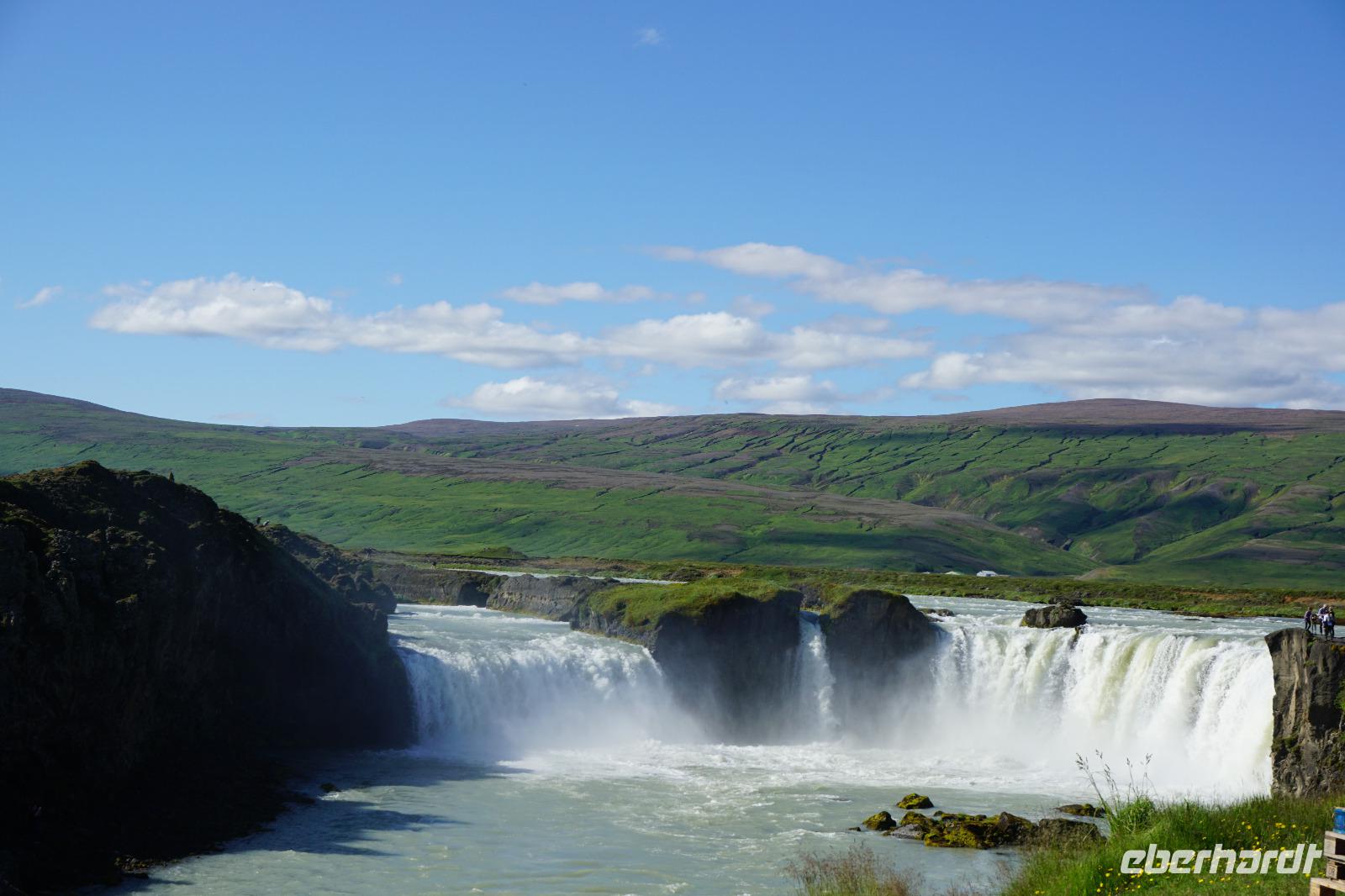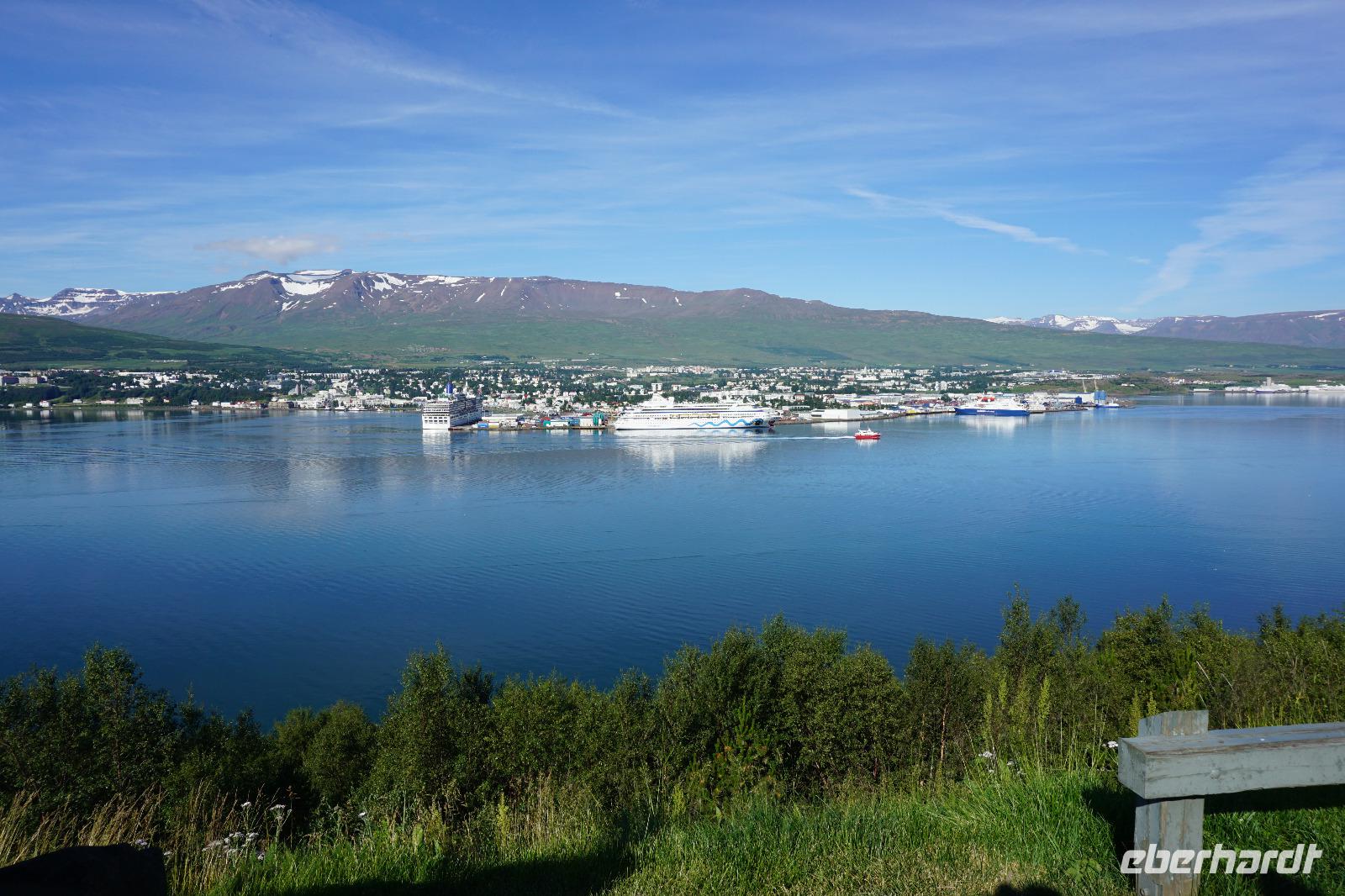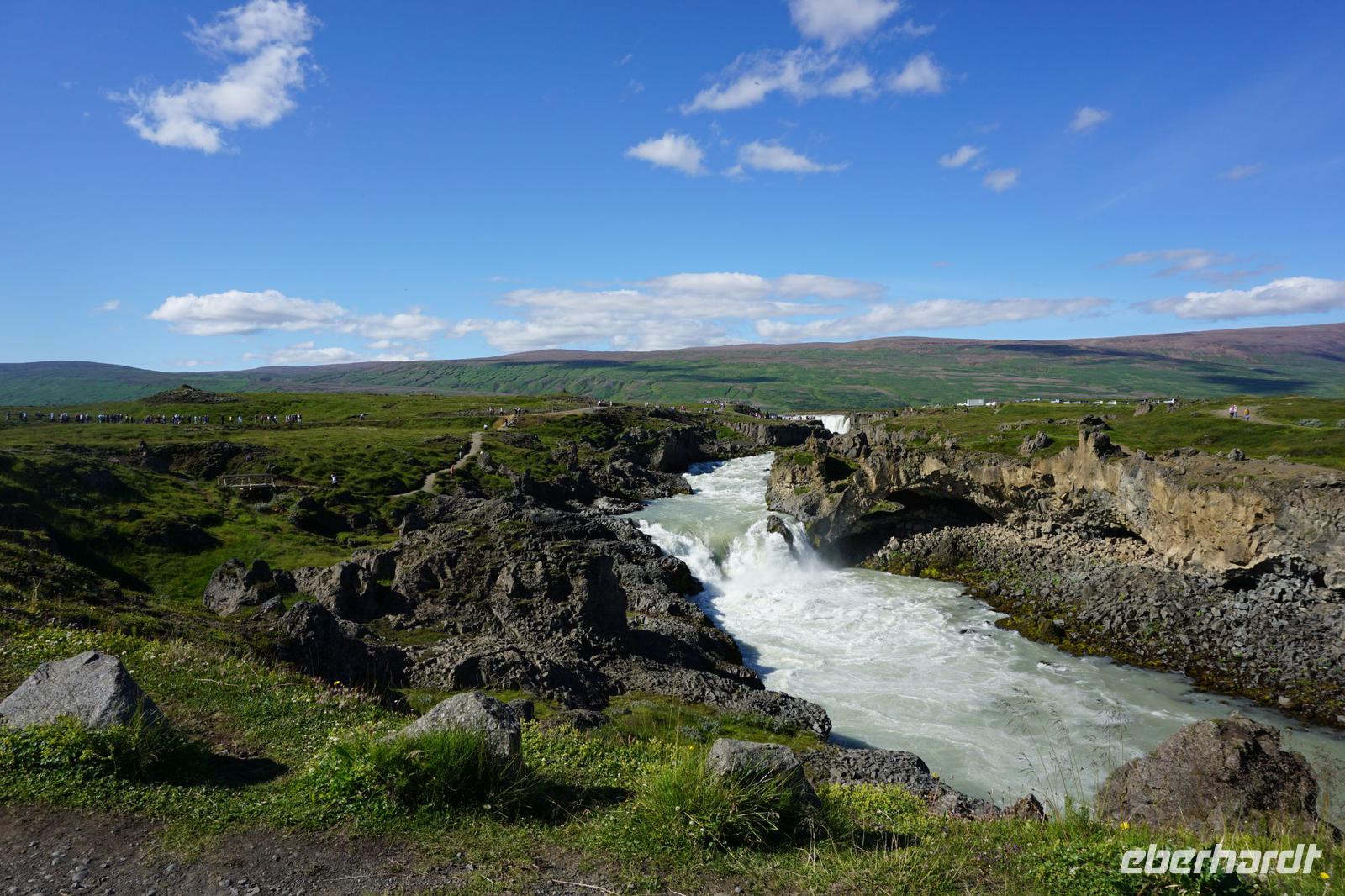 Am frühen Vormittag brachen wir in Richtung der Halbinsel Tjörnes auf. Auf dem Weg hielten wir kurz an einem Supermarkt in Husavik um für unser Picknick am Mittag einzukaufen. Unser nächstes Ziel war der beeindruckende Wasserfall Godafoss. Der „Götterfall" gehört zu den meistbesuchten Zielen Islands. Bei dem beliebten Fotomotiv hielten sich sehr viele Menschen auf uns es war fast unmöglich ein Bild ohne Menschen zu schießen. Nach einem kurzen Aufenthalt fuhren wir weiter nach Asbyrgi. Die Schlucht hat die Form eines Hufeisens und steht unter Naturschutz. Zuerst picknickten wir in der bizarren Felsenschlucht, danach spazierten wir mit Gunnar durch die Schlucht. Auf dem Rückweg hielten wir an den Vogelfelsen, wo wir auch ein paar Papageitaucher beobachten konnten. Anschließend fuhren wir wieder zurück nach Husavik, wo Zeit zum Verweilen blieb. Husavik liegt an einer sanft geschwungenen Bucht mit dunklem Sandstrand und ist die Hauptstadt der Walbeobachtung Europas. Am Nachmittag kamen wir wieder in Akureyri an, wo wir Zeit für eigene Erkundungen hatten. Im botanischen Garten direkt neben dem Hotel konnte man wunderbar spazieren gehen oder in der Einkaufsstraße bummeln und ein paar Souvenirs kaufen. Zum Abendessen kamen alle wieder zusammen und berichteten über ihre Erlebnisse in Akureyri.