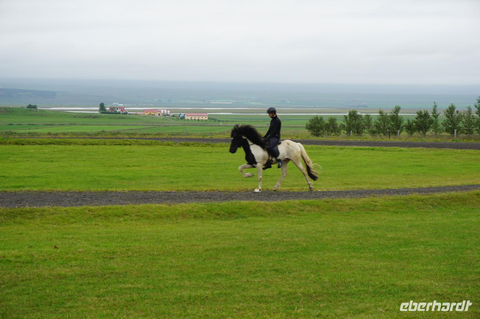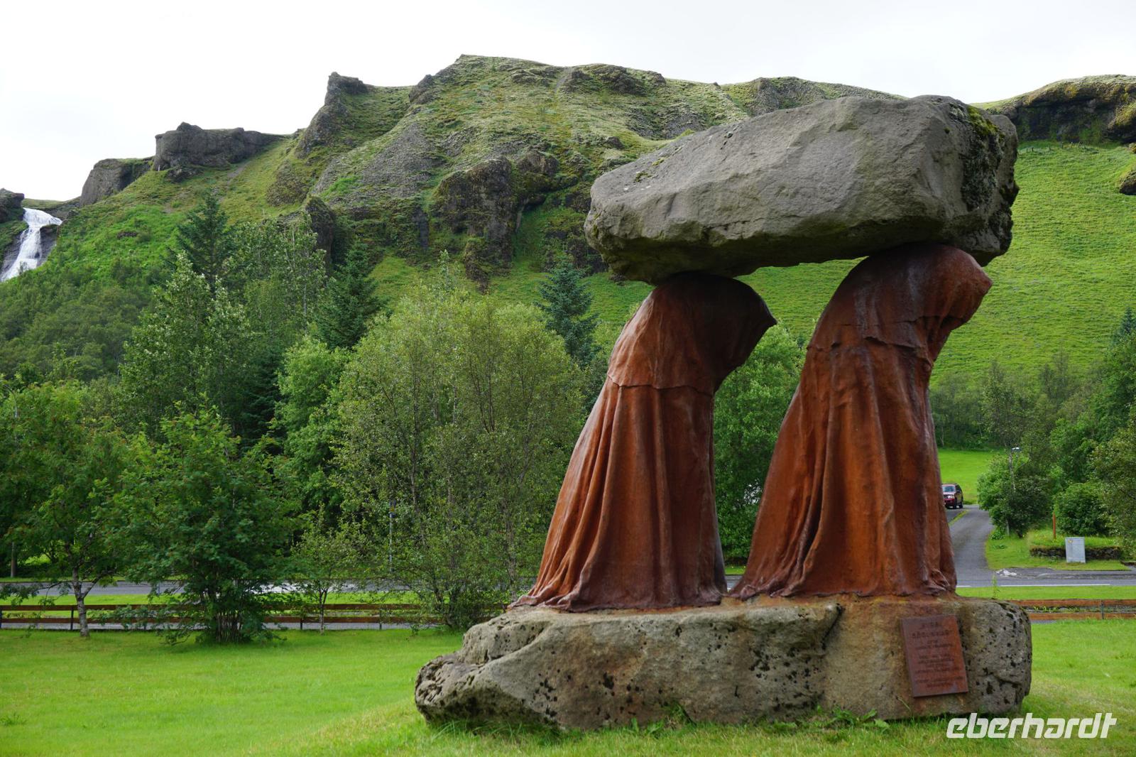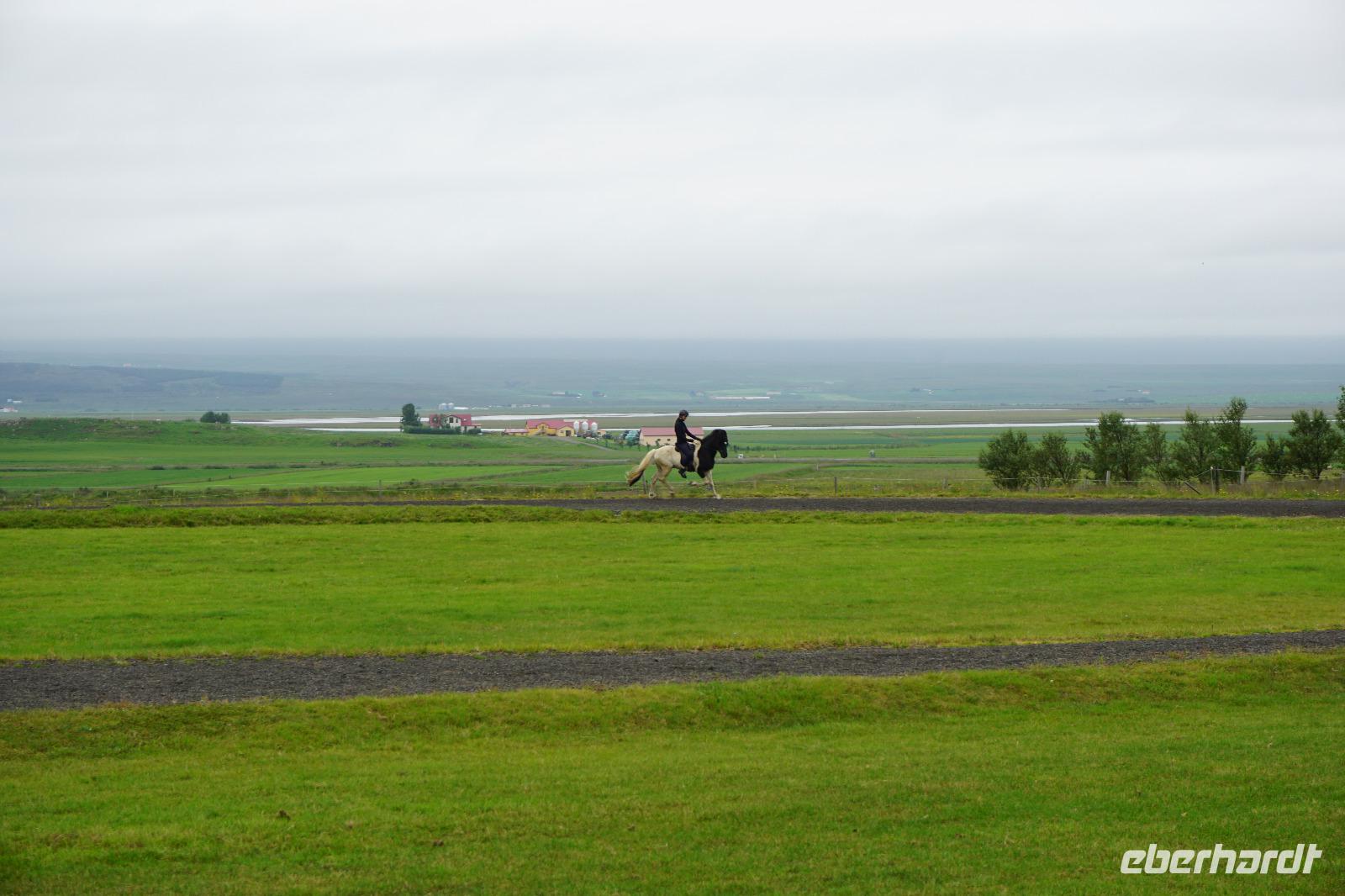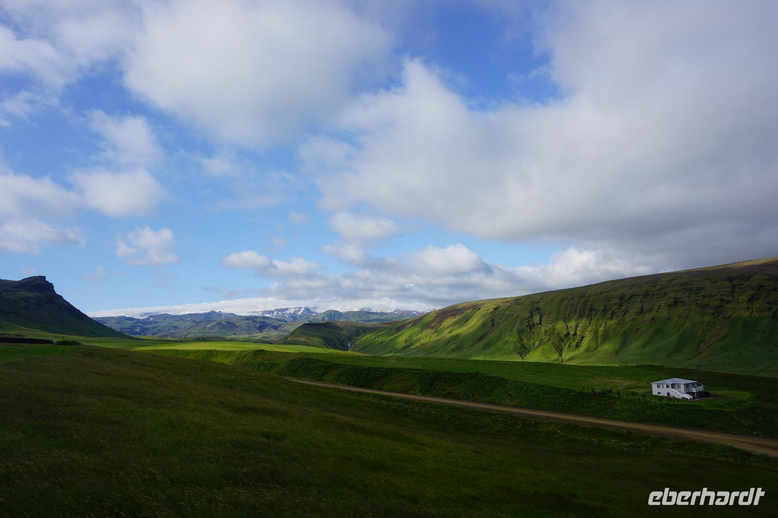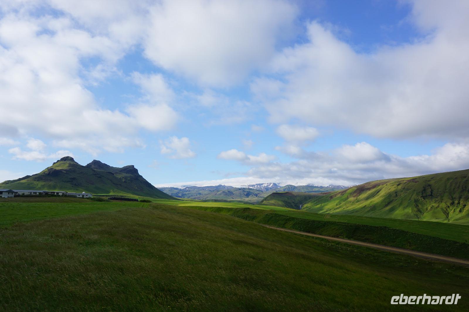 Am frühen Vormittag führte uns unser Weg zur Gletscherlagune Jökulsarlon, wo wir mit einem Amphibienfahrzeug über den größten Gletschersee Islands fuhren. Mit 258 Metern ist er der tiefste See der Insel. Unser Guide erzählte uns viel Interessantes über die Lagune, die voller schwimmender Eisberge unterschiedlicher Größen war. Später konnten wir sogar ein Stück von diesem kristallklaren Eises kosten. Überall auf dem See glitzerten die Eisberge in der Sonne und jeder sah etwas anders aus. Wir sahen auch nur ca. ein Drittel des Eisbergs, der größte Teil war im Wasser versteckt. Danach haben wir noch ein paar Fotos mit großen, an Land geschwemmten, Eisbergen gemacht. Unterwegs machten wir unsere Mittagspause an einer kleinen Raststätte. Anschließend fuhren wir in den Nationalpark Skaftafell, wo wir einen Blick auf das „ewige Eis" mit seinen vielen Spalten werfen konnten. Auch am Besuchszentrum machten wir einen kurzen Halt. Auf dem weiteren Weg hielten wir in einem kleinen Ort namens Kirkjubaejarklaustur, wo wir einen Spaziergang unternahmen und ein sonderbares Nonnendenkmal besichtigten. Wir fuhren weiter nach Vik, wo es die Möglichkeit für einen kleinen Fußmarsch am schwarzen Strand gab oder bei Ice Wear einige isländische Sachen einzukaufen. Sehr beliebt war der Kauf einer Mütze. Danach ging es für uns auch schon nach Dyrholaey zu unserem nächsten Hotel. Auf einem Berg gelegen, hatte man zum einen eine tolle Aussicht auf die schwarze Küste vor dem Hotel bzw. auf die durch die Sonne in Szene gesetzten Berge hinter dem Hotel. Man musste allerdings aufpassen, dass man nicht vom Wind weggeweht wird, weil dieser heute äußerst stark war. Nach ein bisschen Freizeit im Hotel haben wir gemeinsam gegessen.