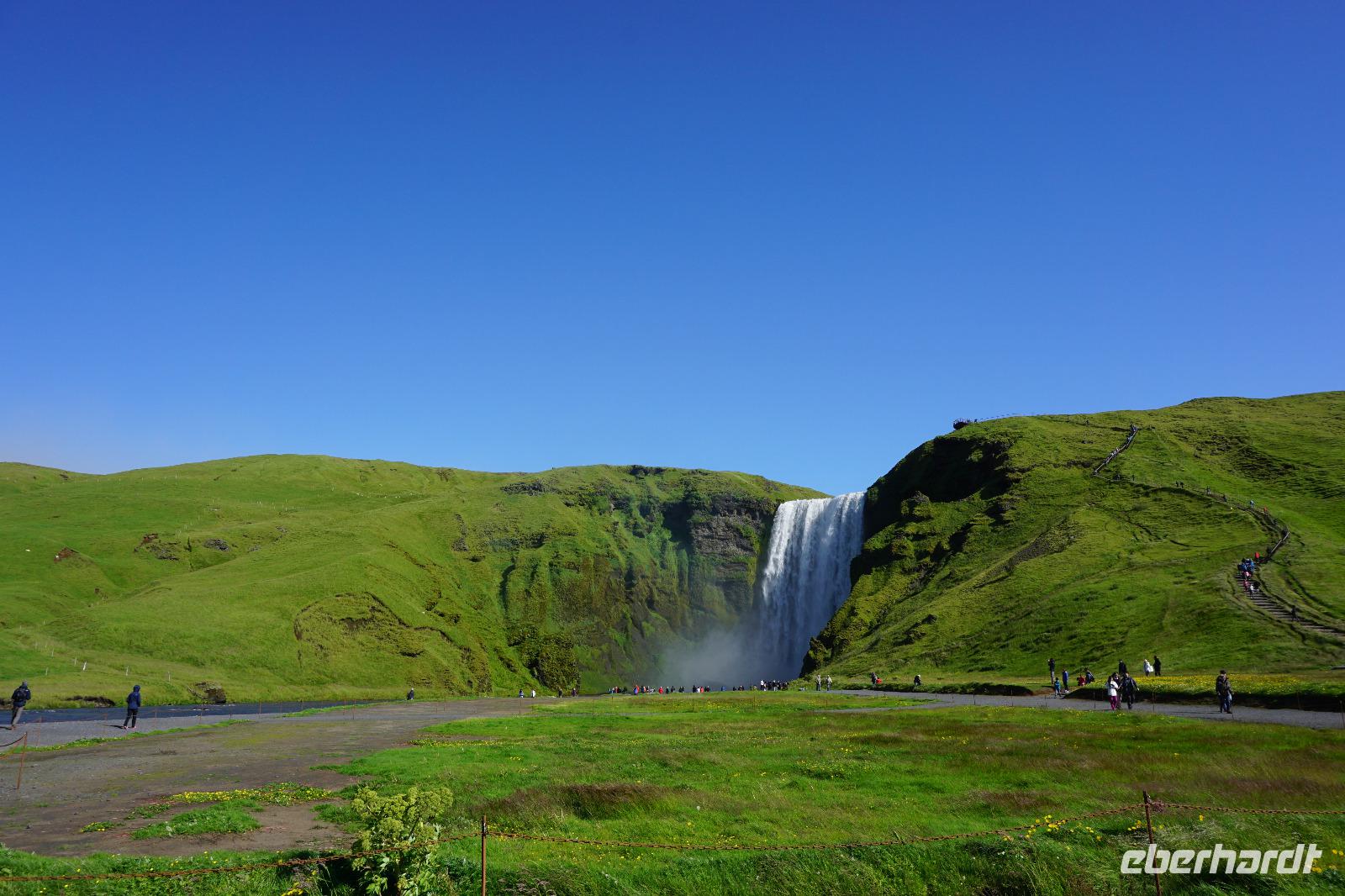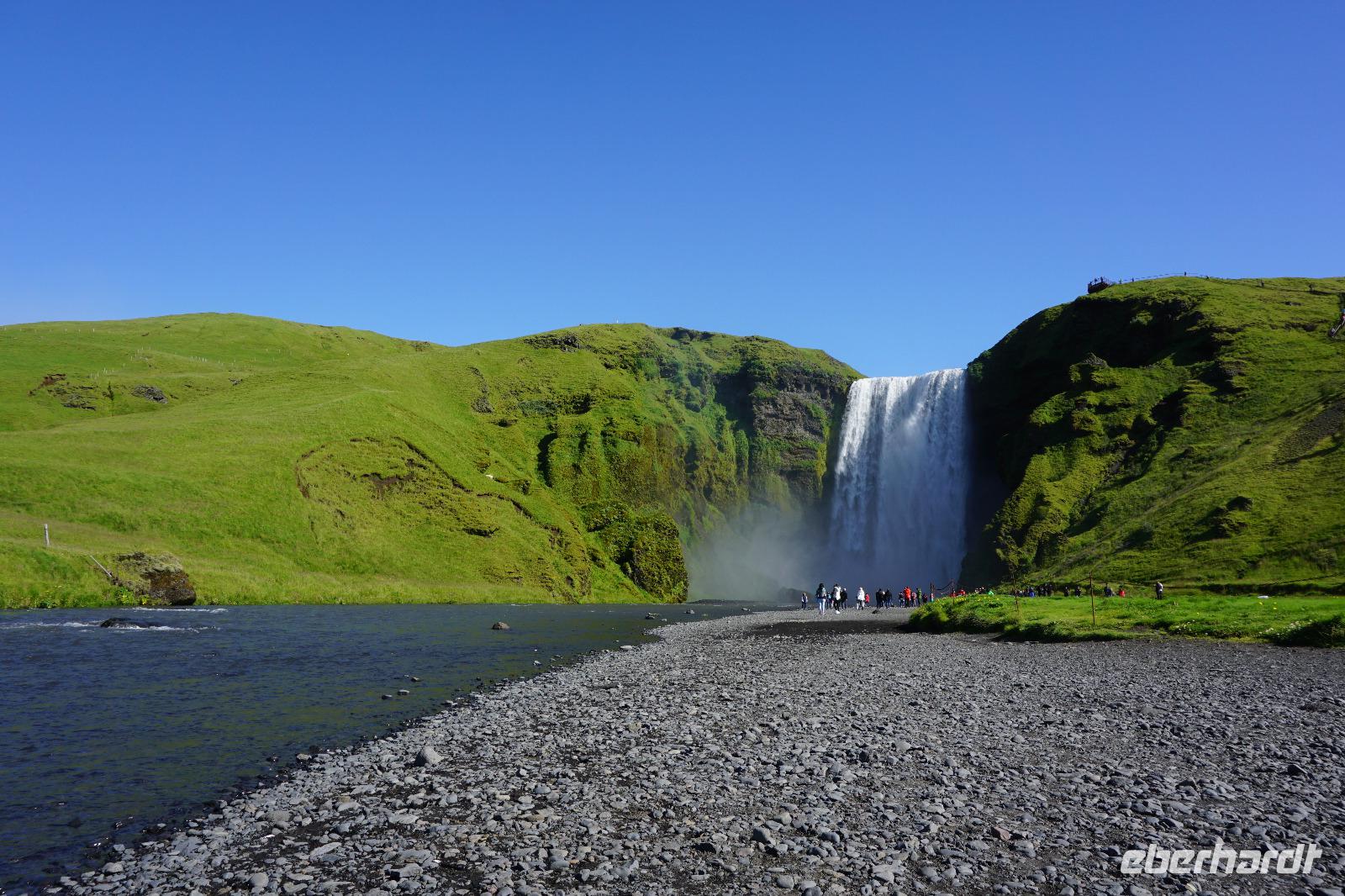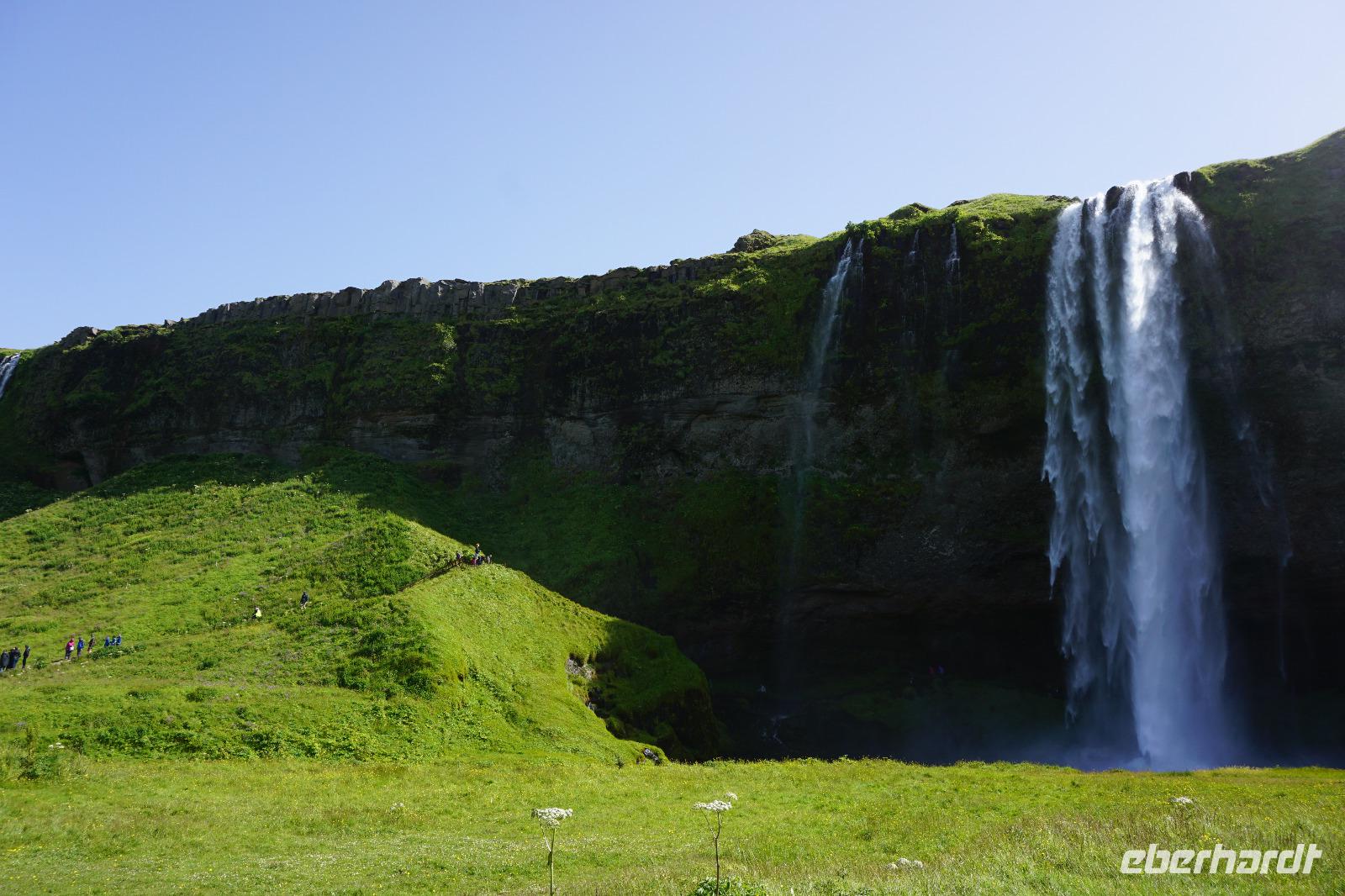 Nach dem Frühstück begann die letzte Etappe unserer Rundreise durch Island. Zuerst hielten wir nicht weit entfernt von unserem letzten Hotel an einer Klippe an. Dort ging auch wieder ein äußerst starker Wind. Hier gab es noch einmal die Möglichkeit Papageitaucher zu beobachten und zu fotografieren. Im Anschluss daran fuhren wir weiter nach Skogar, wo wir zuerst den schönen Wasserfall Skogafoss bestaunten. Wenige Meter weiter besuchten wir das Skogarmuseum, wo wir viel über die Geschichte des Fischfangs und die Entwicklung der Gesellschaft auf Island erfuhren. Draußen konnten wir sogar in ein paar kleine Häuser aus der früheren Zeit besichtigen. Auch kleine Torfhäuser fanden wir vor. Unser nächstes Ziel war der Wasserfall Seljalandsfoss. Hier konnte man auch hinter dem Wasserfall lang laufen, kleine Freiluftdusche inbegriffen! Am Nachmittag erreichten wir wieder Reykjavik und hatten einige Zeit zur freien Verfügung, um noch etwas spazieren zu gehen oder ein paar letzte Einkäufe zu tätigen. Später gingen wir zum Abendessen alle gemeinsam in ein kleines Restaurant direkt am Hafen. So endete auch der letzte Tag unserer aufregenden Reise viel zu früh.