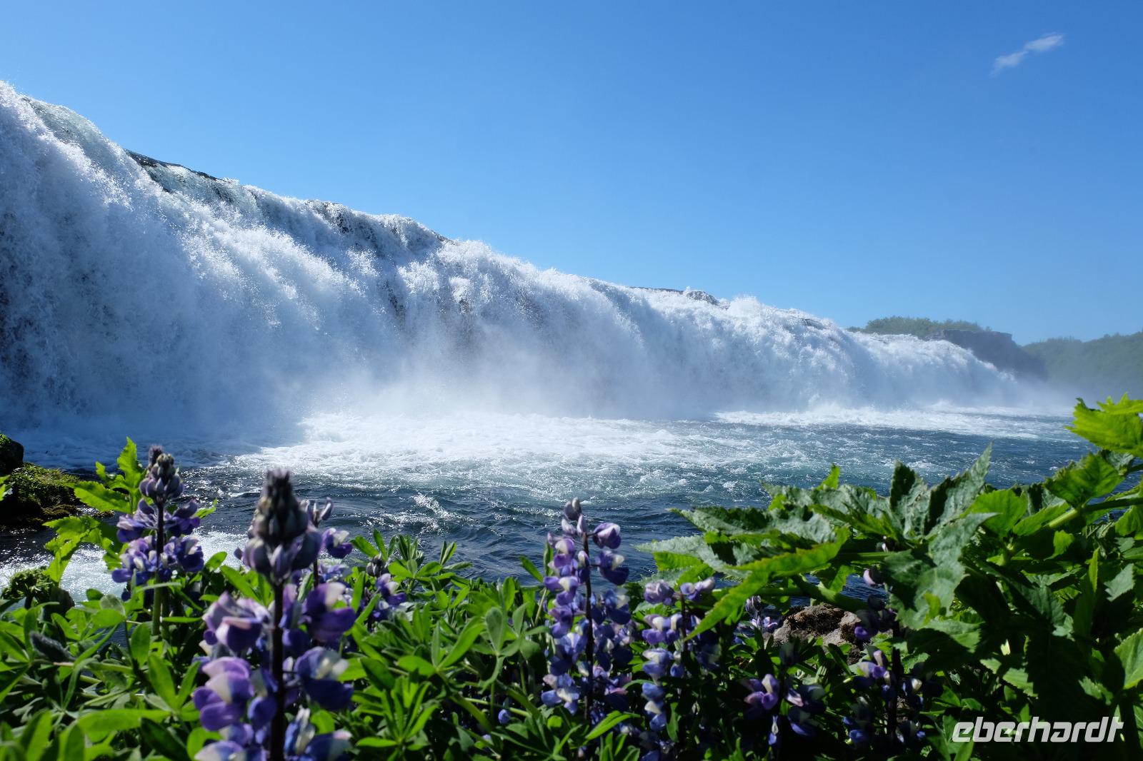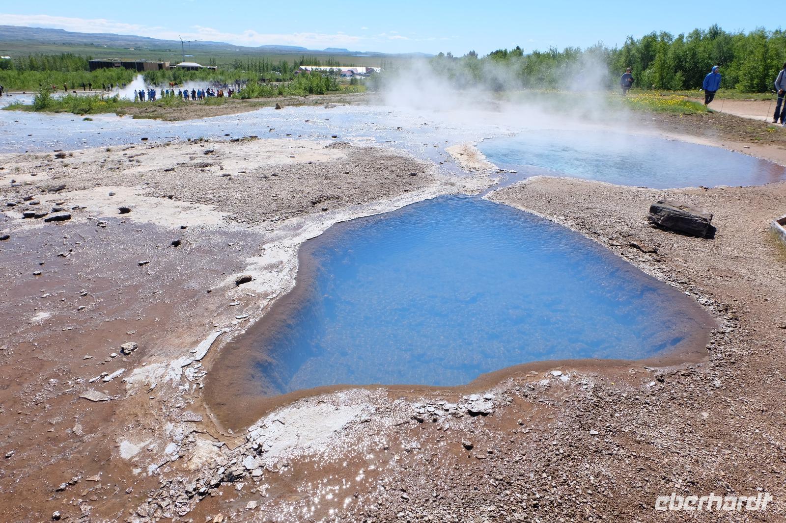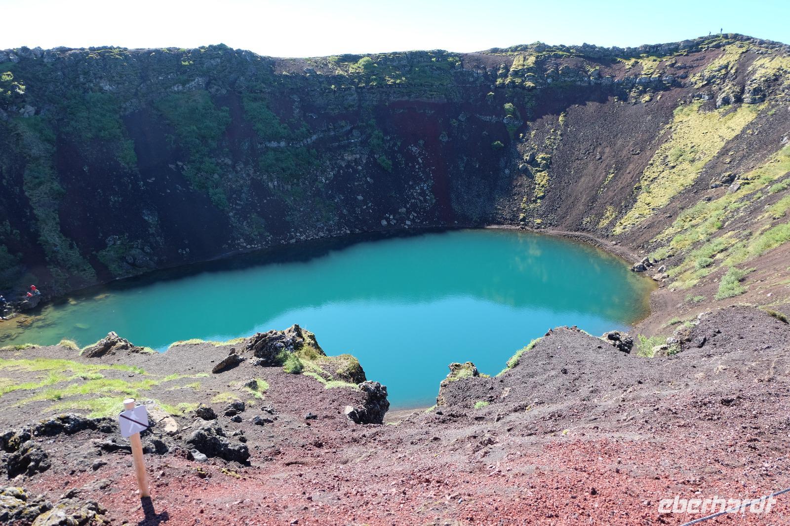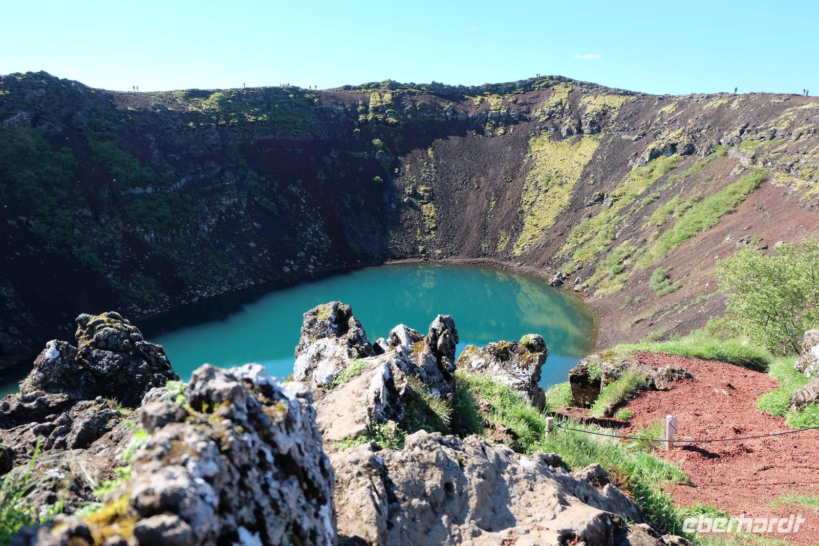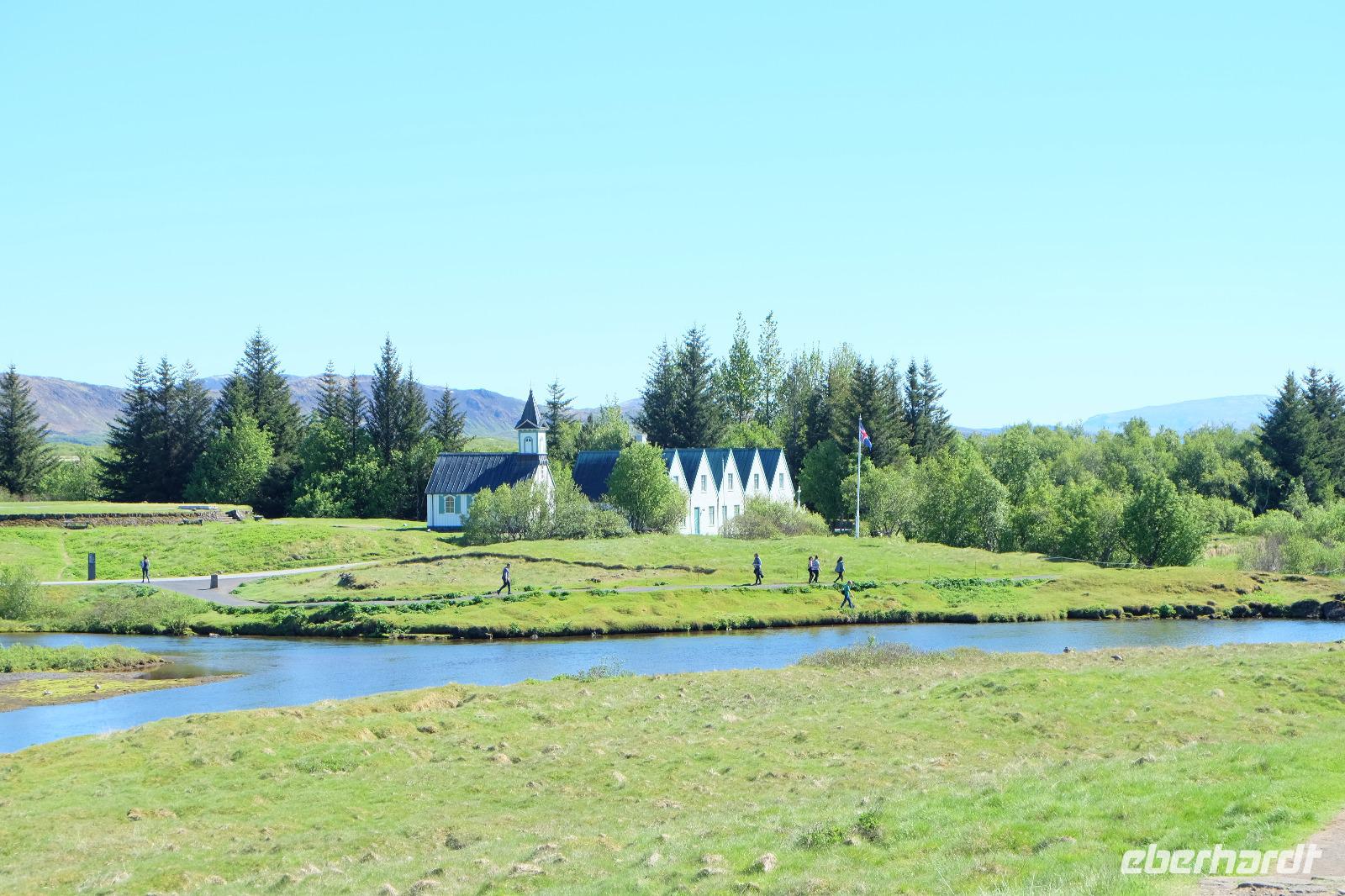 Gefällt dir das isländische Wetter nicht, dann warte einfach nur fünf Minuten. Der heutige Tag war der komplette Gegensatz zum gestrigen. Strahlender Sonnenschein, blauer Himmel und angenehme Temperaturen zauberten jedem Gast ein Lächeln ins Gesicht. Das heutige Thema unserer Reiseleiterin ist die Entstehung Islands, die heißen Quellen und die abwechslungsreiche Natur. Wir fuhren auf die Ringstraße Nummer 1, mit einer Länge von 1350 Km. Hier werden wir hauptsächlich während der Reise unterwegs sein. Unser erster Halt des heutigen Tages war der Kratersee Kerid (übersetzte der "Krug"). Das türkisblaue Wasser schimmerte im Licht und es entstand ein traumhaftes Fotomotiv. Weiter ging es nun zu dem ersten großen Wasserfall unserer Reise. An dem Punkt, an dem der Fluss Tungufljót einen scharfen rechtsknick macht liegt Faxi. Ein breiter Wasserfall, der mit einer gewaltigen Kraft einige Meter in die Tiefe stürzt. Einige von uns traten bis auf weniger als einen Meter an die reißende Strömung heran und spürten die Stärke des Wassers hautnah. Nach nur wenigen Minuten Fahrt, erreichten wir den wohl bekanntesten Wasserfall der Insel - Gullfoss - der Goldene Wasserfall. Über zwei versetzt aufeinanderliegenden Stufen des Flussbettes, stürzen hier über 1000 m3 Wasser pro Sekunde in die 70 Meter tiefe Schlucht des Flusses Hvítá. Die nächste Attraktion des heutigen Tages ist der Geysir Strokkur (übersetzt das "Butterfass"), der uns gleich bei unserer Ankunft mit seinem Ausbruch und der rießigen in die Luft schießenden Wassersäule begrüßt. Übrig blieb nur eine kleine Pfütze und große Augen in den Gesichtern der Gäste. Jeder wollte ein Foto oder Video von diesem gewaltigen Naturspektakel haben und so standen wir in Reih und Glied da und warteten gespannt auf den nächsten Ausbruch. Keine 10 Minuten später erlebten wir es erneut und dann nochmal und nochmal. Wir wollten gar nicht mehr weg. Doch es wartete ja noch mehr auf uns. Thingvellir (übersetzt die Parliamentwiesen) - die heiligste Stelle der Isländer ist unser nächster Stop. Wir spazierten durch den Nationalpark, kamen vorbei an einer kleinen Kirche, bis wir schließlich genau zwischen zwei Kontinentalplatten standen. Mit dem einen Fuß auf der europäischen und mit dem anderen auf der amerikanischen. Nach einer kurzen Pause trafen wir uns (fast) vollständig zur Weiterfahrt am Bus. Doch unsere Gruppe war schon jetzt ein eingeschweistes Team und so waren rasch wieder alle Schäfchen vereint. Geschafft von einem aufregenden und erlebnisreichen Tag, erreichten wir gegen frühen Abend unser Hotel in Reykjavik.