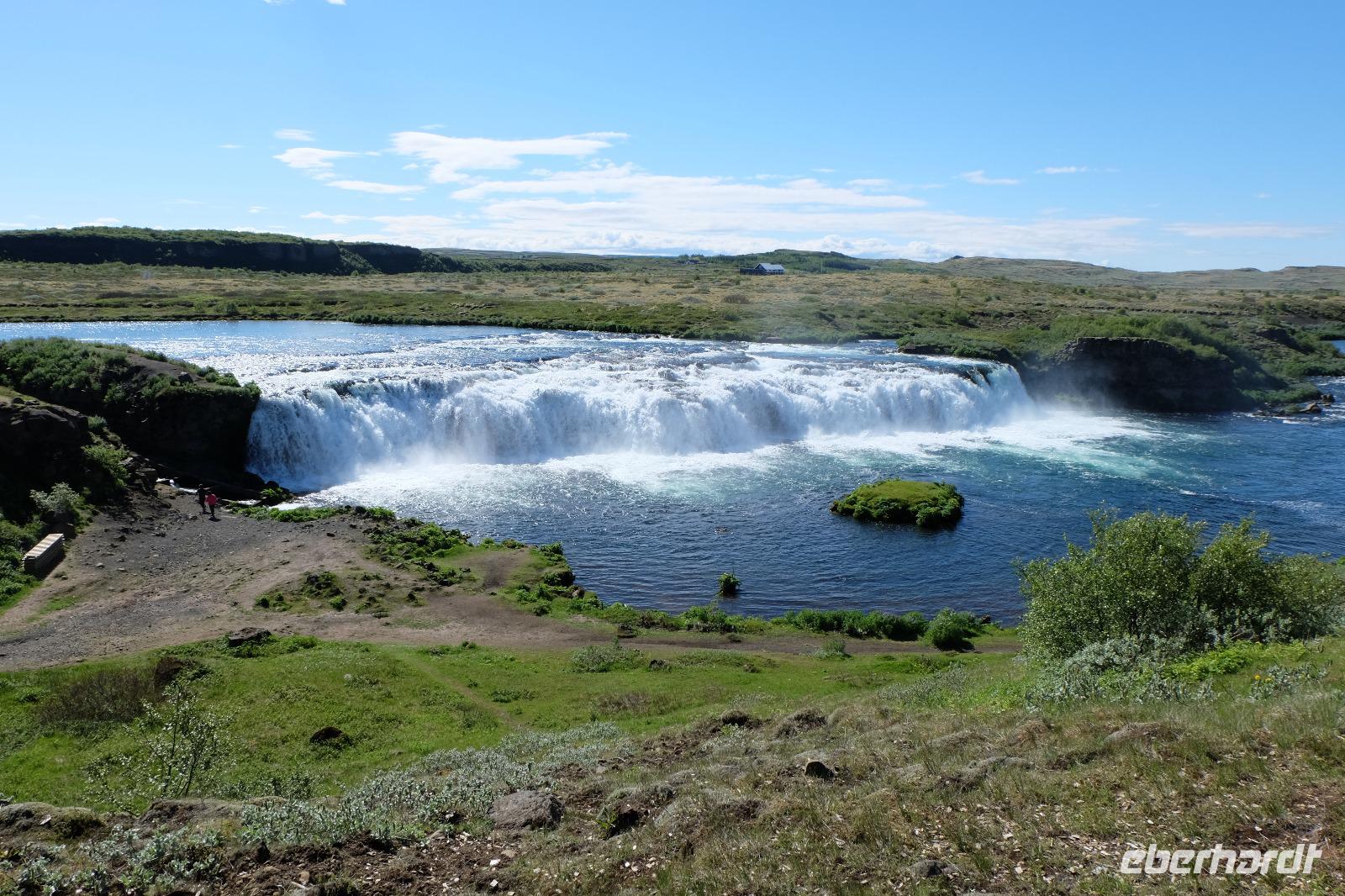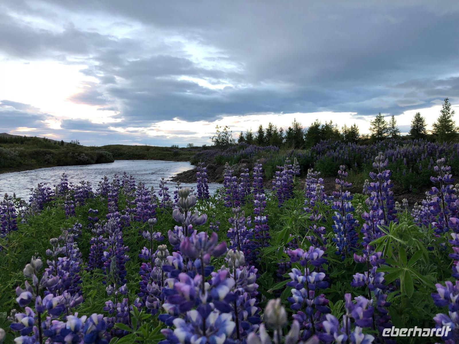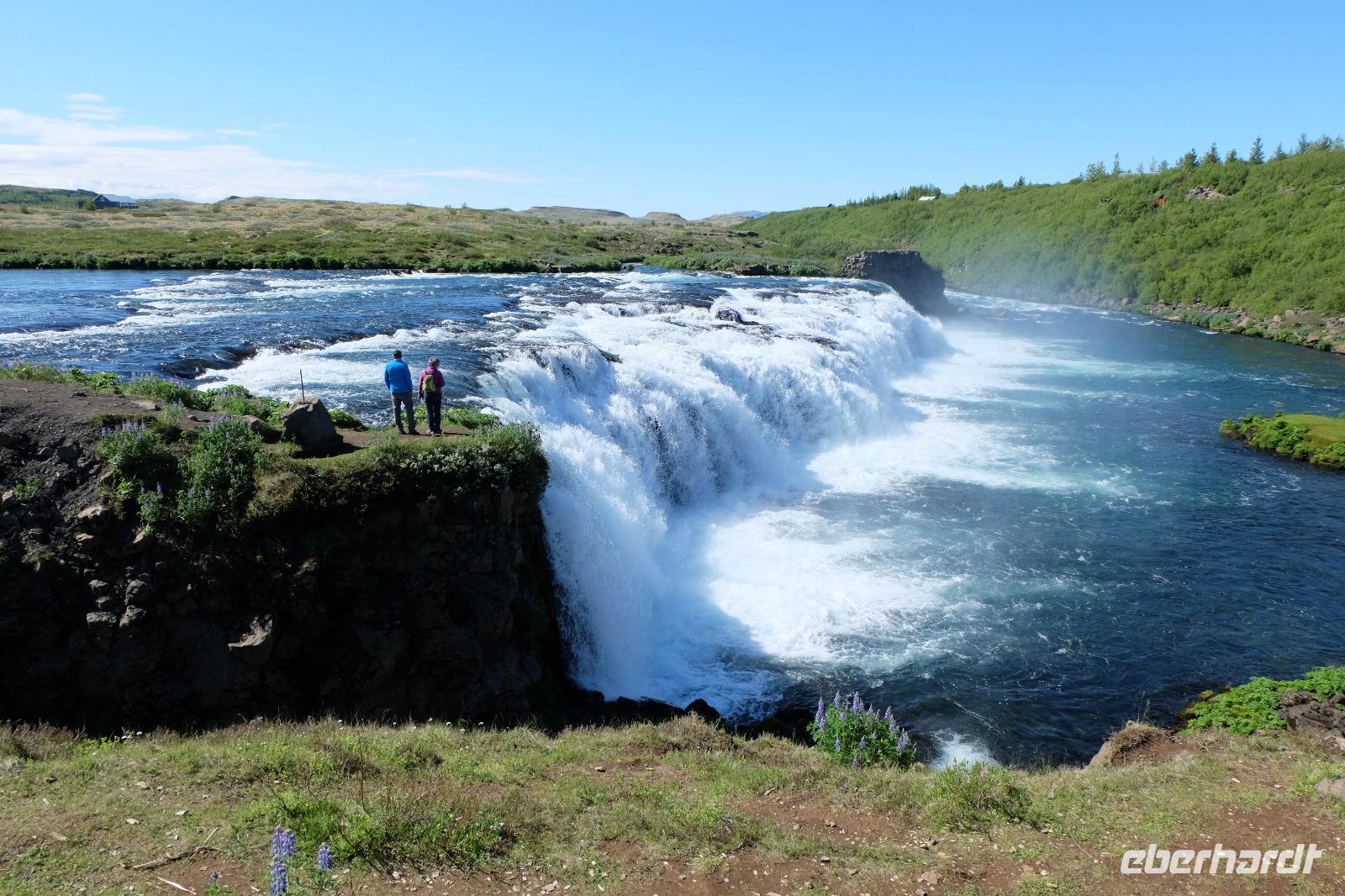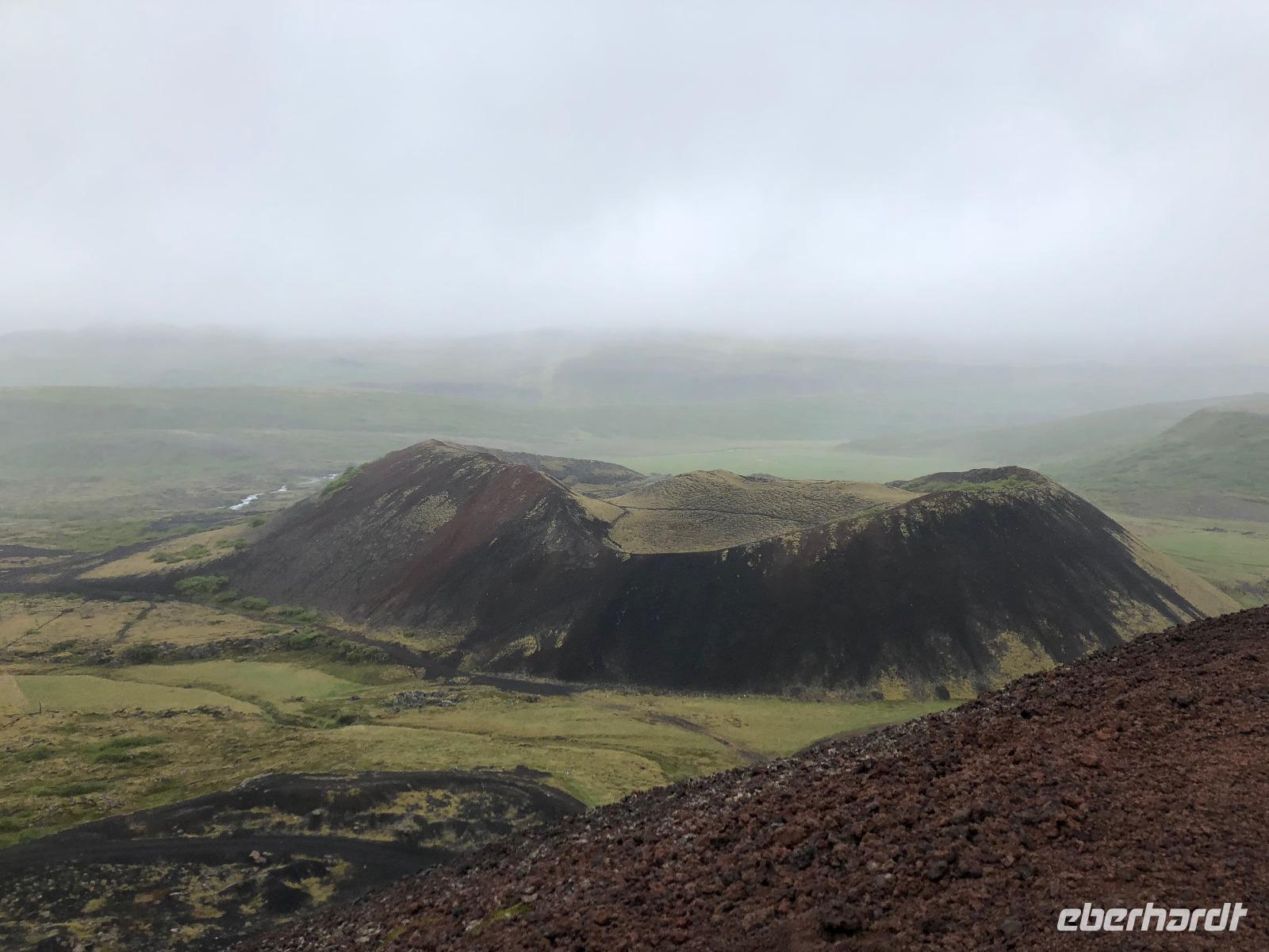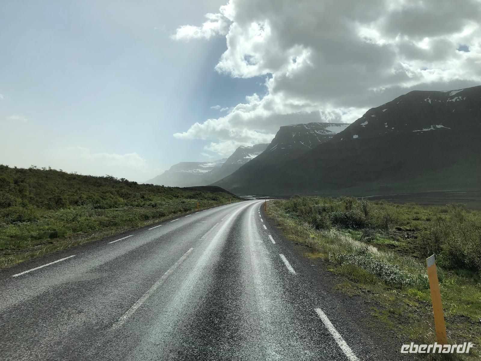 Unser Tag begann mit einer kleinen Wanderung auf den Grabrok Krater, welche sich schnell als ein Kampf gegen den Sturm herausstellte. Der Regen lies keine Sekunde auf sich warten - wir hatten ihn ja schon vermisst. Doch der kurze Regenschauer sollte vorerst der letzte auf unserer Reise sein. Nach diesem Frühsport geht es weiter in Richtung der Galsi Horse Farm. Auf dem Weg dahin fuhren wir durch die mystischen und sagenumworbenen Heiden Islands. Hier befindet sich eine große Wetterschneise, somit ist die Gefahr vor extrem schnellem Wetterwechsel ungewöhnlich hoch. Unsere Reiseleiterin erzählte uns viele Geschichten um diesen Ort und so waren wir dann sehr erleichtert, als wir dieses Gebiet durchquert hatten und ein etwas friedlicheres Thema auf uns wartete - die Island Pferde. Auf dem Reiterhof wurden uns die verschiedenen Gangarten der Pferde vorgeführt. Danach durfte jeder die Tiere von Nahen beobachten, mit Gras füttern und Fotos machen. Gegen Nachmittag machte sich die Sonne bemerkbar und wir nutzten die aufkommende gute Stimmung, um gemeinsam auf unser Abenteuer Island anzustoßen und den isländischen Stockfisch zu probieren. Nach dem zügigen Entleeren des Brennivins zu urteilen, hat der typisch isländische Kartoffelschnaps jedem sehr gemundet. Mit neuer Energie und lockerer Stimmung erreichten wir Akureyri, unseren heutigen Übernachtungsort. Wir machten einen kurzen Stop in der Stadt, um die Isländer bei den letzten Minuten des WM-Spiels beim Public Viewing zu unterstützen. Im Hotel angekommen, ging es für einige Gäste auch gleich zum nächsten Highlight der Reise - die Walsafari. Wir staunten nicht schlecht, als wir die blauen Riesen direkt vor dem Boot auftauchen sahen und mit einem großen Hieb ihrer Schwanzflosse verabschiedet wurden.