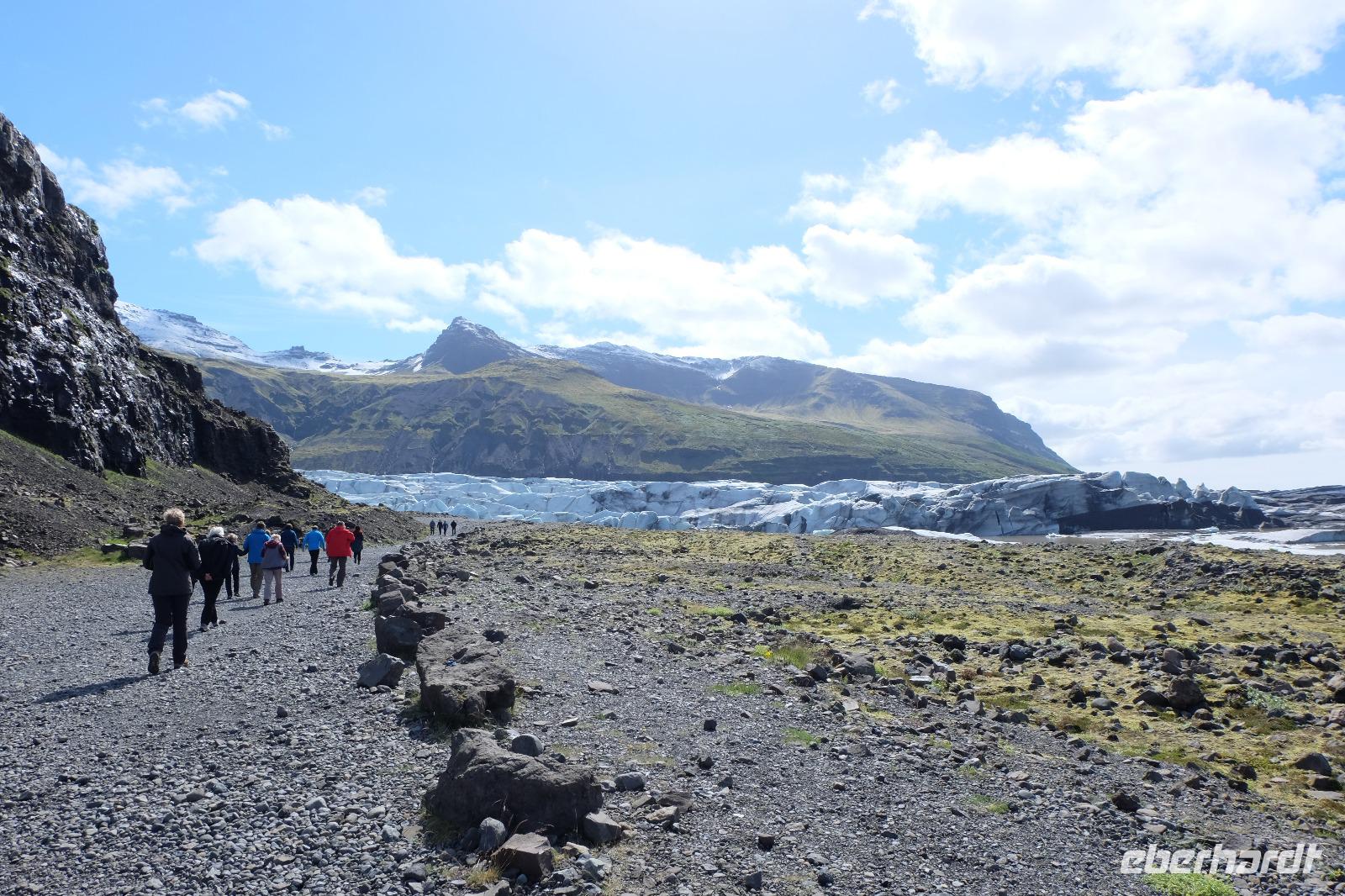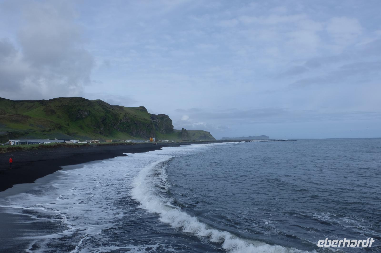 Heute hatten wir die Chance den Gletscher Svinafellsjokull (übersetzt Schweinefells) von nahen zu betrachten. Unser Busfahrer fuhr über die wohl schlechteste Straße des Landes extra für uns bis an die Gletscherzunge heran. Ein ziemlich imposantes Naturschauspiel, an dem natürlich viele Fotos entstanden sind. Wer Lust auf eine kleine Wanderung hat, der konnte unserer örtlichen Reiseleiterin und mir folgen, den Skaftafell Nationalpark zu erkunden. Ein recht anspruchsvoller Wanderweg führt uns als erstes am Hundafoss vorbei und weiter zum Svartifoss am Studlaberg. Die Wanderfreunde unter uns liefen bis zum letzteren heran, um sich den vorletzten Wasserfall unserer Reise noch einmal ganz genau anzuschauen. Nach dem Mittagessen im Nationalpark und einer langen Busfahrt erreichten wir Vik. Hier ist der schwarze Sandstrand besonders schön zu betrachten. Nur vorsicht bei den Wellen, denn die können hier gern mal mit einer Höhe von über drei Metern am Strand brechen.