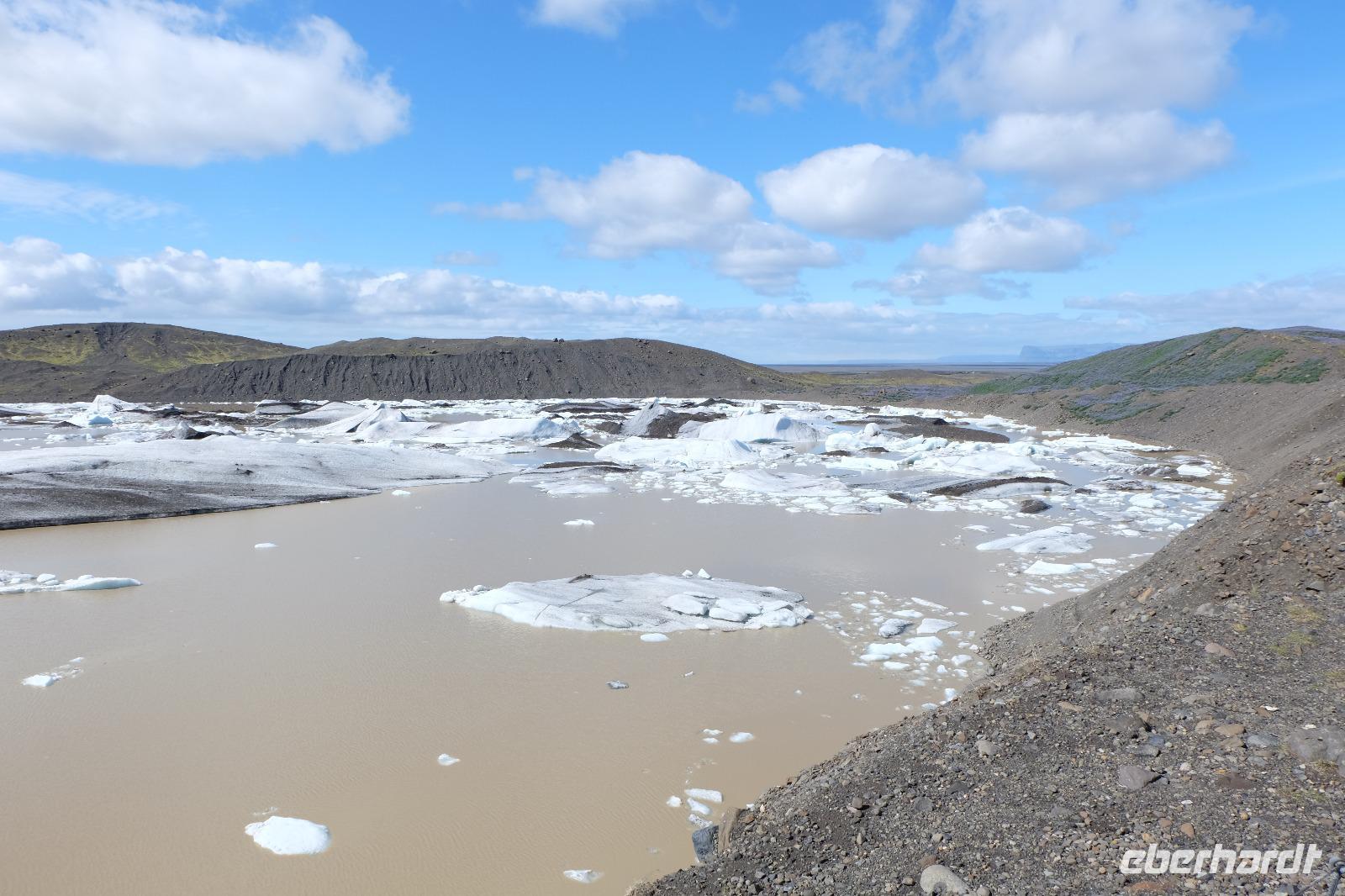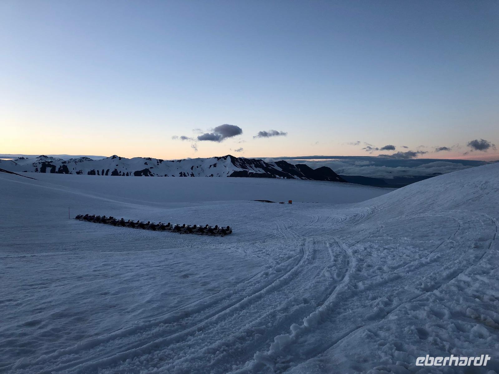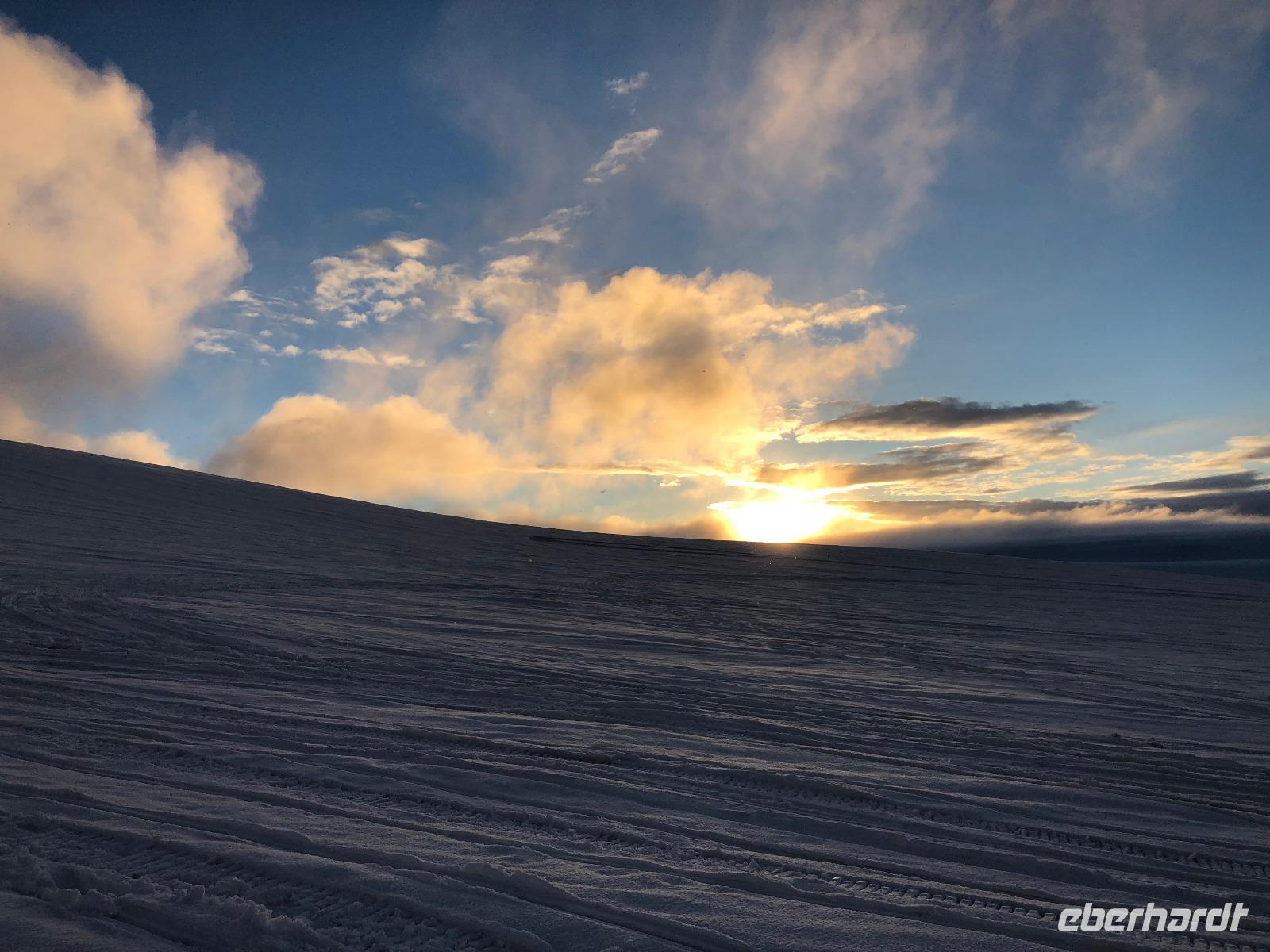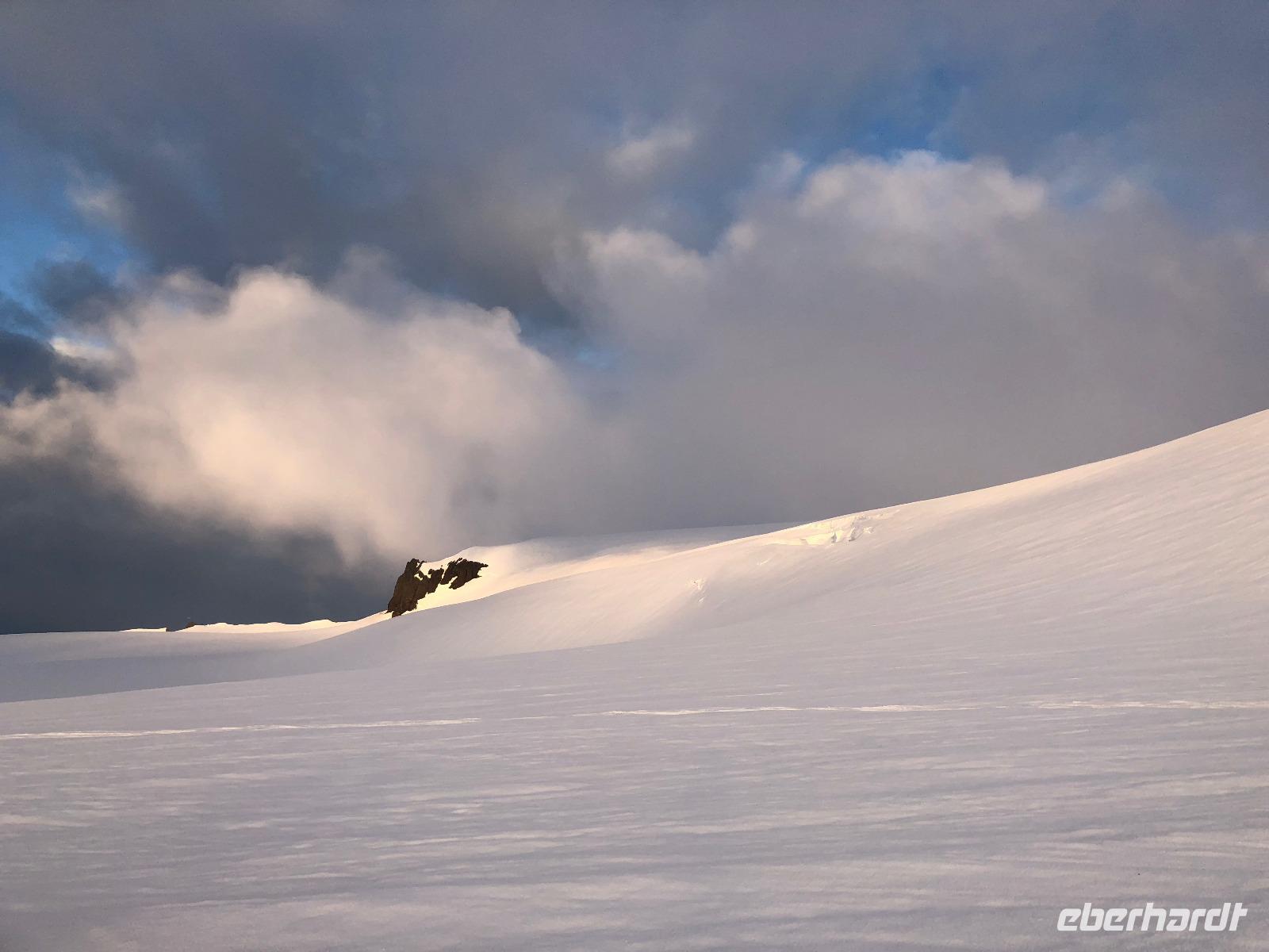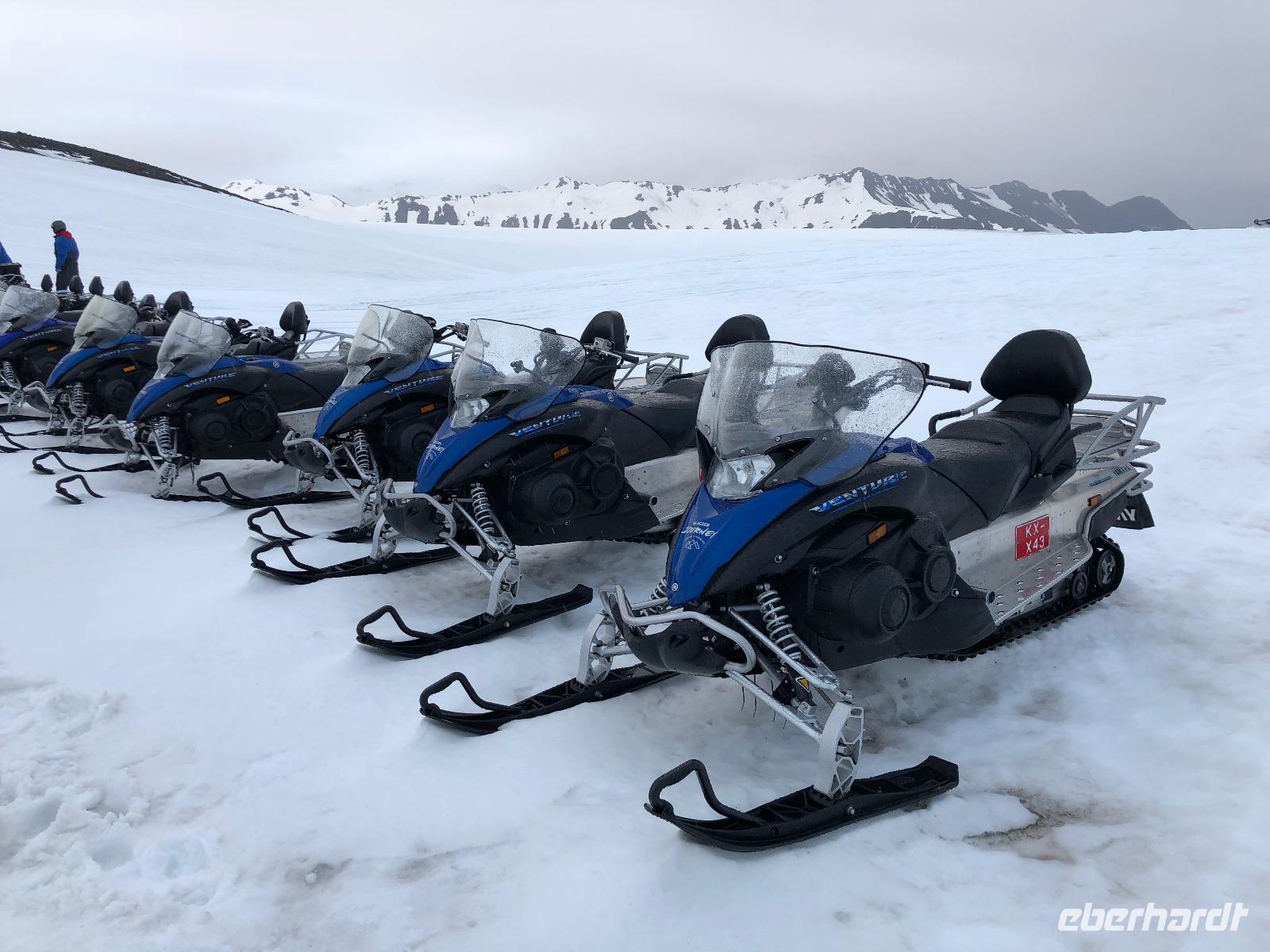 Vom Winde verweht - so beginnt unser heutiger Tag. Nach einer holprigen Busfahrt erreichten wir Petras Steinhaus. Liebevoll angelegte Sammlerstücke verzieren den Garten und auch im Haus selbst, wird Petras Sammlerleidenschaft deutlich. Einige Impressionen konnten wir auch für zu Hause mitnehmen. Passend dazu machten wir nach der Weiterfahrt einen kurzen Stop an einem kleineren Fluss neben dem Fossá am Berufjördur, um wie Petra selbst Steine sammeln zu können. Wie in Trance lief jeder los und machte sich auf die Suche. Eine kurze Zeit später zeigte jeder stolz seine Sammlerstücke, die für den eigenen kleinen Steingarten zu Hause gefunden wurden. Nach unserer Mittagspause in Djupivogur fuhren wir nun weiter in Richtung Süden. Je weiter wir kamen, desto mehr merkten wir die Veränderungen der Bergformationen. Hier gibt es vor allem sogenannte Tuffberge, die unter dem Gletscher aus zusammengepresster Asche entstanden sind. In der Gletscherlagune Jokusarlon angekommen wurden wir überrascht von der vielzahl der Eisberge, die sich hier befinden. Mit einem Amphibienfahrzeug konnten wir uns die eisigen Riesen genauer anschauen. Ein Guide erklärte uns die Entstehung der Eisberge und hatte sogar noch eine kalte Überraschung für uns. Wir durften über 1000 Jahre altes Gletschereis probieren. Es ist nicht nur das Älteste was wir je gegessen haben, sondern wohlmöglich auch das einzige was wir auf Island kostenlos bekommen werden. Am Abend wartete dann das Highlight auf uns, auf welches sich viele wohl am meisten gefreut haben. Eine Schneemobiltour zur Mitternachtssonne auf dem größten Gletscher Europas. Mit Helm, Schal, Handschuh und einem Schneeanzug ausgestattet ging es los. In einer Reihe fuhren wir den Gletscher entlang und es dauerte nicht lange bis wir immer mutiger mit unseren neuen Gefährten wurden. Wir hatten so viel Spaß, dass wir sogar die Zeit vergessen hatten. Es war 01:30 Uhr, als unser Busfahrer, der uns spontan mit begleitet hatte, uns wieder zurück zum Hotel fuhr. Glücklich und geschafft vielen wir in unsere Betten.