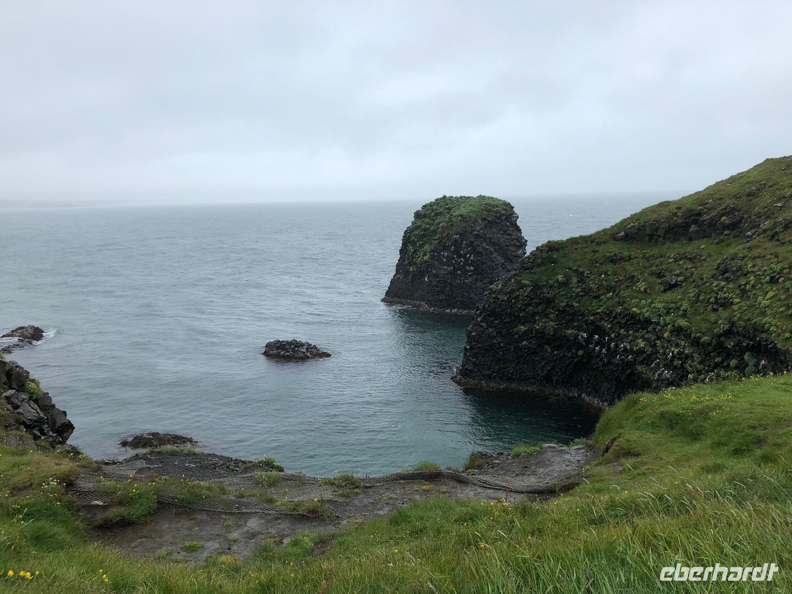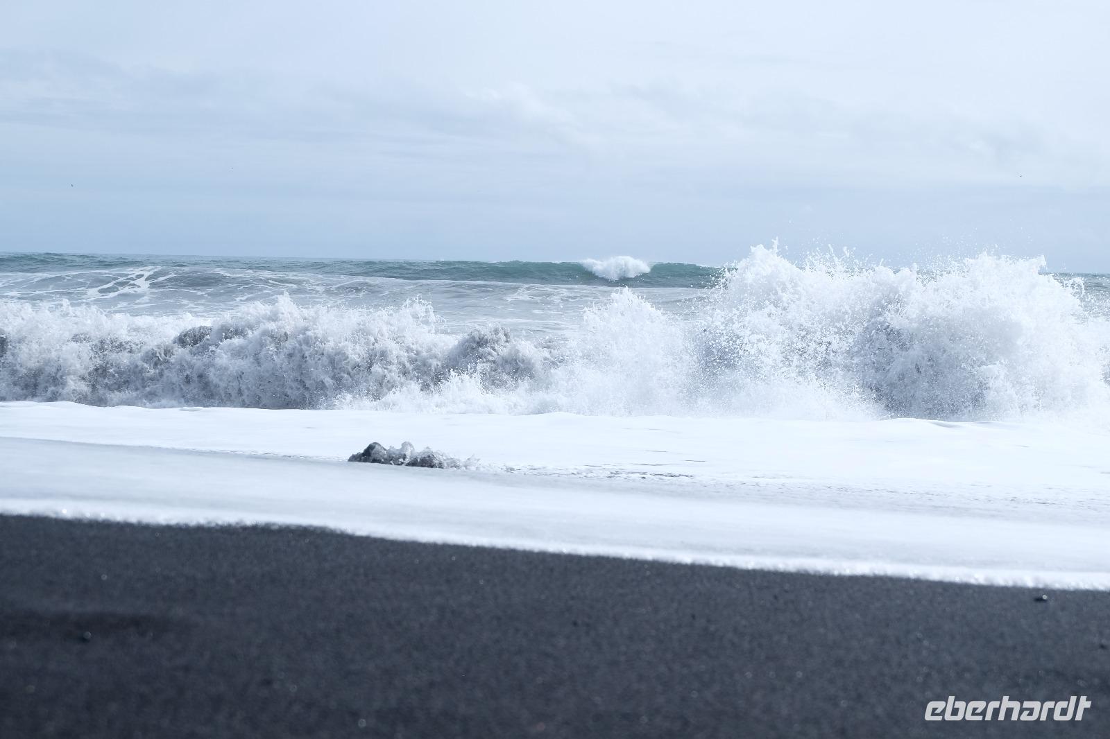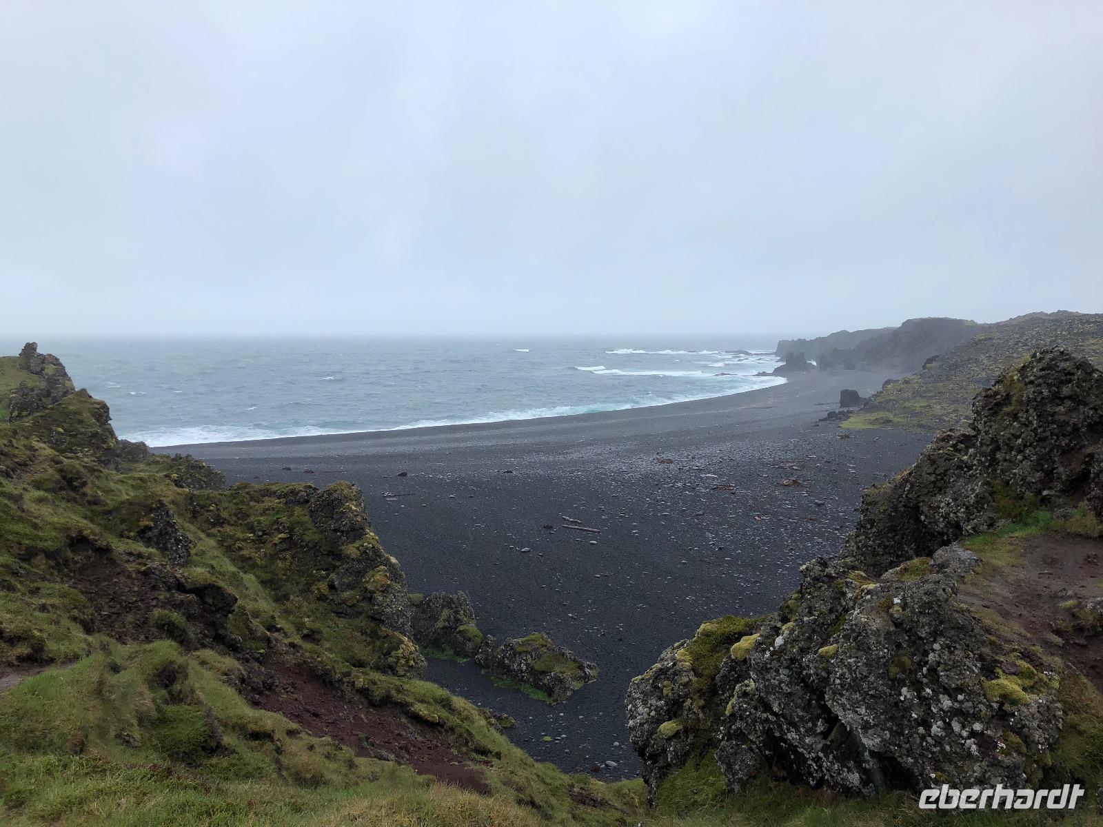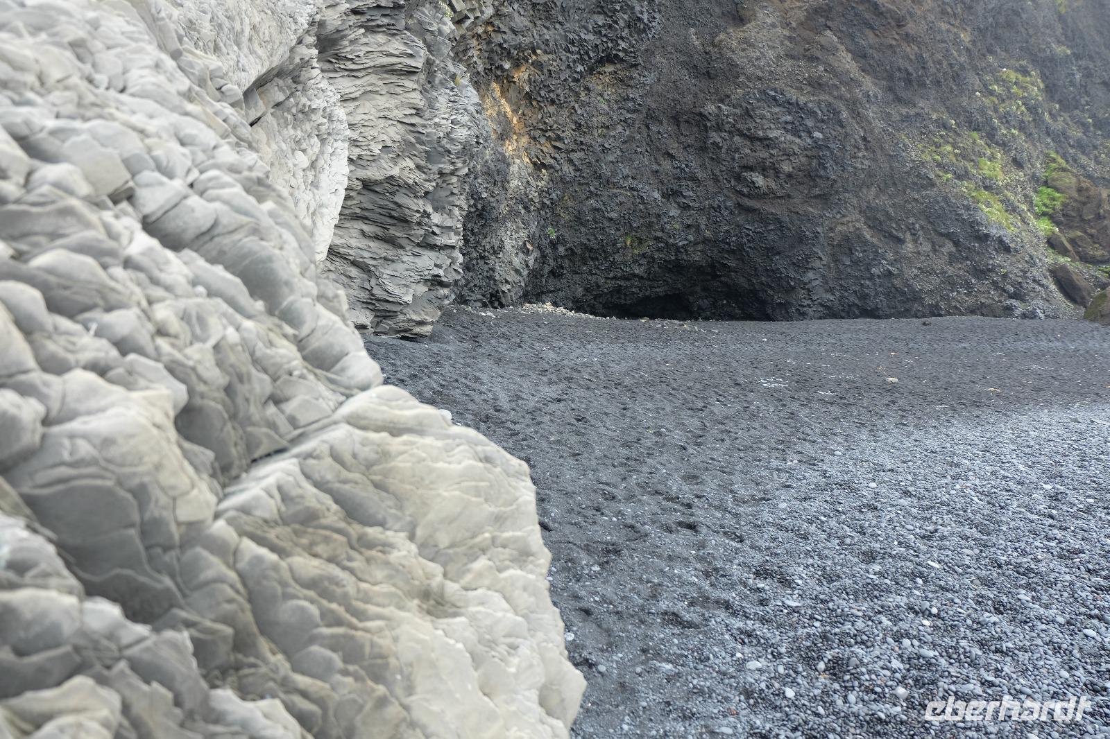 Da wir von dem stürmischen Wetter noch nicht genug hatten, fuhren wir nach Djupalon, wo wir einen herrlichen Blick auf den mystisch wirkenden schwarzen Sandstrand hatten. Die Abenenteuerlichen unter uns, liefen durch die Felsenlandschaft hinunter zum Strand um sich dieses Naturspektakel einmal genauer anzusehen.