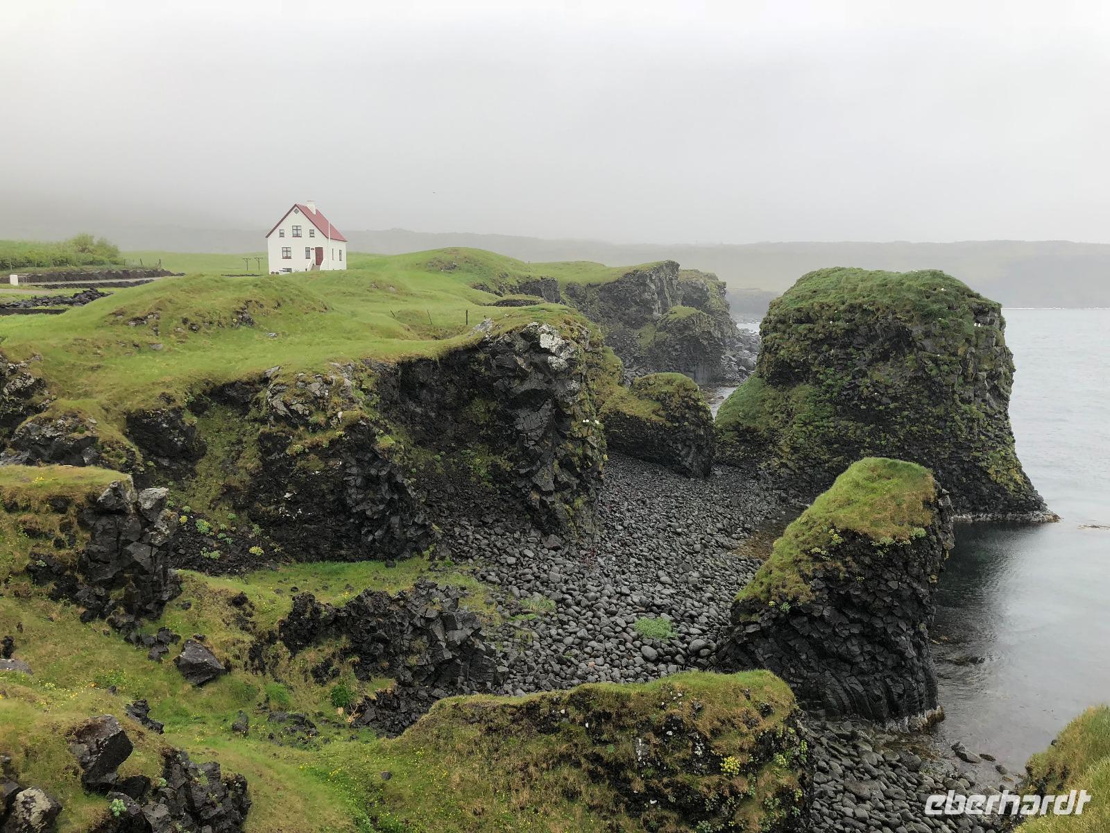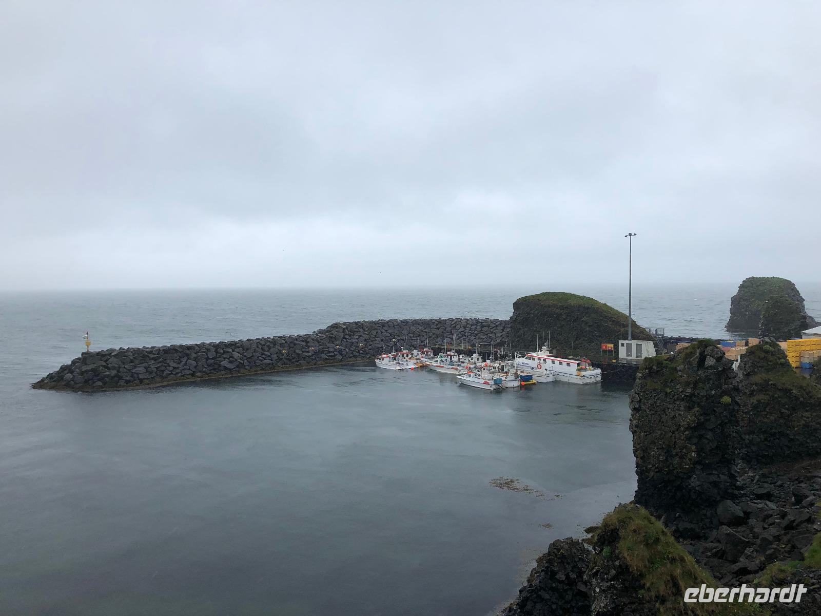 Heute wurden unsere Regenjacken ganz schön auf die Probe gestellt, denn das isländische stürmische Wetter hielt sich gleichbleibend über den ganzen Tag. Unser erster Stop ist an einem kleinen Hafen in Armarstapi. Wer sich dem Sturm stellen wollte, lief mit unserer örtlichen Reiseleiterin weiter entlang der Klippen und konnte einen genaueren Blick auf die raue See des heutigen Tages werfen. Um uns danach etwas aufzuwärmen, hielten wir gegen Mittag in Hellnar und machten Pause in einem gemütlichen Café. Frisch gestärkt ging es nun weiter in das Besucherzentrum Malarrif. Die Austellung drehte sich rund um die alte Fischertradition der Isländer und wir bekamen einen guten Eindruck in das frühere Leben dieser Männer.