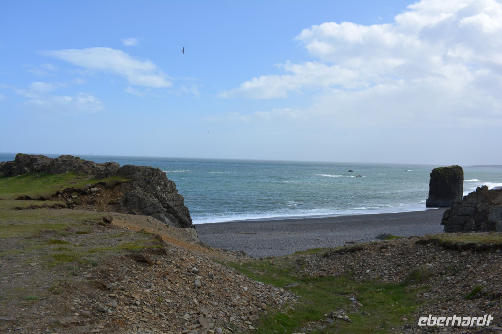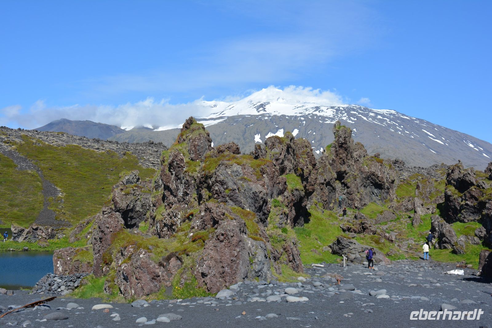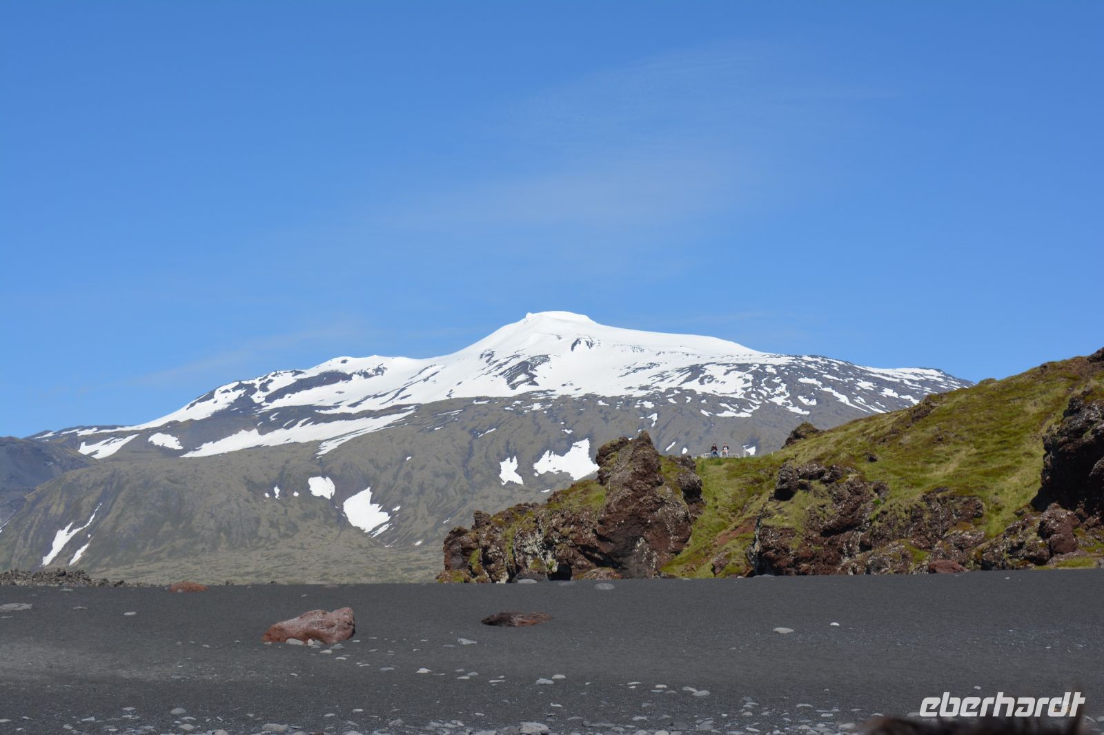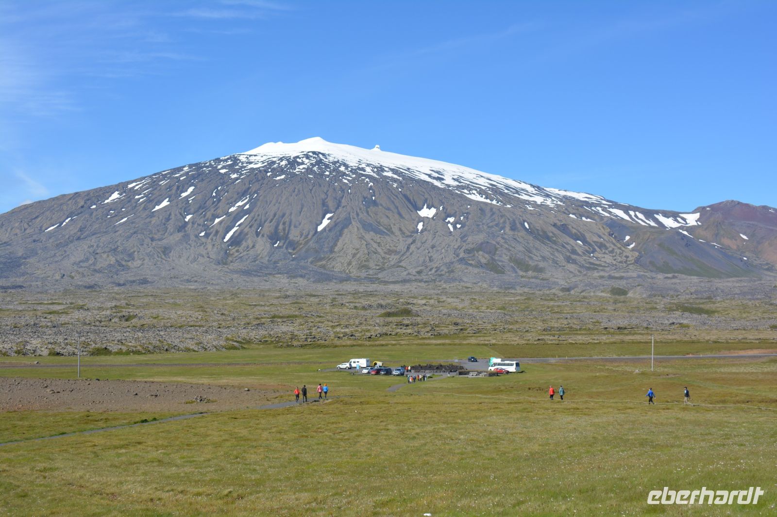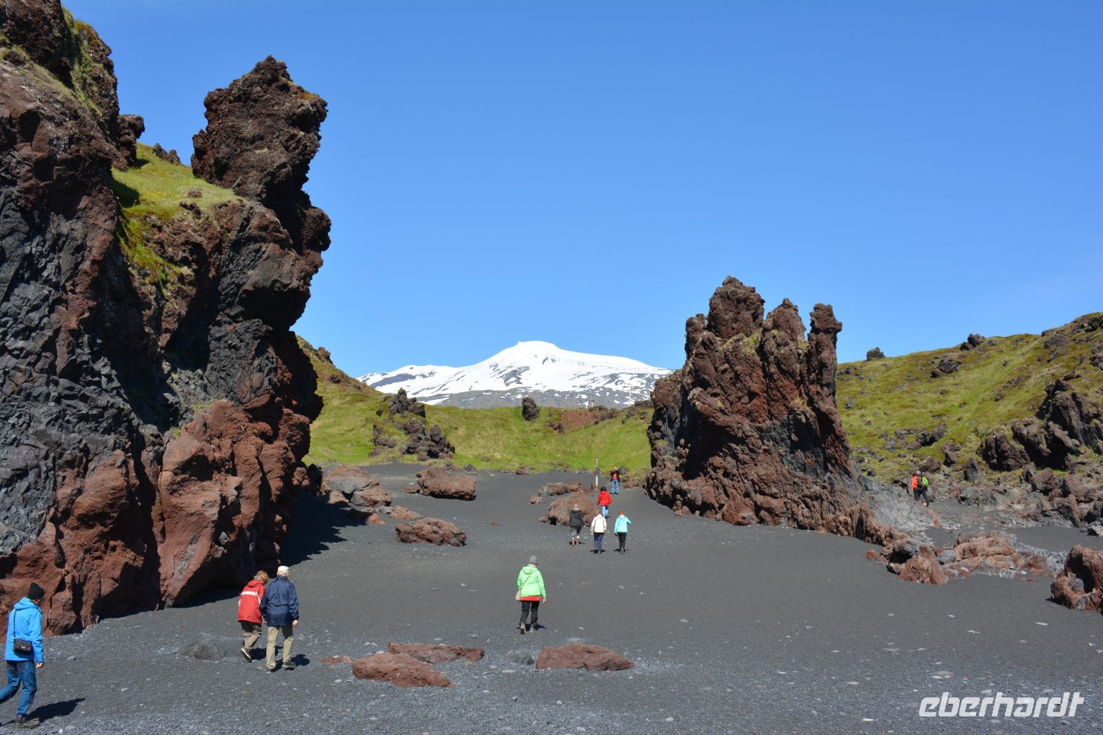 Kurze Zeit später haben wir wieder den Gletscher von Snaefellsnes im Blick – den Snaefellsnesjökull, welchen es jetzt noch zu umrunden gilt. Im Nationalpark halten wir noch am Strand Djúpalónassandur, welcher uns mit seinen tollen Gesteinsformationen sicher in Erinnerung bleibt.