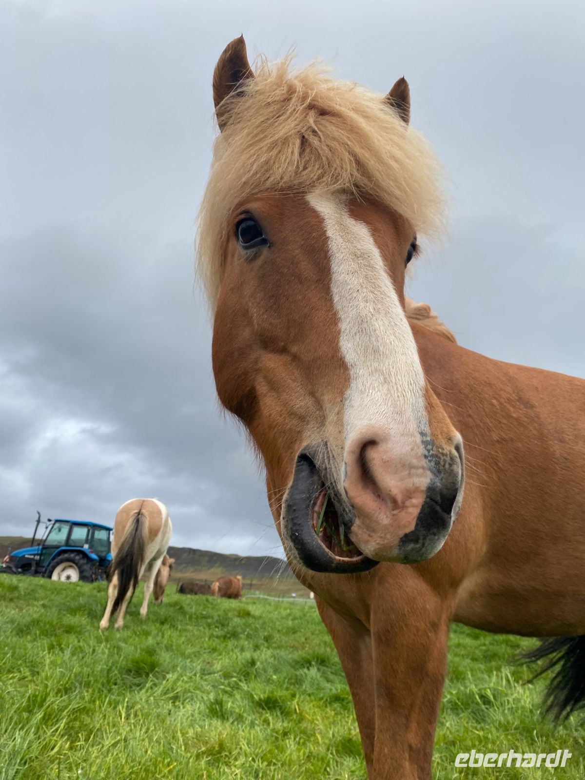 Am Nachmittag erreichen wir den Pferdehof von Evelyn. Sie erzählt uns alles über Islandpferde und die Haltung auf der Insel.
